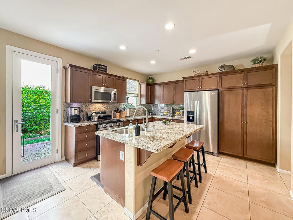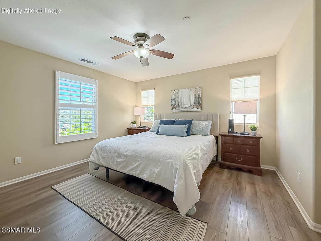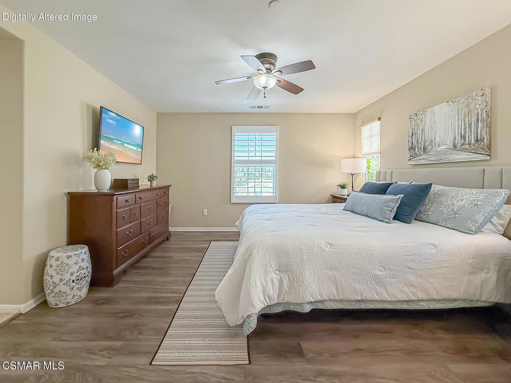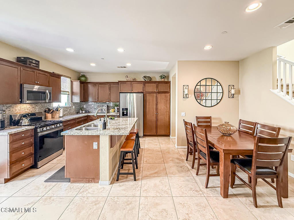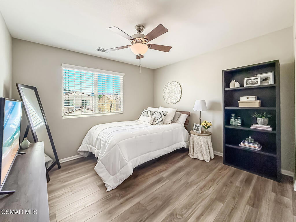 A Refined Tri-Pointe Residence with Whiteface Mountain Views -- Elevated Living in Central/West Simi ValleyDiscover a rare and sophisticated offering within one of Central Simi Valley's most charming and private enclaves--a beautifully appointed Tri-Pointe residence that effortlessly blends elevated design with everyday livability. Tucked inside a peaceful, self-contained community, this light-filled home welcomes you with a sense of calm, privacy, and understated elegance.Thoughtfully designed, the versatile floor plan features three spacious bedrooms upstairs, complemented by a main-level bedroom or flex space--ideal as a private office, guest suite, or multigenerational living option. Sunlight pours through the interiors, highlighting refined finishes, including custom 4-inch shutters that add both warmth and architectural polish.The kitchen presents a clean, modern aesthetic with newer appliances, sleek stainless-steel accents, and a seamless connection to the dining area. A glass door extends the living experience outdoors, revealing one of the largest and most inviting backyards in the community--a true private sanctuary. Designed for both entertaining and relaxation, the outdoor space showcases a generous paver patio, lush lawn, and curated landscaping. Mature plantings of lemon, plumeria, jasmine, and fuchsia create a vibrant yet tranquil retreat, while thoughtful additions such as a pet door and optional catio enhance everyday ease.Upstairs, durable flooring and an open, airy feel continue throughout. From the primary suite, enjoy picturesque views of Whiteface Mountain--an inspiring natural backdrop that elevates daily living and brings a sense of serenity right to your window.Perfectly positioned, this exceptional residence offers convenient access to top-rated schools, dining, grocery stores, specialty markets, and shopping. Outdoor enthusiasts will appreciate close proximity to the Arroyo Simi Equestrian Center, nearby parks, and easy access to the 118 freeway--making both recreation and commuting effortlessly accessible.Every detail of this home reflects a harmonious balance of style, comfort, and functionality--delivering a living experience that is both refined and inviting.