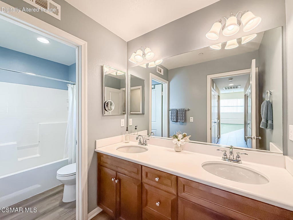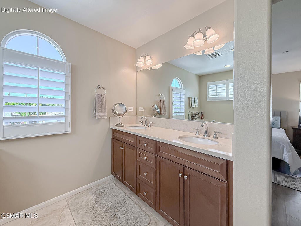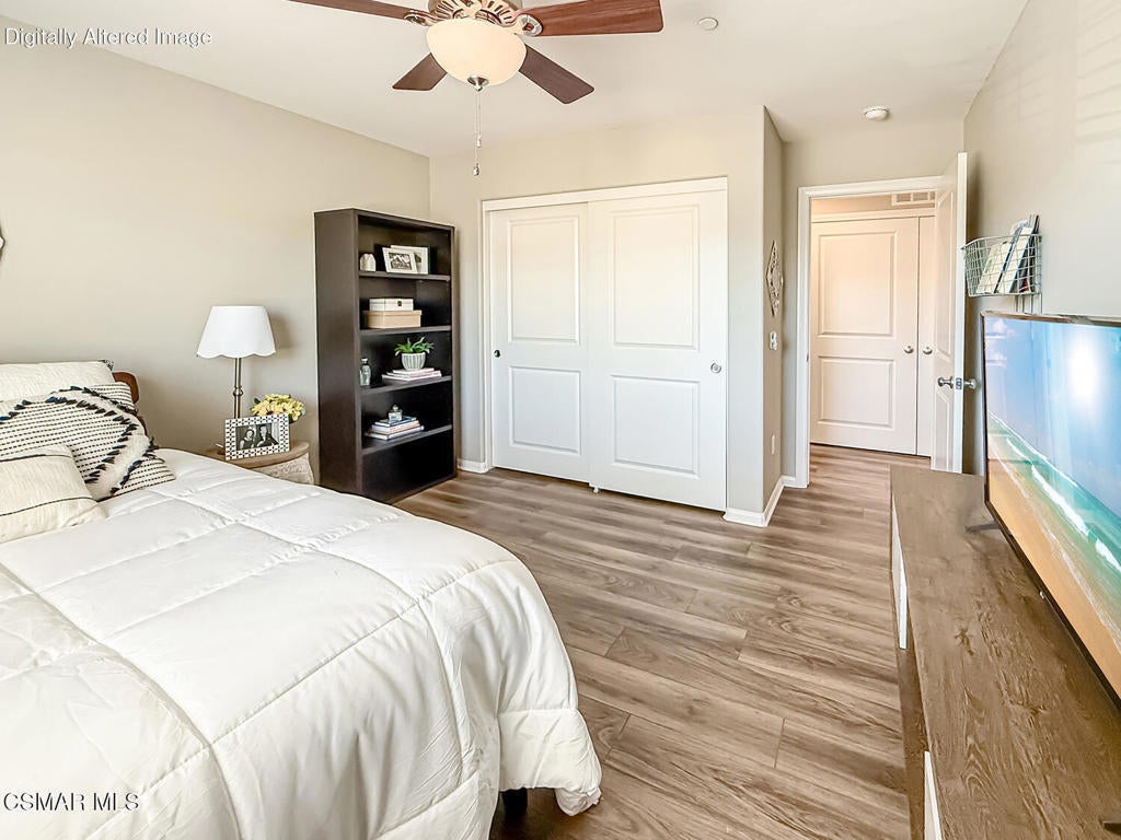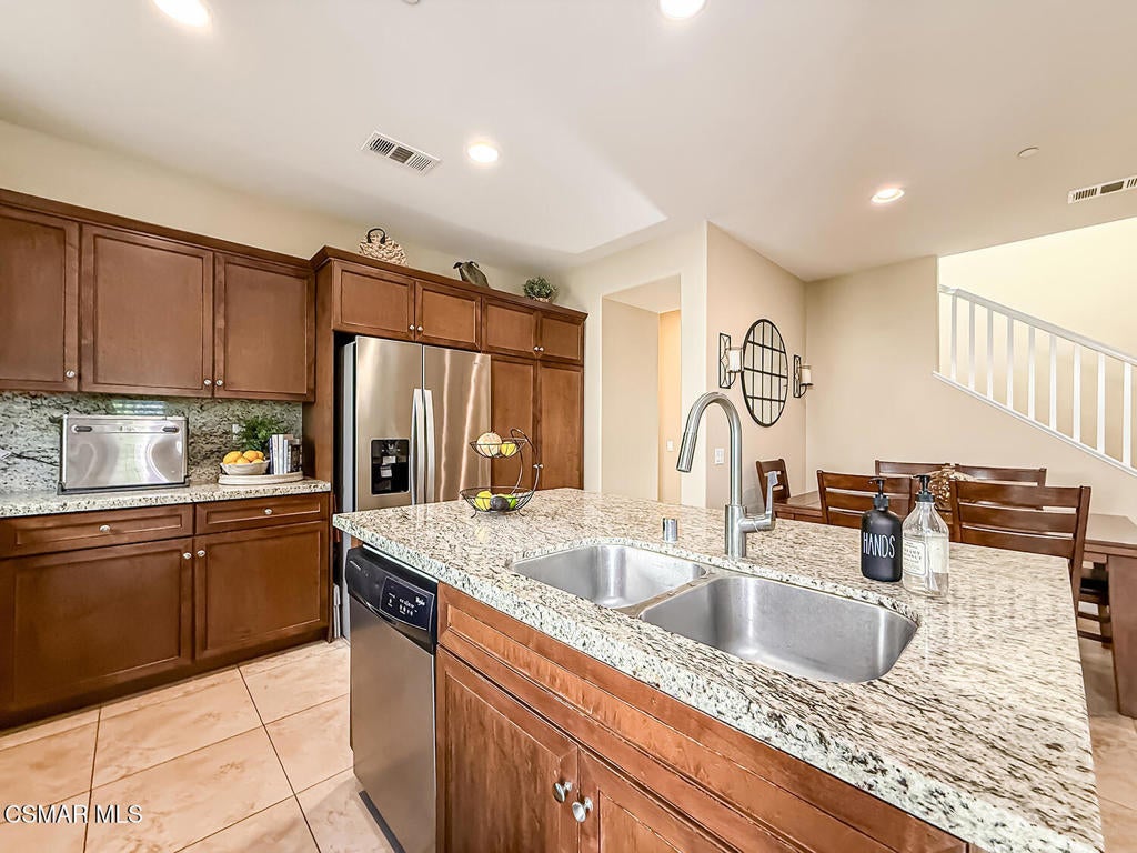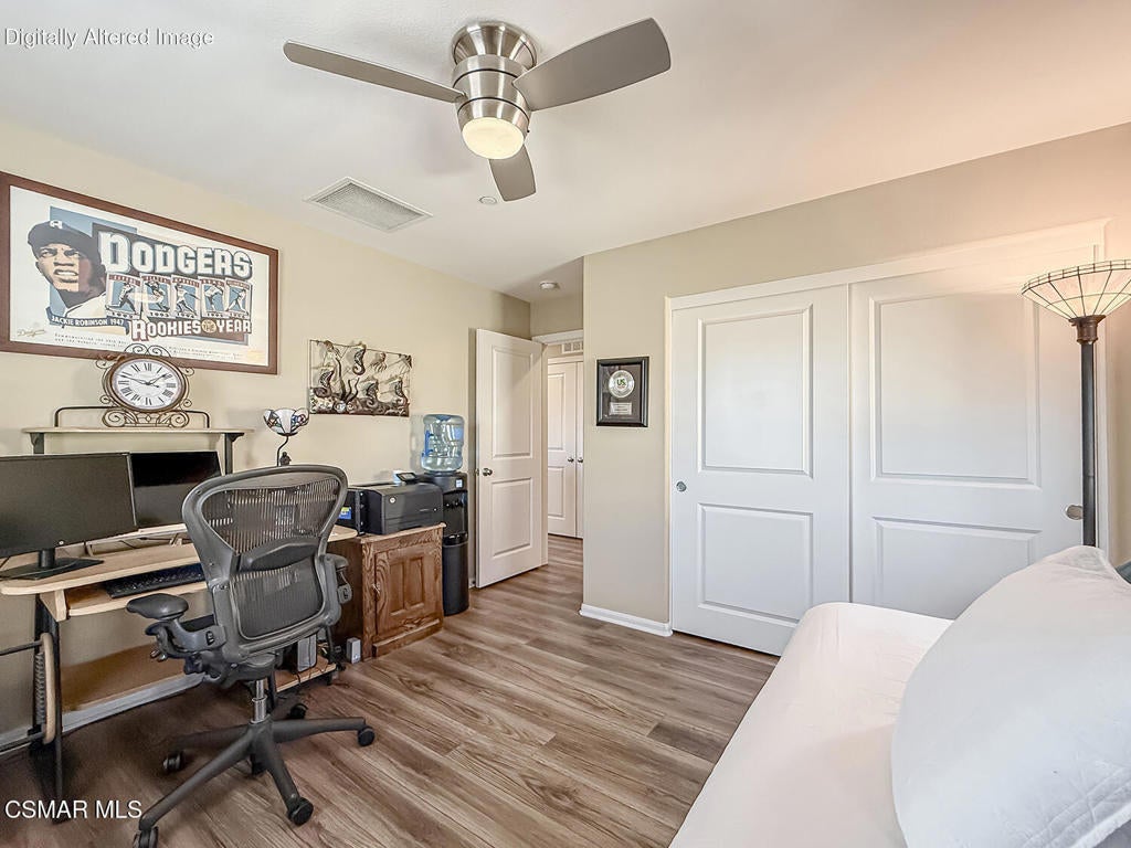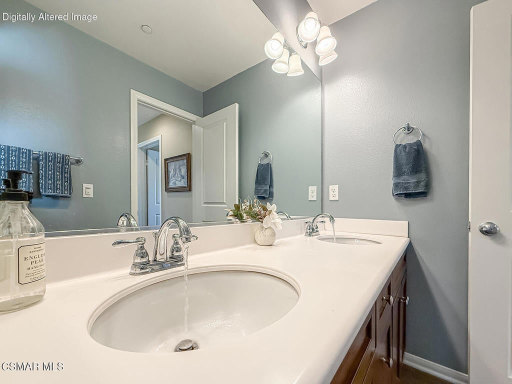 A Refined Tri-Pointe Residence with Whiteface Mountain Views -- Elevated Living in Central/West Simi ValleyDiscover a rare and sophisticated offering within one of Central Simi Valley's most charming and private enclaves--a beautifully appointed Tri-Pointe residence that effortlessly blends elevated design with everyday livability. Tucked inside a peaceful, self-contained community, this light-filled home welcomes you with a sense of calm, privacy, and understated elegance.Thoughtfully designed, the versatile floor plan features three spacious bedrooms upstairs, complemented by a main-level bedroom or flex space--ideal as a private office, guest suite, or multigenerational living option. Sunlight pours through the interiors, highlighting refined finishes, including custom 4-inch shutters that add both warmth and architectural polish.The kitchen presents a clean, modern aesthetic with newer appliances, sleek stainless-steel accents, and a seamless connection to the dining area. A glass door extends the living experience outdoors, revealing one of the largest and most inviting backyards in the community--a true private sanctuary. Designed for both entertaining and relaxation, the outdoor space showcases a generous paver patio, lush lawn, and curated landscaping. Mature plantings of lemon, plumeria, jasmine, and fuchsia create a vibrant yet tranquil retreat, while thoughtful additions such as a pet door and optional catio enhance everyday ease.Upstairs, durable flooring and an open, airy feel continue throughout. From the primary suite, enjoy picturesque views of Whiteface Mountain--an inspiring natural backdrop that elevates daily living and brings a sense of serenity right to your window.Perfectly positioned, this exceptional residence offers convenient access to top-rated schools, dining, grocery stores, specialty markets, and shopping. Outdoor enthusiasts will appreciate close proximity to the Arroyo Simi Equestrian Center, nearby parks, and easy access to the 118 freeway--making both recreation and commuting effortlessly accessible.Every detail of this home reflects a harmonious balance of style, comfort, and functionality--delivering a living experience that is both refined and inviting.