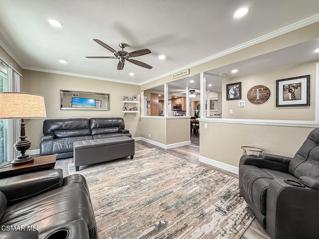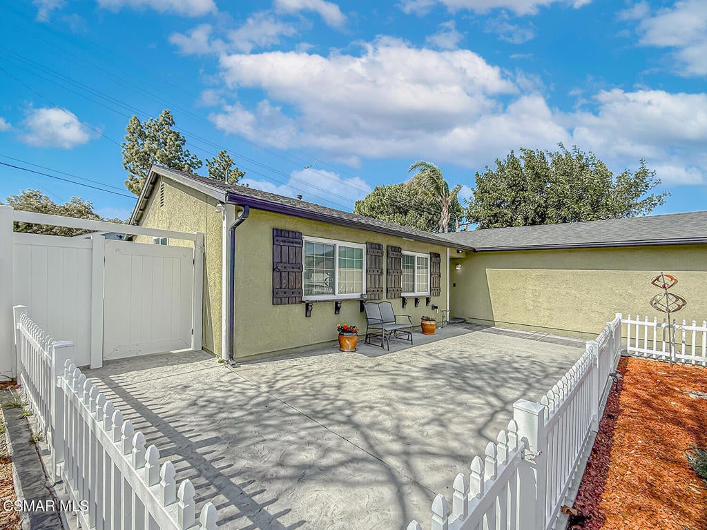 Welcome to this beautifully updated single-story home offering 4 bedrooms and 2 bathrooms with stylish upgrades and versatile living spaces throughout. Freshly painted and featuring laminate flooring across the entire home, the interior is enhanced with recessed lighting, ceiling fans, and newer windows with custom casing that add both comfort and modern character. The kitchen is equipped with stainless steel appliances and opens comfortably to the main living areas, creating an inviting space for everyday living and entertaining. Step outside and enjoy a thoughtfully designed outdoor setting. The fenced front patio provides a private entry and relaxing sitting area, complemented by a drought-tolerant front yard for low-maintenance landscaping. The backyard offers plenty of space to entertain and play, featuring stamped concrete patio areas, a grassy lawn, a covered patio, and even a basketball half court. A standout feature is the additional detached unit in the back--perfect for a home office, private gym, creative studio, or spa-style retreat. Exterior security cameras provide added peace of mind. Conveniently located close to shopping, dining, parks, and with easy freeway access, this home combines comfort, functionality, and lifestyle in one exceptional property.