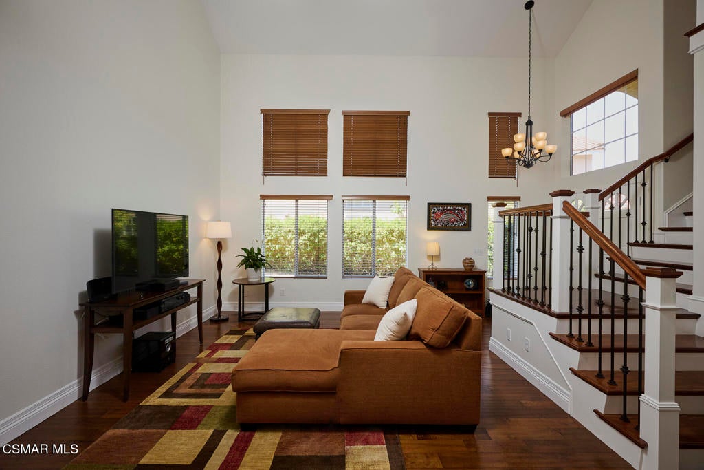 Wow! What a gorgeous home! Finally, a turnkey Rancho Conejo 5 bedroom home with a great yard! Welcome to 1804 Golden Oak, a short and quiet street in 24 hour guarded Rancho Conejo. With breathtaking hardwood (not LVP) flooring, a stunningly remodeled kitchen featuring rich mahogany stained cabinets, square edged granite with glass backsplash, a full complement of deep drawers, stainless steel appliances including both a side by side and wine fridge! The built in bay window seated breakfast nook is sublime and a place you will thoroughly relish every mealtime. The collection of gorgeous contemporary window coverings are super cool too. The family room has a beautiful wood burning fireplace and 8' sliding glass door which leads to a spacious patio and retractable cable shade cover. There's even an above ground spa for fun relaxation. The grassy yard is Uniquely roomy for the neighborhood and it's super private! The first floor rounds out with a living room, dining room and a very sharp iron and wood staircase. There's a full bath down for guests and the downstairs bedroom. Indoor laundry and a 3 car garage are also accessible on the ground level. Upstairs you'll find 4 more bedrooms including a large, elegant primary suite with plantation shutters. Rancho Conejo is a 24 hour guard gated community with roving patrol, 2 pools and 2 spas, dog friendly pedestrian paseos, close to shopping, the Oaks Mall, Los Robles Regional Medical Center, Rancho Conejo Playfield with the most fun and competitive pickleball courts, and great schools. Hiking trails are close and accessible from both the front and rear gates and the dues are a truly ridiculous $163/mo!