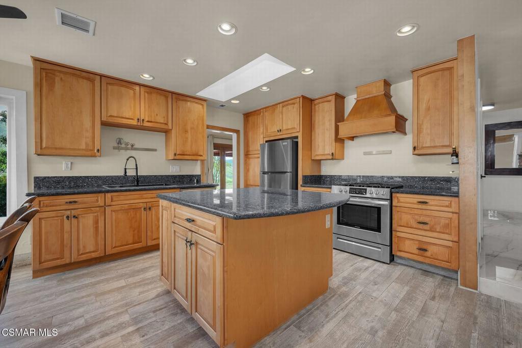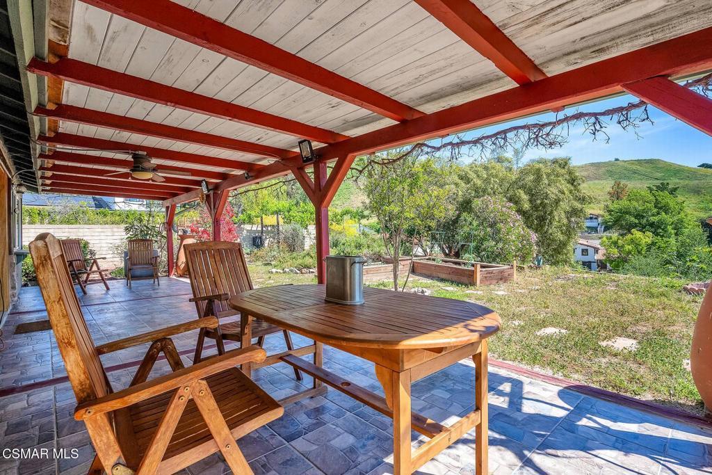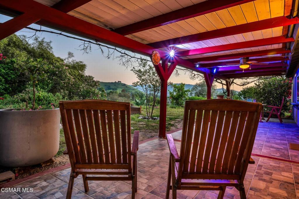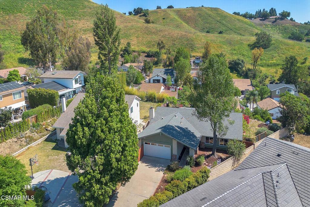 Tucked at the end of a quiet cul-de-sac, this single-story home offers a rare combination of privacy, views, and an expansive lot of approximately one-third of an acre. Set in an elevated position, the property enjoys a peaceful setting with surrounding hillside and sunset views. The outdoor space has been thoughtfully cultivated over the years into a garden-inspired setting featuring a variety of mature fruit trees including fig, lemon, tangerine, peach, medlar, and strawberry tree, along with drought-tolerant landscaping designed for long-term sustainability. A charming pergola with a mature grapevine, vibrant bougainvillea, and multiple seating areas create inviting spaces to relax and take in the surroundings. The patio has been upgraded with durable stone-look tile, offering both beauty and ease of maintenance, and extends the living space outdoors. Inside, the home features engineered wood flooring throughout, with oak and maple finishes, and a layout filled with natural light. The kitchen includes a marble countertop, island, maple cabinetry, and an operable skylight for added ventilation. Thoughtful upgrades throughout include solid wood and mahogany doors, including interior bathroom doors with glass panels that allow light and views to carry through the space. One of the bathrooms features a steam shower, adding a spa-like element to the home. Additional improvements include double-pane windows and quality materials that reflect care and craftsmanship over time. Structural reinforcement work was completed with a permitted pier system, offering added peace of mind. Located within the Oak Park community with convenient access to nearby parks, shopping, dining, and local schools, this property presents a unique opportunity in an area known for its limited turnover.