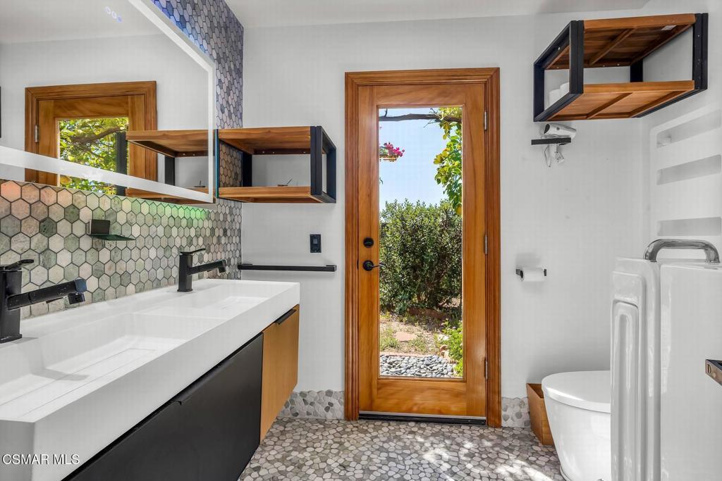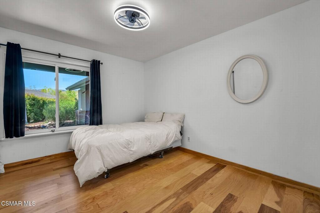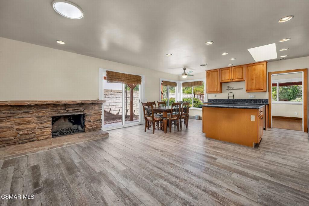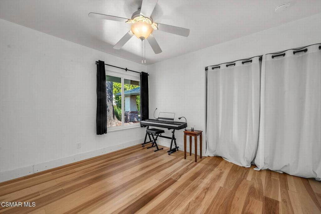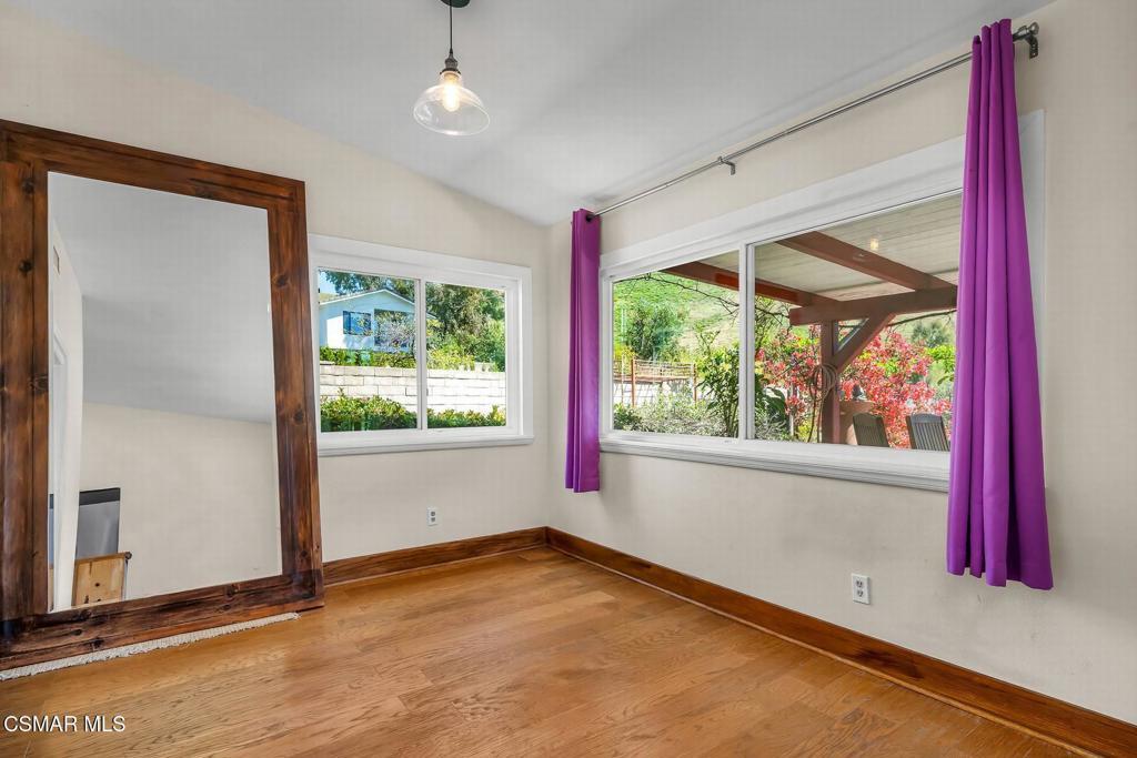 Tucked at the end of a quiet cul-de-sac, this single-story home offers a rare combination of privacy, views, and an expansive lot of approximately one-third of an acre. Set in an elevated position, the property enjoys a peaceful setting with surrounding hillside and sunset views. The outdoor space has been thoughtfully cultivated over the years into a garden-inspired setting featuring a variety of mature fruit trees including fig, lemon, tangerine, peach, medlar, and strawberry tree, along with drought-tolerant landscaping designed for long-term sustainability. A charming pergola with a mature grapevine, vibrant bougainvillea, and multiple seating areas create inviting spaces to relax and take in the surroundings. The patio has been upgraded with durable stone-look tile, offering both beauty and ease of maintenance, and extends the living space outdoors. Inside, the home features engineered wood flooring throughout, with oak and maple finishes, and a layout filled with natural light. The kitchen includes a marble countertop, island, maple cabinetry, and an operable skylight for added ventilation. Thoughtful upgrades throughout include solid wood and mahogany doors, including interior bathroom doors with glass panels that allow light and views to carry through the space. One of the bathrooms features a steam shower, adding a spa-like element to the home. Additional improvements include double-pane windows and quality materials that reflect care and craftsmanship over time. Structural reinforcement work was completed with a permitted pier system, offering added peace of mind. Located within the Oak Park community with convenient access to nearby parks, shopping, dining, and local schools, this property presents a unique opportunity in an area known for its limited turnover.
