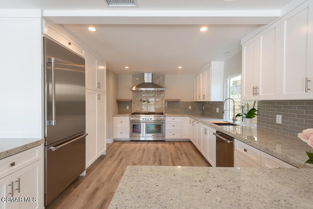 This rare, main channel rental is located on Westlake Lake waterfront with sweeping views of the marina, Santa Monica Mountains and two channels! It is newly renovated with high quality vinyl floors, floating staircase, LED lighting and new windows/doors. The gourmet kitchen boasts granite counters, Thermador appliances and breakfast bar, plus a light and bright open floorplan that is ideal for modern living. The master and downstairs bedrooms offer spacious closets and ensuite, handicap accessible bathrooms. Additional features include a Wyze door lock, keypad and doorbell. An expansive deck overlooking the water leads to a private dock and upgraded electric boat, perfect for a sunset cruise or visiting one of the lakefront restaurants. Boat, walk or bike to Westlake's best dining, retail shops or yacht club just minutes from the property, plus exemplary Las Virgenes schools, nearby parks, playing courts and hiking/biking trails. This is the very best of Southern California lake life!