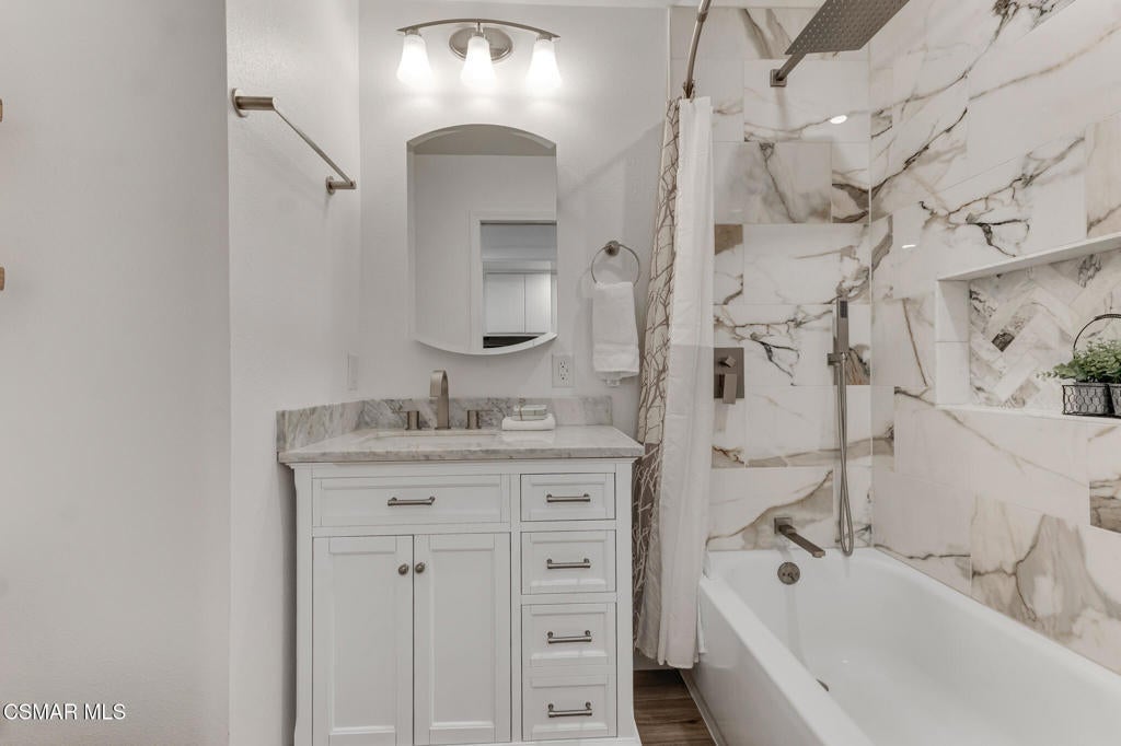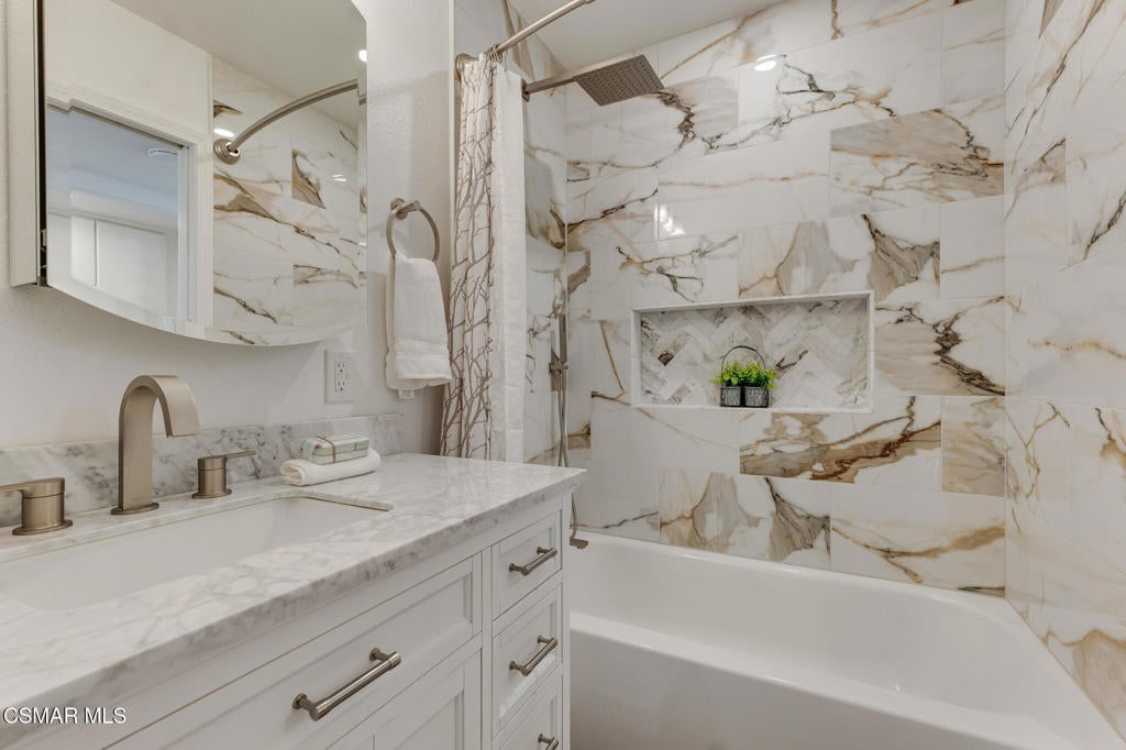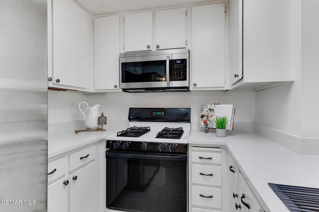Welcome to this beautifully upgraded upstairs condo in the desirable Parkview community. This inviting 2 bedroom, 2 bath residence offers a light, airy ambiance with thoughtful enhancements throughout.The spacious kitchen is tastefully updated with quartz countertops, bright cabinetry, and new appliances, including a refrigerator. A convenient breakfast bar adds both functionality and style, making it ideal for everyday living and entertaining.The primary suite is generously sized, offering comfort and privacy, while both bathrooms have been upgraded with elegant finishes, including marble inspired tile and modern floating shelving.Additional highlights include in unit laundry, a private balcony perfect for relaxing, a tankless water heater, fresh interior paint, and ethernet connectivity in one bedroom. The home also includes a one car garage plus an assigned parking space.Ideally located close to shopping, dining, and everyday conveniences, this community also features a sparkling pool, perfect for enjoying warm California days.