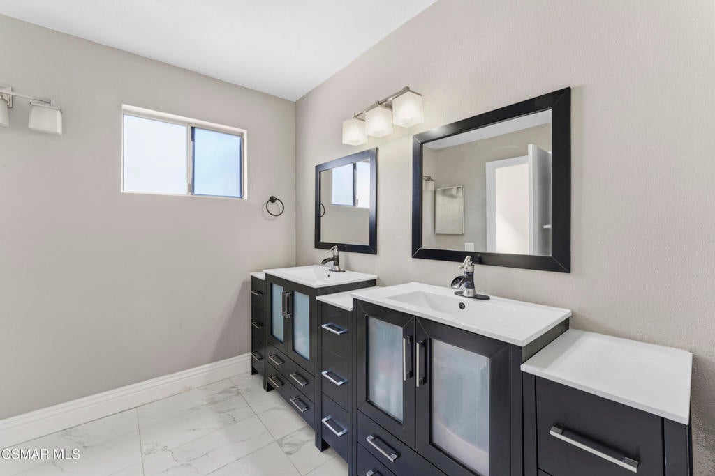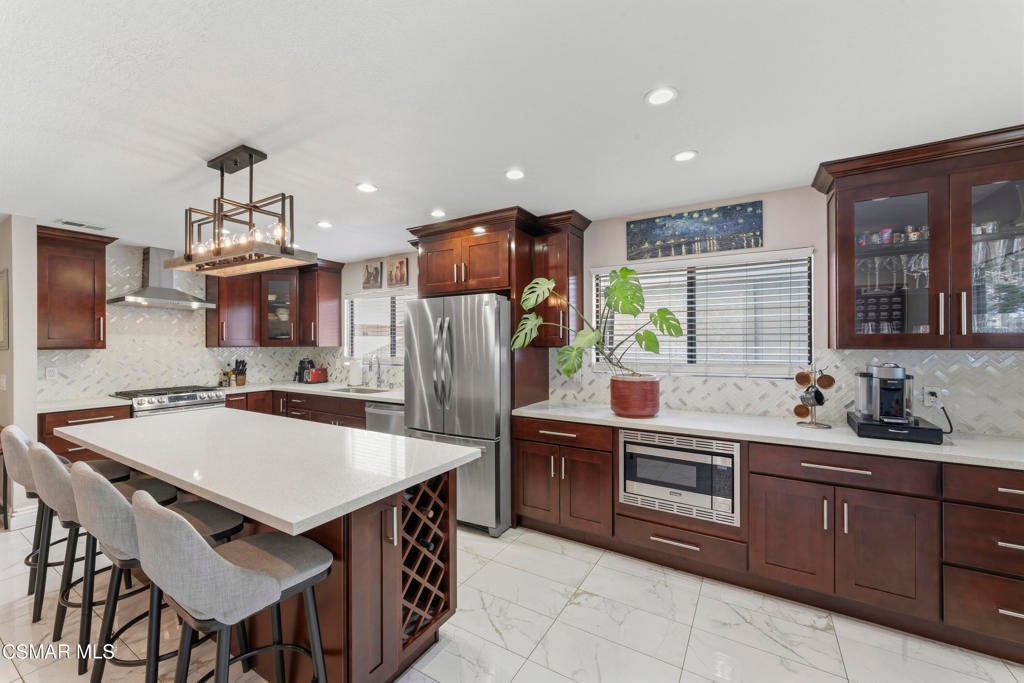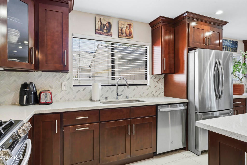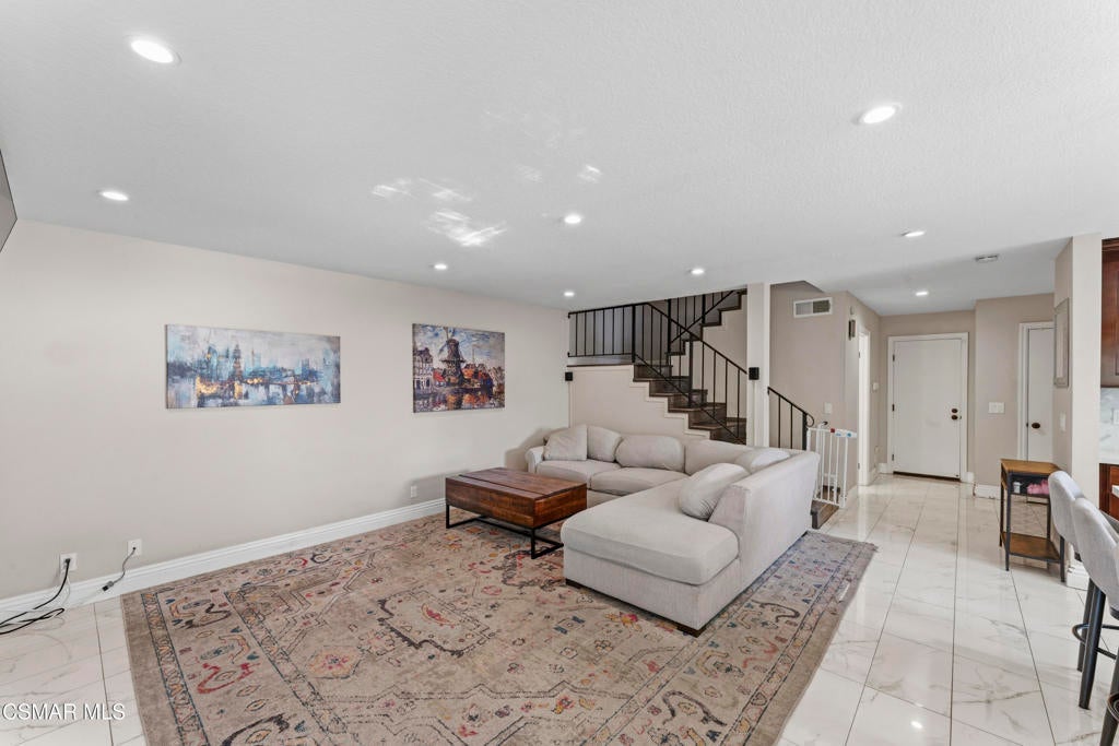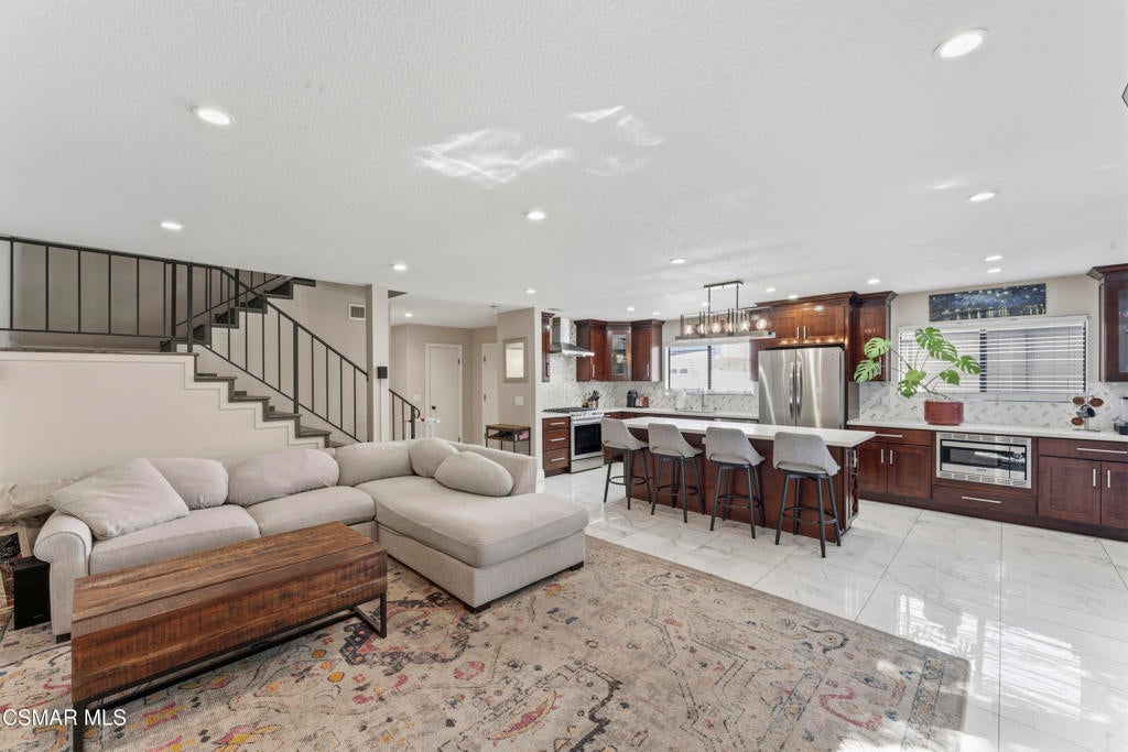 Welcome to the most upgraded home in the desirable Oaktree Community! This beautifully updated 3-bedroom, 2.5-bath residence offers 1,656 sq ft of thoughtfully designed living space with modern upgrades throughout. Enter through the impressive double-door entry into a bright open-concept floor plan featuring a fully remodeled living room and kitchen (2019). The chef's kitchen is the heart of the home with a massive quartz island, stainless steel appliances, and plenty of space for cooking and entertaining.New tile flooring flows throughout the main living areas, enhancing the home's clean and contemporary feel. Upstairs, the spacious primary suite features a large walk-in closet and an upgraded bathroom with dual his-and-hers vanities. Enjoy indoor-outdoor living with a private patio and an upstairs balcony.Additional features include an attached 2-car garage with direct access, generous storage, and stylish upgrades throughout. Residents of the Oaktree community enjoy resort-style amenities including a pool and tennis courts, all with a low HOA.Ideally located in the heart of Simi Valley close to shopping, dining, parks, and schools--this is truly one of the most upgraded homes in the community.