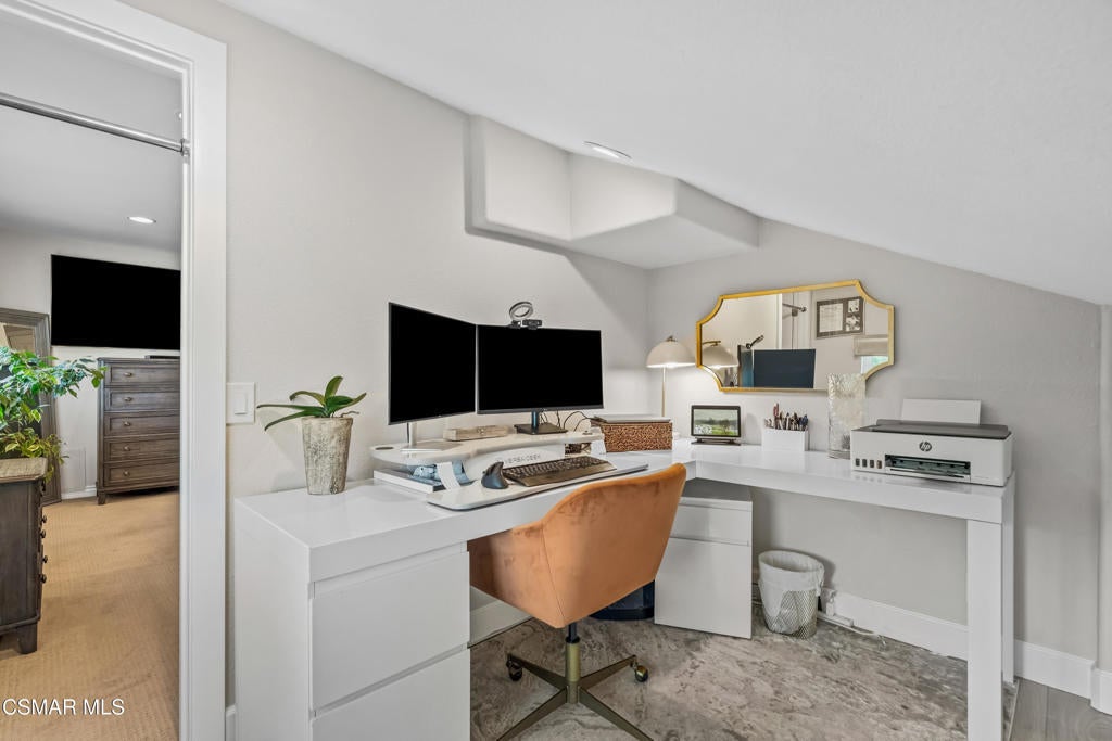 Welcome to this tastefully remodeled home with charm and function. The kitchen dazzles with crisp white custom cabinetry and brushed-gold hardware, sleek quartz countertops, stainless steel appliances including a gas range and built-in microwave, under-cabinet lighting, breakfast bar, and integrated wine storage, perfect for entertaining and everyday living.Natural light floods the living spaces. A cozy stone fireplace and built-ins give the main living space all the comforts of home. The primary suite offers a peaceful retreat with ceiling fan, serene hill views, and direct access to a versatile flex space ideal for a home office, expanded closet, or nursery. The primary en-suite features a frameless glass walk-in shower with dual rainfall and handheld fixtures, built-in bench, and elegant marble accents. Step outside to an expansive private backyard oasis with citrus, avocado, and pomegranate trees, premium vinyl fencing, secure side gate, and a covered gazebo, set directly across from a lush avocado orchard for exceptional privacy.Highlights include: remodeled kitchen and baths, near-new energy-efficient tile roof, vaulted ceilings, recessed lighting, custom fireplace with built-ins, versatile flex space with custom cabinetry, low HOA of approx. $40/month, attached two-car garage with direct access, and indoor laundry. Ideally located near Wood Ranch Open Space and miles of scenic trails, with easy access to shopping, dining, parks, and the Ronald Reagan Presidential Library.Convenient to both the 118 and 101 freeways--each under 10 minutes away. A rare opportunity to own a beautifully updated home in one of Simi Valley's most desirable neighborhoods.