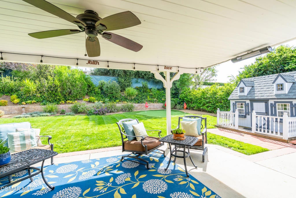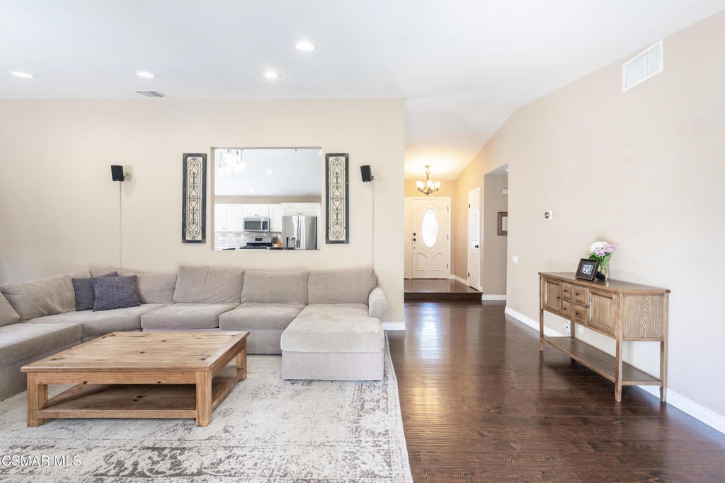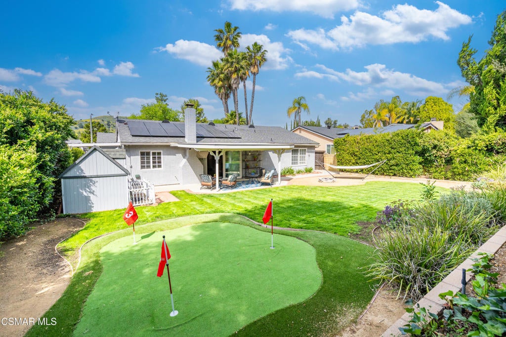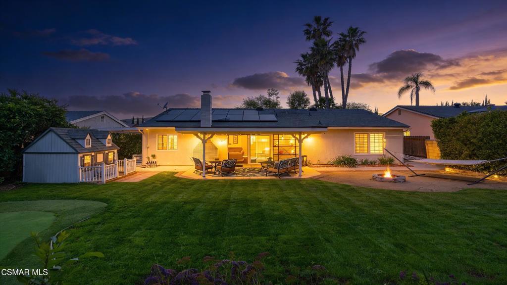 Beautiful single-story home with a stunning yard and an inviting open-concept layout filled with natural light. The updated kitchen features a large center island that overlooks the dining area and family room, creating a seamless flow ideal for everyday living and entertaining. Wood flooring adds warmth and continuity throughout the main living spaces.The remodeled primary bathroom offers charm and comfort, while the spacious family room showcases high ceilings, a cozy fireplace, and direct access to the backyard. Step outside to a generous grassy yard with mature trees and a covered patio--perfect for relaxing or hosting guests.Additional upgrades include solar panels through Sun Run, an updated HVAC system installed approximately two years ago, and a roof replaced within the last five years--providing both efficiency and peace of mind. Located within the highly sought-after Oak Park Unified School District, this home combines comfort, style, and functionality in an exceptional setting.