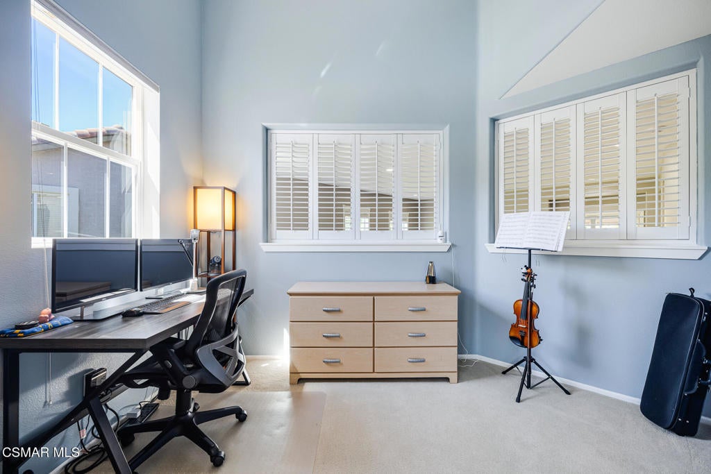 Welcome to the prestigious gated community of Long Canyon in Simi Valley, a picturesque enclave known for its tree lined streets, scenic walking trails, and peaceful natural surroundings. This beautifully appointed 5 bedroom, 4.5 bath residence offers 3180 square feet of thoughtfully designed living space, blending comfort, style, and functionality. Step inside to soaring ceilings and an abundance of natural light that fills the grand entry and formal living room. The versatile floor plan features a desirable downstairs bedroom and full bath, a private dining room, and a spacious family room. The open concept kitchen seamlessly connects to the family room and is complete with a breakfast counter, center island, and generous cabinetry, perfect for everyday living and entertaining. Upstairs, a sweeping staircase leads to a luxurious primary retreat with ample space for a sitting area or workspace, along with tranquil views of the backyard and open skies. The primary bath offers dual vanities, a soaking tub, step in shower, and a large walk in closet. Three additional upstairs bedrooms provide flexibility, including one with an ensuite bath, plus a loft and charming Juliet balcony. Additional highlights include upstairs laundry, a three car garage, and close proximity to hiking trails. This is refined California living at its best.
