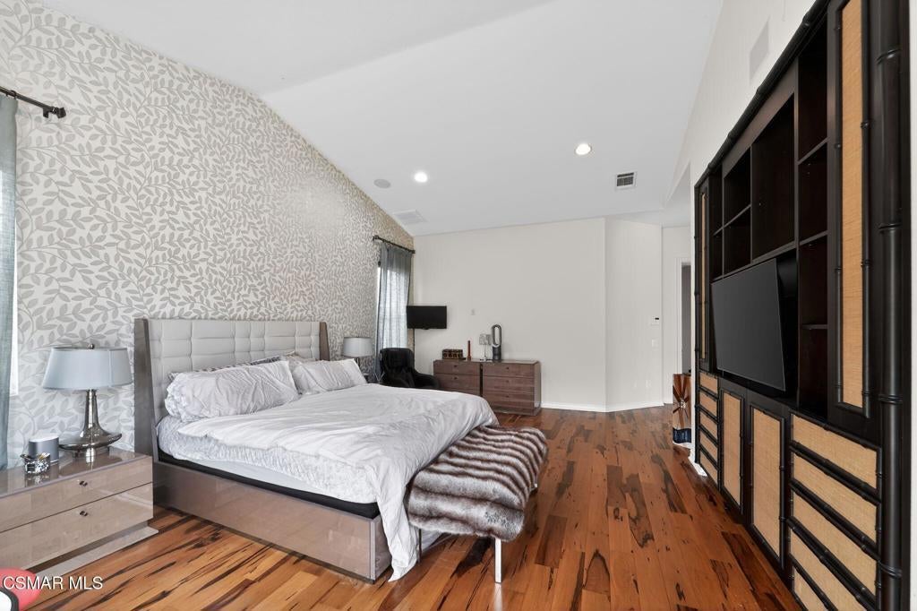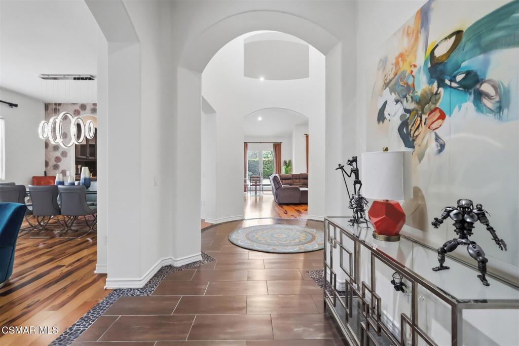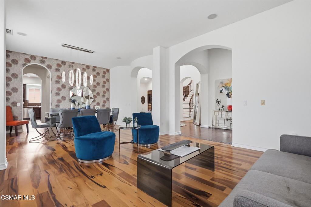 Tucked away on a quiet cul-de-sac in the highly sought-after Rancho Paso Fino community, this Chatsworth residence offers a rare combination of privacy, space, and resort-style living--backing to a vast agricultural parcel with unobstructed views of the Santa Susana Mountains and dramatic natural rock formations.Designed for both everyday comfort and effortless entertaining, the backyard is a true retreat. Enjoy a sparkling pool with Baja shelf and spa, a private sports court, and multiple lounge and gathering areas--all thoughtfully positioned to take full advantage of the surrounding landscape. A detached, open-concept casita with its own bath and closet provides flexible use as a guest suite, home office, or extended living space.Inside, a formal entry opens to elegant living and dining areas, setting the tone for the home's spacious and functional layout. The oversized gourmet kitchen is the centerpiece of the home, featuring a large island, abundant cabinetry, and seamless connectivity through a butler's pantry to a generous walk-in pantry. The kitchen and adjoining family room overlook the backyard, creating a natural indoor-outdoor flow ideal for entertaining.The main level features a spacious primary suite along with additional bedrooms and baths, while the upper level offers private en-suite accommodations and a secondary living area--perfect for added flexibility and separation of space.Additional highlights include dual garage configurations and a dedicated laundry room, all within a peaceful setting that offers both seclusion and convenience.A rare leasing opportunity in one of Chatsworth's most desirable enclaves.