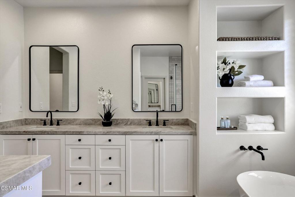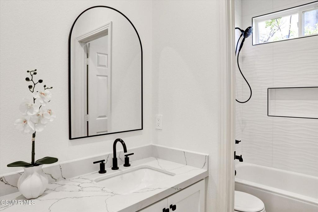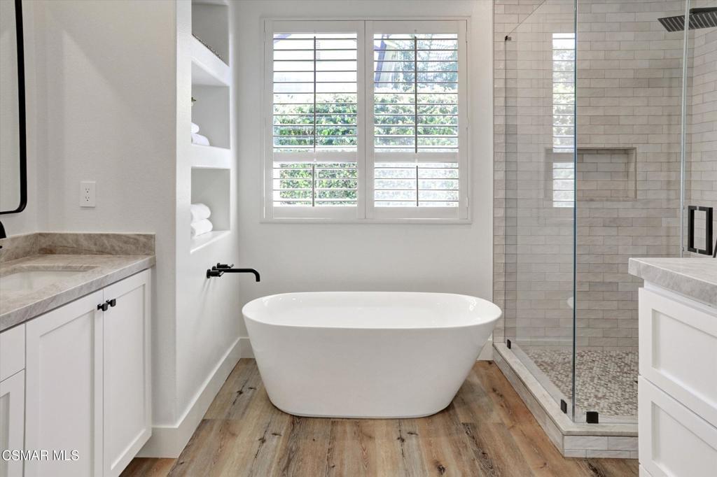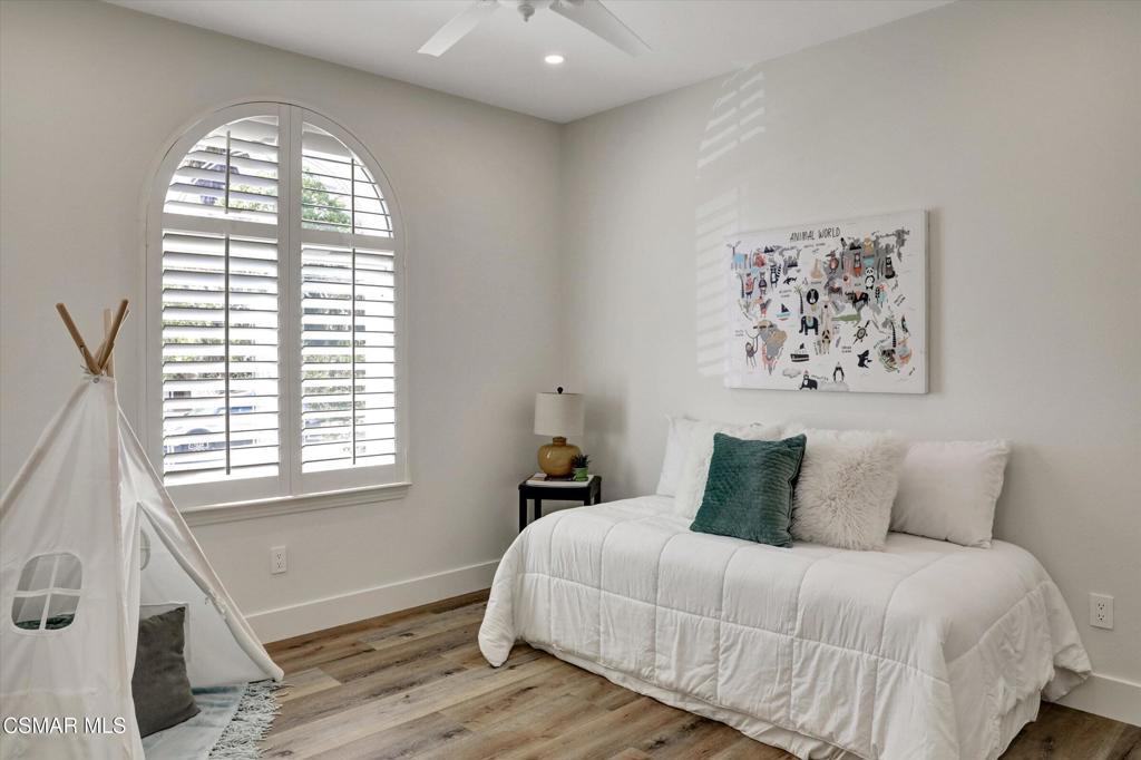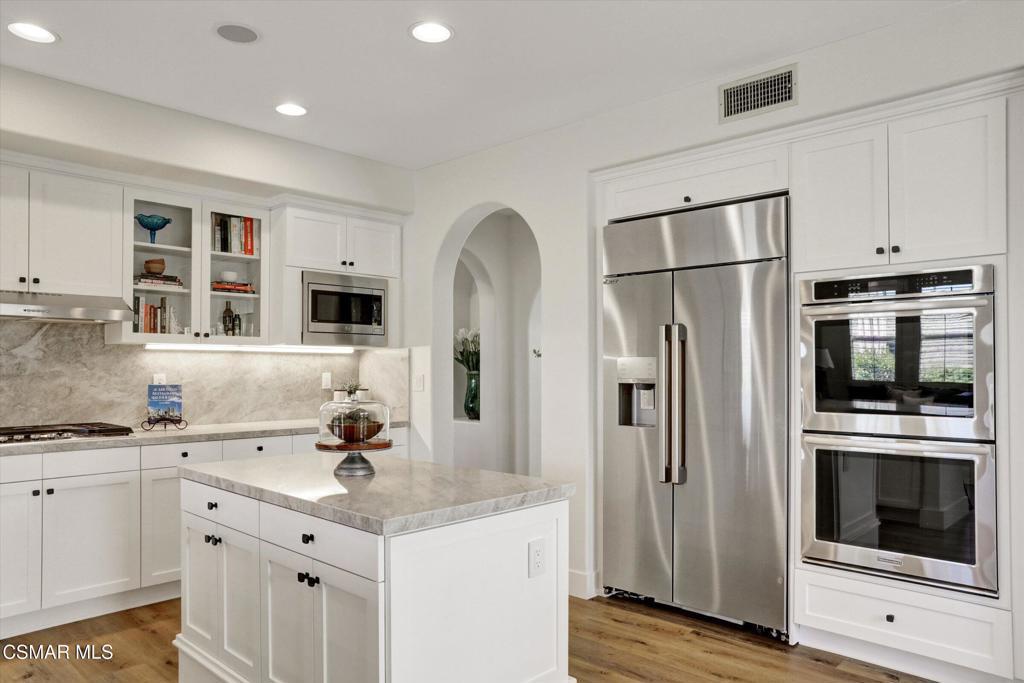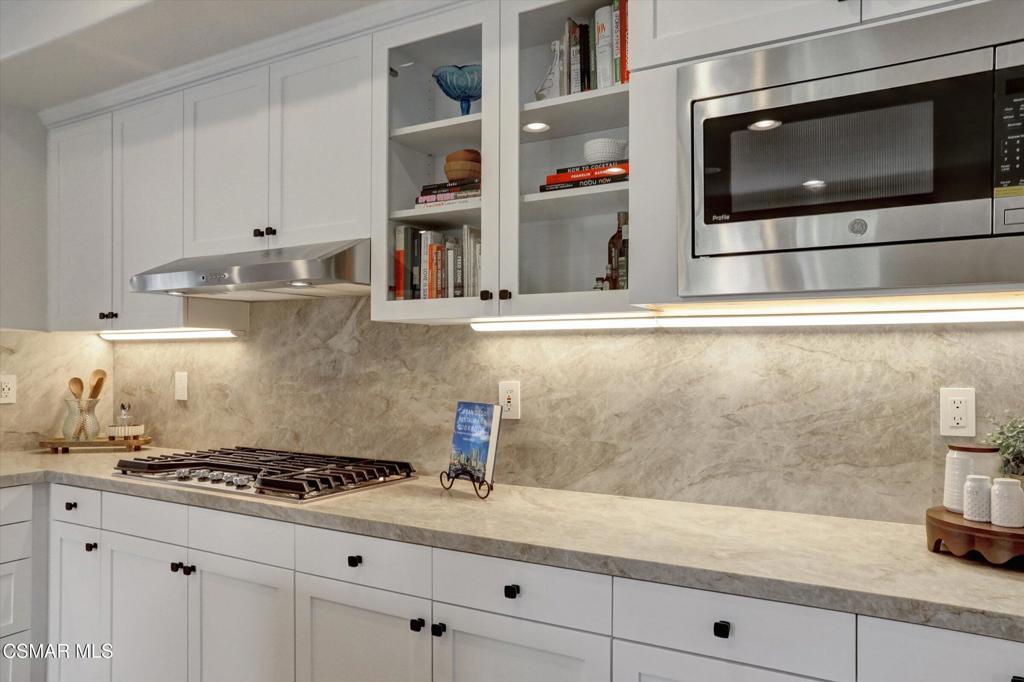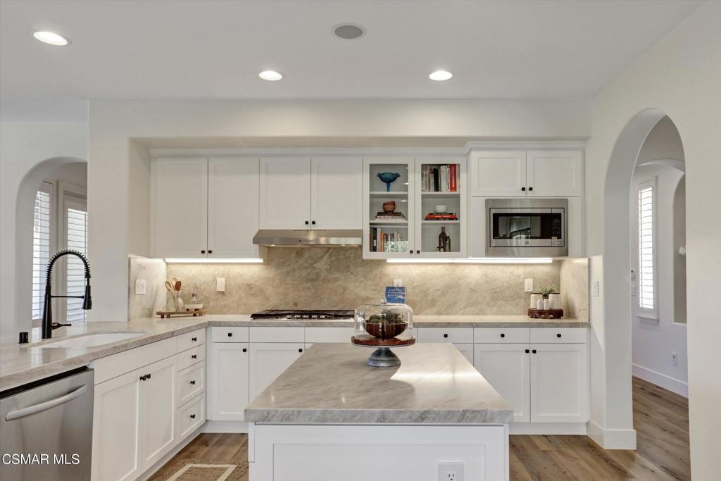 Welcome to this beautifully reimagined single-story home, where modern design meets everyday comfort in one of Simi Valley's most desirable neighborhoods. Thoughtfully remodeled throughout, this residence offers a seamless blend of style, functionality, and indoor-outdoor living.Inside, the home features three bedrooms (possible fourth), a welcoming family room with fireplace and custom built-ins, new wide-plank flooring, abundant natural light, and an open-concept layout ideal for both daily living and entertaining. The stunning chef's kitchen serves as the heart of the home, showcasing custom white cabinetry, new quartz countertops, stainless steel appliances, a large center island, and a full-height backsplash with under-cabinet lighting--perfect for gathering and hosting.Retreat to the beautifully upgraded primary suite, complete with a spa-inspired bathroom featuring a walk-in glass shower, modern tilework, dual vanities, a walk-in closet, and a freestanding soaking tub--creating a true luxury experience at home.A standout feature is the dedicated media/flex room, ideal for movie nights, a home office, gym, or additional living space, offering the versatility today's buyers are seeking.Step outside to a private backyard designed for relaxation and entertaining. Enjoy a covered patio for dining, an expansive seating area, and a custom fire pit set against a peaceful, landscaped backdrop. The yard offers a rare combination of usable space, fruit trees, privacy, views, and scenic surroundings--perfect for indoor-outdoor California living.Additional highlights include remodeled secondary bathrooms, recessed lighting throughout, plantation shutters, custom storage, and an upgraded spacious three-car garage.This turnkey home delivers the perfect blend of luxury, lifestyle, and location
