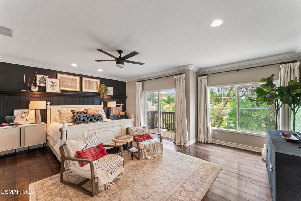 Tastefully remodeled Long Canyon home in the Hearthstone tract on a cul-de-sac street. With 5 bedrooms and 5 baths, this home will easily accommodate a large and/or growing family. Designer paint and finishes throughout, this home is done in tasteful and neutral tones. Stunning front entry with two story ceilings, large windows and double crown molding. Living room and formal dining with rich wood floors and slider to rear yard patio. Beautiful kitchen with white cabinetry, new countertops & fixtures, all open to the adjacent family room. Family room is nicely equipped with cozy fireplace, surround sound system and convenient built-ins. One bedroom located downstairs with its own attached full bathroom. Upstairs you'll find your remodeled master suite with wood floors, private balcony and dual closets. Luxurious en suite bath with white marble finishes, dual vanities, soaking tub and spacious shower. Additional secondary bedrooms all have attached bathrooms with updated vanities and finishes. Recently repainted exterior gives this home fabulous curb appeal, along with its charming front porch and well maintained landscaping. Rear yard is elevated above neighboring homes, offering privacy and hill views. Well manicured gardens, various fruit trees, and patio area for entertaining complete the backyard.