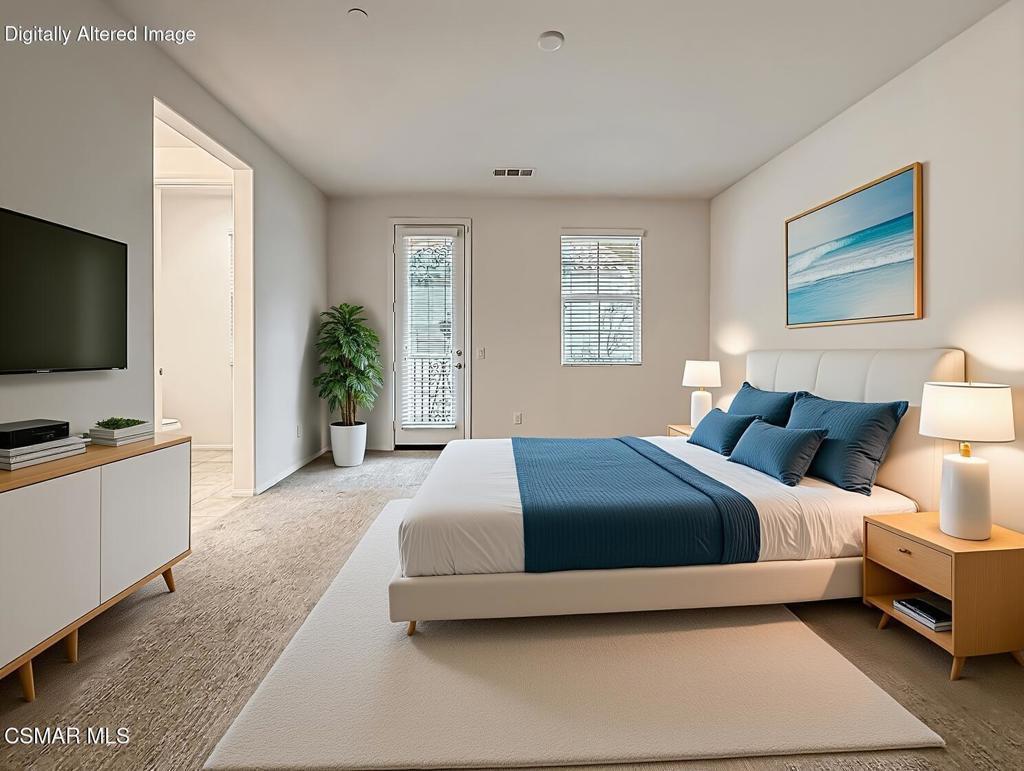 Welcome to this beautifully maintained townhome in Camarillo's desirable Teso Robles community, where modern design, energy efficiency, and a highly functional layout come together seamlessly. Built in 2018, this newer construction residence offers the ideal blend of comfort and convenience in one of the area's most sought-after neighborhoods.The open-concept main level creates an inviting atmosphere, effortlessly connecting the living room, dining area, and kitchen into one bright, cohesive space--perfect for both everyday living and entertaining. A convenient powder room, additional storage, and direct access to the attached two-car garage enhance the home's thoughtful design.The kitchen is both stylish and practical, featuring quartz countertops, GE appliances, and updated window shutters, providing a clean, modern aesthetic with plenty of functionality for cooking and gathering.Upstairs, the layout truly shines with two private primary suites, each with its own full bathroom--an ideal setup for roommates, guests, or anyone who appreciates added privacy. One suite offers a spacious walk-in closet and a well-appointed bathroom with dual sinks and elegant stone finishes. A dedicated upstairs laundry area with washer and dryer adds to the home's everyday ease.Designed with efficiency in mind, the property includes Tesla solar panels, a tankless water heater, energy-efficient appliances, and a 14-50 NEMA outlet in the garage for EV charging--helping keep utility costs manageable while supporting a modern lifestyle.Residents of Teso Robles enjoy access to a range of community amenities, including a private dog park, gated spa, and a fully furnished clubhouse complete with a kitchen and BBQ area--perfect for hosting gatherings or relaxing with neighbors. The home also includes two parking passes, providing convenient accommodations for both one resident and one guest.Ideally located with easy access to the 101 freeway, shopping, dining, and everyday conveniences, this home offers a connected and comfortable Camarillo lifestyle with all the right upgrades in place.
