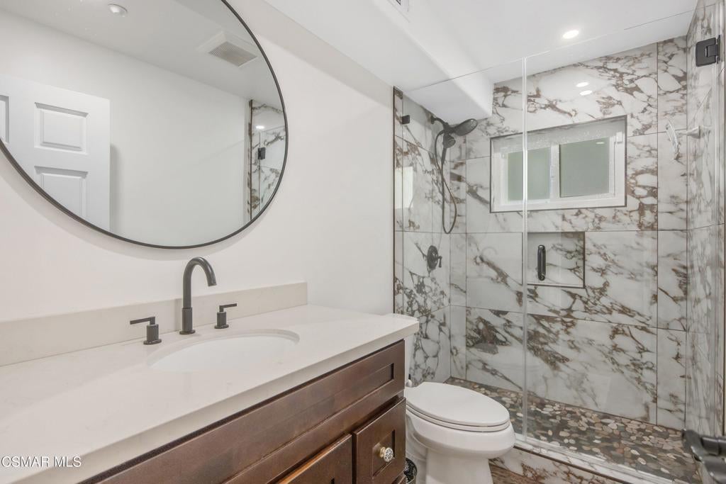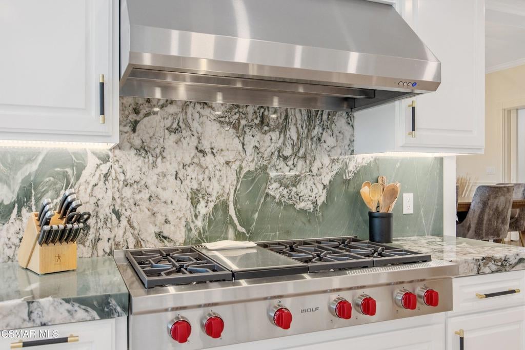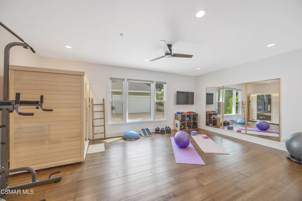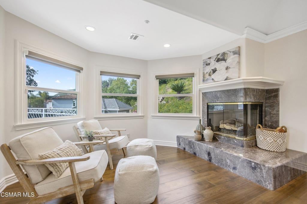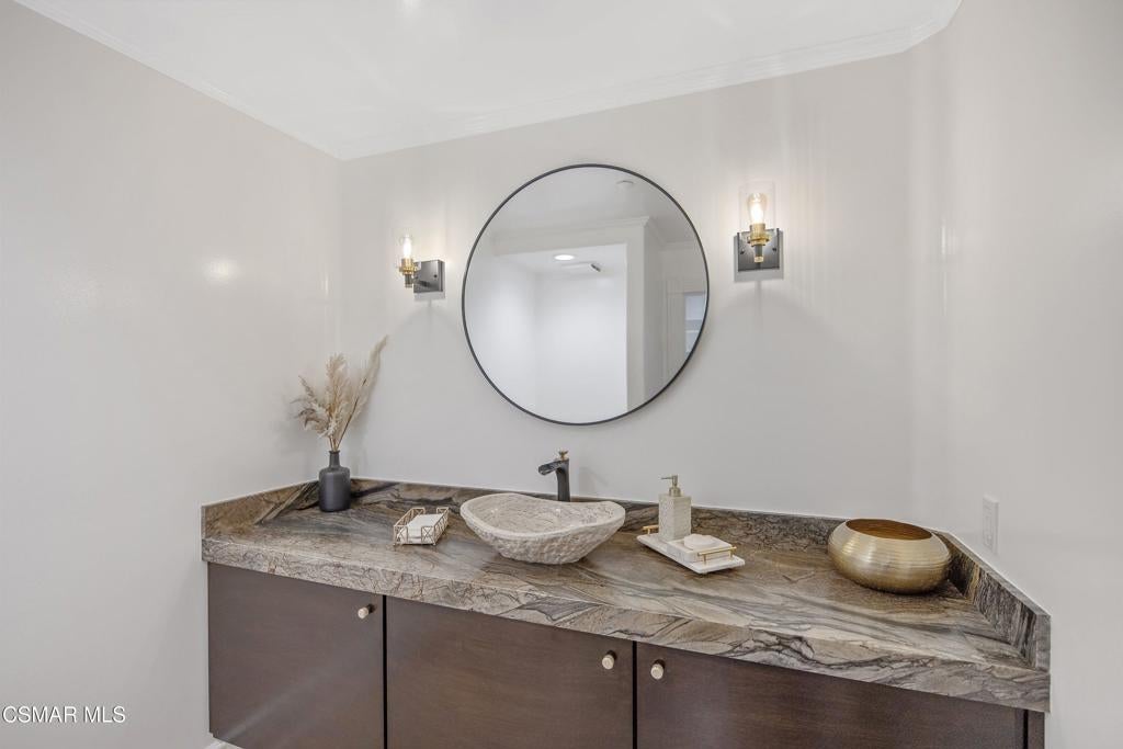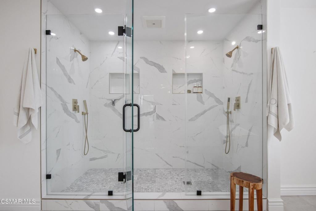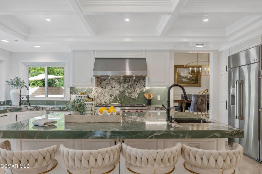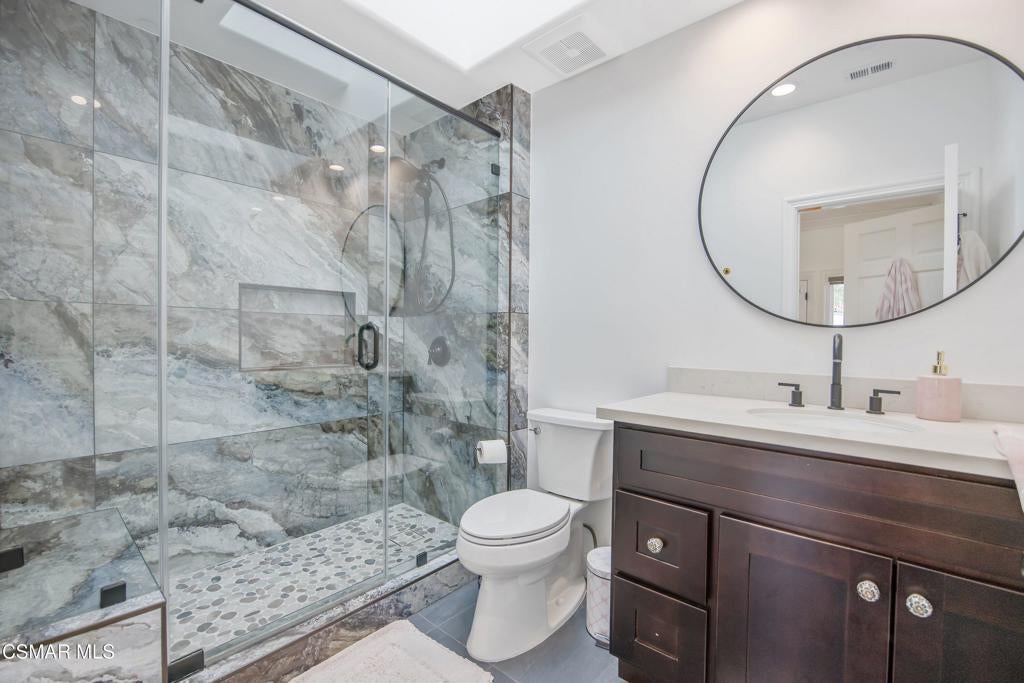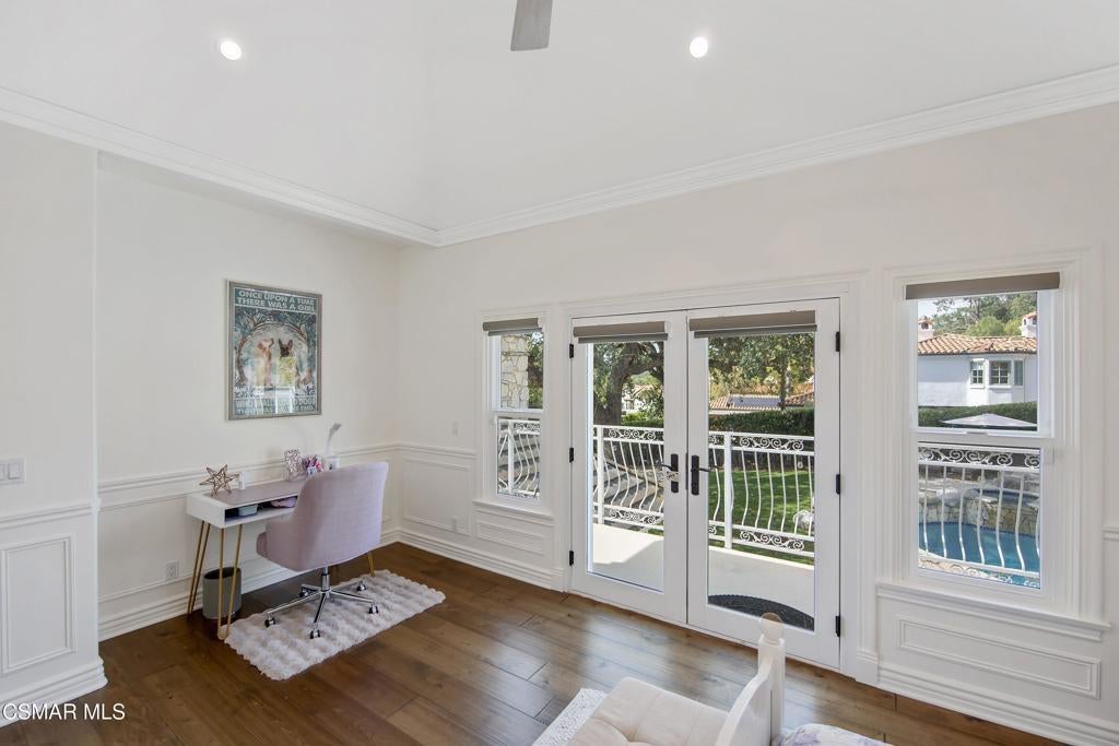 A Masterfully Reimagined North Ranch Estate. Set on a quiet three-quarter-acre lot in North Ranch's coveted Whitehawk neighborhood, 1401 Pathfinder is a study in refined luxury and thoughtful design. Spanning just under 6,300 square feet, this five-bedroom, six-bath residence w/ pool house has been completely transformed to feel elevated, effortless, and timeless.Enter through striking wrought-iron double doors and into a dramatic entry framed by a sweeping curved staircase, soaring ceilings, and natural light pouring in through custom windows. The formal living room, tucked behind pocket doors, balances sophistication and warmth with custom windows and a statement marble fireplace framed by twin custom bookcases. Throughout the home, curated architectural details- custom wainscoting and board-and-batten, newly installed hardwood floors, and elegant marble accents create cohesion and depth.Each bedroom is designed as a true retreat, featuring high ceilings, custom California Closets, and beautifully renovated ensuite baths finished with marble and custom tile. Two ensuite bedrooms on the main level offer private outdoor access, reinforcing the home's easy indoor-outdoor flow.The kitchen, redesigned in 2023, is both striking and highly functional. Wolf appliances, marble surfaces, custom cabinetry, an oversized island, and a walk-in pantry make it equally suited for everyday living and elevated entertaining. The adjoining breakfast area adds charm and practicality with traditional detailing, additional built-ins, and prep space.Anchoring the main level is an expansive great room that opens seamlessly to the kitchen and backyard. With soaring ceilings, a massive custom bar and bar area and a bold statement fireplace, it's the heart of the home--a space designed for gathering, celebrating, or unwinding in style.A downstairs office features built-in bookcases and offers the versatility to function as a den, library, or private workspace. The formal dining room has been thoughtfully reimagined as a private indoor gym, offering remarkable flexibility. This space easily accommodates large-scale formal dining, a recreation room, or a playroom, adapting effortlessly to your lifestyle.A well-appointed laundry room with sink and ample storage is conveniently located just outside the attached four-car garage, creating an efficient and practical transition space for daily living.Upstairs, three additional ensuite bedrooms await. Two open to a wraparound balcony overlooking the backyard, while the primary suite stands apart as a true sanctuary- generous in scale, offering a cozy seating area by its corner fireplace, and paired with a spa-inspired bath featuring a dual-head shower and soaking tub. Newly installed skylights shine natural light throughout.Outdoors, the property is designed for both relaxation and connection. A tropical lagoon-style pool and spa, gas fire pit with generous built-in seating, and a versatile pool house create an environment ready for hosting or peaceful evenings at home. Two 250 year-old oak trees and refreshed landscaping add privacy and serenity across the expansive grounds. Just minutes from North Ranch Country Club, premier golf, scenic trails, and everything Westlake Village has to offer, 1401 Pathfinder delivers space, privacy, and elevated living in one exceptional offering. Rarely does a home combine this level of design, scale, and setting. This is North Ranch living at its finest.