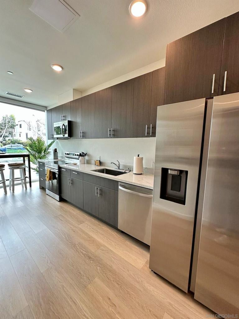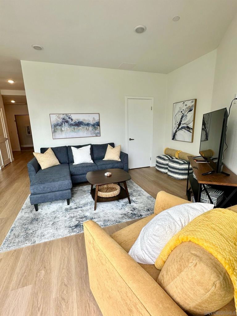 This spacious, airy and stylish urban loft has 9 foot ceilings, walk in closet, designer vinyl wood-plank flooring, contemporary cabinetry, quartz countertops, oversized stainless steel kitchen sink with disposal, GE stacked washer/dryer, state-of-the-art Samsung stainless steel kitchen appliances, ceiling fan, walk-in shower, air conditioning and heating, Google Fiber Webpass Internet & cable ready with an outdoor patio with glass doors to allow for lots of natural light. FULLY FURNISHED with new high quality furniture, new linens and kitchen utensils. 1 secured, assigned garage space + utilities & wifi included. Enjoy the modern, open-space lifestyle of Nimitz Crossings’ Urban Lofts in beautiful Point Loma/Ocean Beach. Embrace this walkable neighborhood located at the heart of the Voltaire Street Renaissance. Walking distance to grocery stores, shopping and restaurants. Just minutes from Ocean Beach, Barnes Tennis Center, Robb Field, Mission Bay, Liberty Station, MCRD, Harbor Island and SD International Airport.