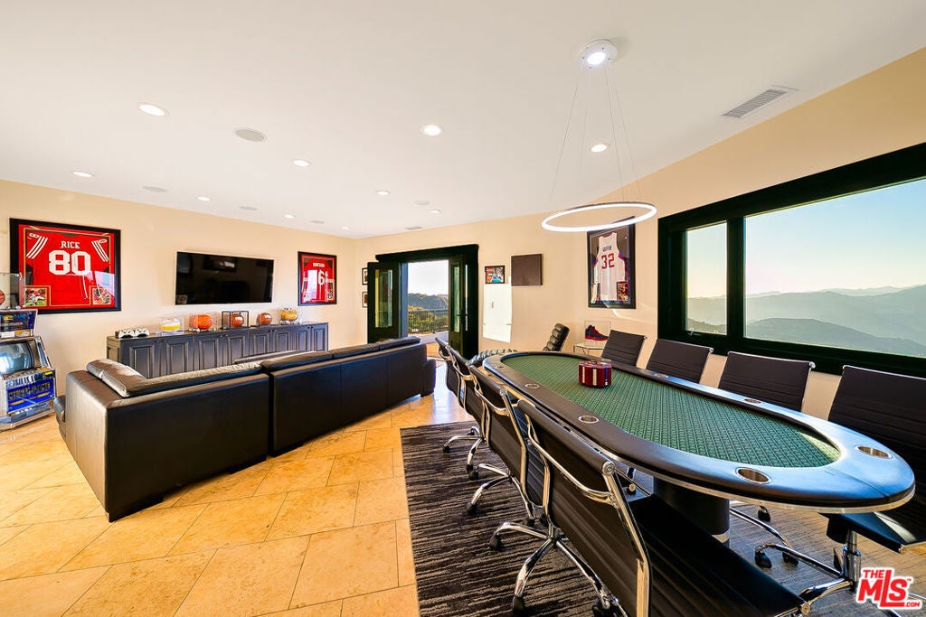 This tranquil and private Malibu Estate sits on 9 acres with expansive views of the hills and ocean beyond. Featuring 7 bedrooms & 6 bathrooms, this home offers a huge flat yard, outdoor kitchen, sunken spa and a putting green. Ideal for Entertainment with privacy and views. There are endless possibilities with plenty of parking and space inside and out for memorable gatherings. Other features include a grand foyer, travertine floors, a two-story ceiling in the Living and and Dining rooms, a huge game room complete with a bar and outdoor deck, a home office, and a guest wing with a separate entrance that works well as a maid's quarters or in-law suite. The kitchen features granite counters, breakfast bar and a breakfast area, and a pantry with an additional fridge & freezer, and built-in wine rack. The property offers hiking trails, roads for off-road vehicles, and avocado trees. PLEASE CALL FOR SHORT TERM RENTAL PRICING AND AVAILABILITY!