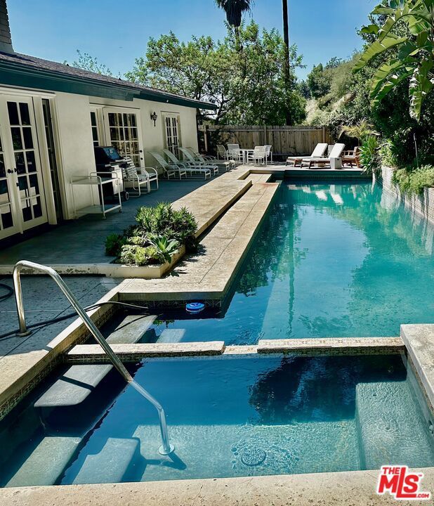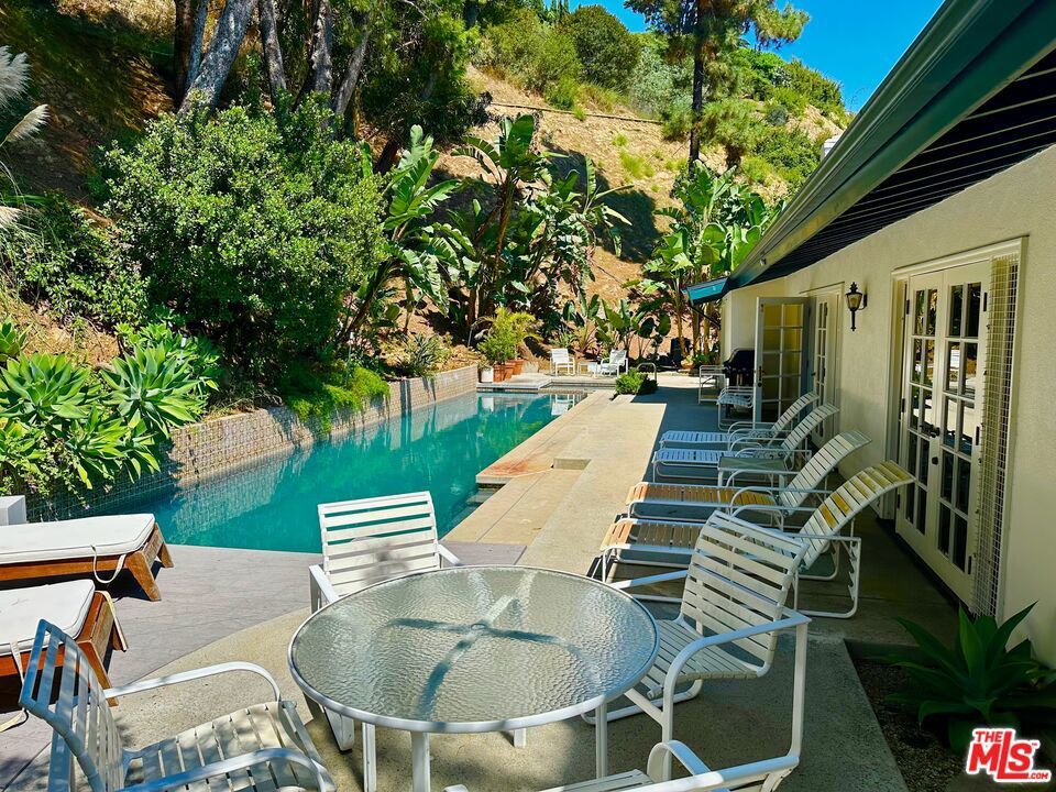 4 Bedrooms furnished with 6 Queen Beds. Available Short Term, Medium Term, Long Term. Weekly, Monthly, 1 Year etc. Fully Furnished. Summer by the lake anyone? Enjoy that feeling all year long here at this fantastic home 150 yards from Lake Hollywood! Resort living awaits you above it all in the Hollywood Hills, just below the Hollywood Sign and only a stones throw from the Lake and the 3.5-mile hiking circuit that surrounds it. Sited on almost 1/2 acre, the property features a sparkling, totally private pool & spa as well as an enormous attached office or studio space with vaulted wood ceiling and its own separate entrance, teasing all manner of ideas for creative use. The huge & sunny kitchen overlooks a tranquil meditation and herb garden and features, a breakfast bar, large eat-in area and new appliances. The primary bedroom opens through french doors directly out to the pool and includes an oversized walk-in closet. An en-suite bath with floor-to-ceiling windows looks out to a completely private garden area and features a double vanity and glass shower stall with handheld & rainfall shower heads. The living room and dining room feature wood flooring, share a dual-sided fireplace, and both open out to the lush pool area for maximum enjoyment of SoCal indoor-outdoor living. Fresh paint, brand new carpeting, central heat and A/C, washer/dryer. Away from it all, but with easy access to the Studios, Hollywood, the 101, the 134, and the 5 freeways.