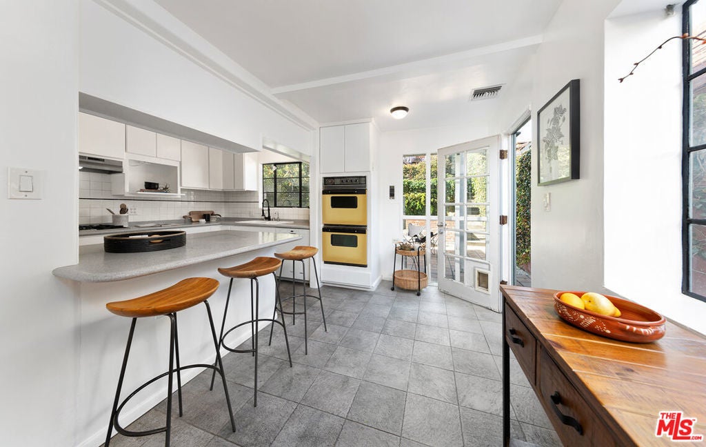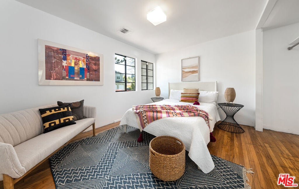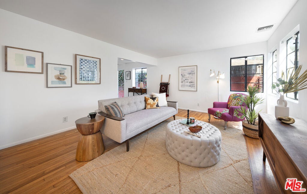 Discover the potential nestled within the vibrant and sought-after neighborhood. This 3BR/3BA home with studio ADU property (4BR/4BA total) offers a blend of architectural charm and endless possibilities for customization to fit your vision. The main level welcomes you with timeless hardwood floors and leads you into a two-story vaulted ceiling living room, highlighted by unique architectural details that make the space truly stand out. The gallery kitchen, seamlessly connected to both a cozy breakfast room and an elegant formal dining room, provides the perfect canvas for modern updates or classic restorations. A versatile downstairs bedroom, complete with a full bath, offers the flexibility to serve as a home office or guest suite. Ascend the architectural staircase to a second-floor mezzanine family room, a central hub that connects two additional bedrooms to a scenic rooftop deck. Convenience is key with an upstairs laundry room. The separate master suite is a private retreat, featuring a vast walk-in closet, a double vanity, and a luxurious tub/shower combination. Additionally, a separate 1+1 Guest House on the property offers opportunities for guest accommodation or rental income. Situated in the esteemed Clover Elementary school district, this property is not just a house, but a gateway to a vibrant community known for its quality of life and neighborhood charm. Please note, the property is being offered in AS-IS condition, presenting a unique opportunity for buyers to tailor the space to their exact preferences and specifications. Buyers are encouraged to perform their own inspections and evaluations to fully appreciate the potential of this property. This is more than just a property; it's a chance to make your mark on a coveted Los Angeles neighborhood and turn a house into your dream home or next successful project. See private remarks for all showing request.