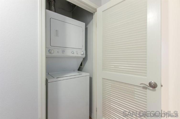 Welcome to this stylish 1-bedroom, 1-bathroom condo in the sought-after Park Terrace community, located in the heart of East Village. This UNFURNISHED 800 sqft home features high ceilings, luxury vinyl flooring, a modern kitchen with stainless steel appliances, in-unit washer/dryer, A/C, and a private balcony offering breathtaking water and Coronado Bridge views. Enjoy the convenience of 1 reserved parking space and community amenities such as a BBQ deck, fitness center, and recreational room. Perfectly situated within walking distance to Petco Park, Balboa Park, Seaport Village, Gaslamp Quarter, and Little Italy's Farmer's Market, this home places the best of downtown San Diego at your doorstep. With easy access to the train, trolley, airport, and beaches, this is urban living at its finest. Schedule your tour today and make this exceptional residence your new home! The owner pays for water, sewer, and trash, so the tenant is only responsible for SDGE, cable, and internet. Includes 1 gated parking space, pet-friendly with a $500 pet deposit and $25 pet rent. Welcome home to this impressive residence, in the highly sought-after community of Park Terrace, located in the prime East Village District. Enjoy peak water and Coronado bridge VIEWS. You will appreciate the light, bright & airy vibe throughout this spacious 1-story, high ceilings, 1 bed/1 bath, 800 sqft home with 1 parking, and a PRIVATE balcony. A full-size kitchen with stainless appliances provides the perfect space to whip up culinary delights and entertain guests. This home also features luxury vinyl flooring, a stackable washer/dryer in-unit, and A/C. Community amenities include a BBQ deck, spacious recreational room, and fitness center. Best location downtown, walking distance to everything: Petco & Balboa Parks, Seaport Village, Gaslamp Quarter, the wildly popular Little Italy Farmer's Market, Waterfront Park, fantastic dining, cafes, bars, boutiques, and entertainment. Close proximity to the train, trolley, airport, beaches & more. Don't miss the opportunity to call this residence home - schedule your tour today and experience the true magic of East Village living
