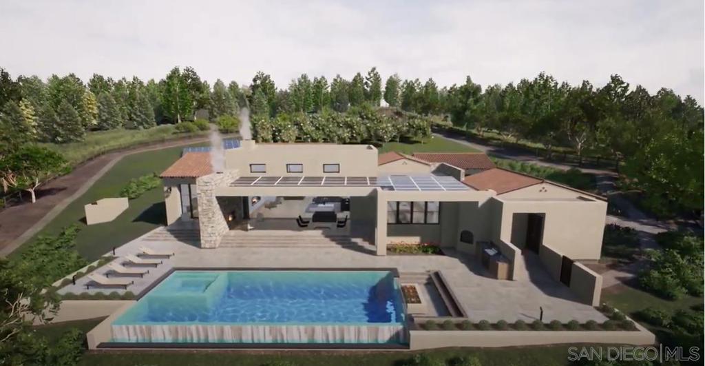 Create your dream estate on this incredible 2.85-acre lot with gorgeous panoramic/ocean views. Located on the west side of the Covenant at the end of a quiet cul-de-sac offering privacy and tranquility. Enjoy the gentle ocean breezes and backcountry views. Exceptional location with easy access in and out of Rancho Santa Fe and just minutes to the eclectic downtown areas of Encinitas, Solana Beach, and Del Mar. The most exciting opportunity in Rancho Santa Fe Covenant. The serene 2.85-acre view lot includes Rancho Santa Fe Art Jury approved plans designed by John Jensen, a high-end residential architect to construct a single-level modern estate. The stunning property will boast 6245 sq. ft. 5 bedrooms, an office, and 4 car garage, owned solar panels. The bespoke home will be contemporary but warm in style with modern influences, use of rock walls, creative angles, waterfall feature, and flat roofs. The design has an emphasis on natural elements such as living walls, a dramatic reflecting pool, and an abundance of pocketing glass doors which enhance the indoor-outdoor feel. The single-story home will comprise the most sought-after amenities. Roger Rowe school district. The price is for the land with plans. The construction of the home is not included. It is the buyer's obligation to verify and conduct any and all due diligence with respect to developing the property prior to full contingency removal. Rancho Santa Fe Association fee is $0.14 per $100 assessed value / $1,400 per $1 million assessed value, per year.