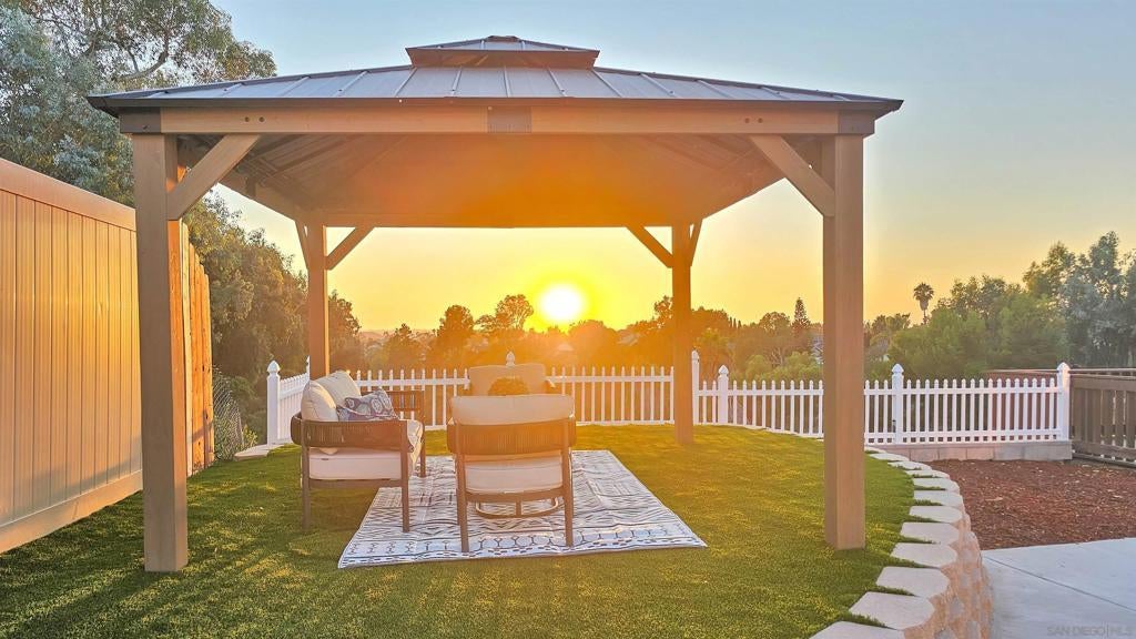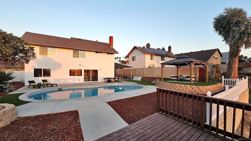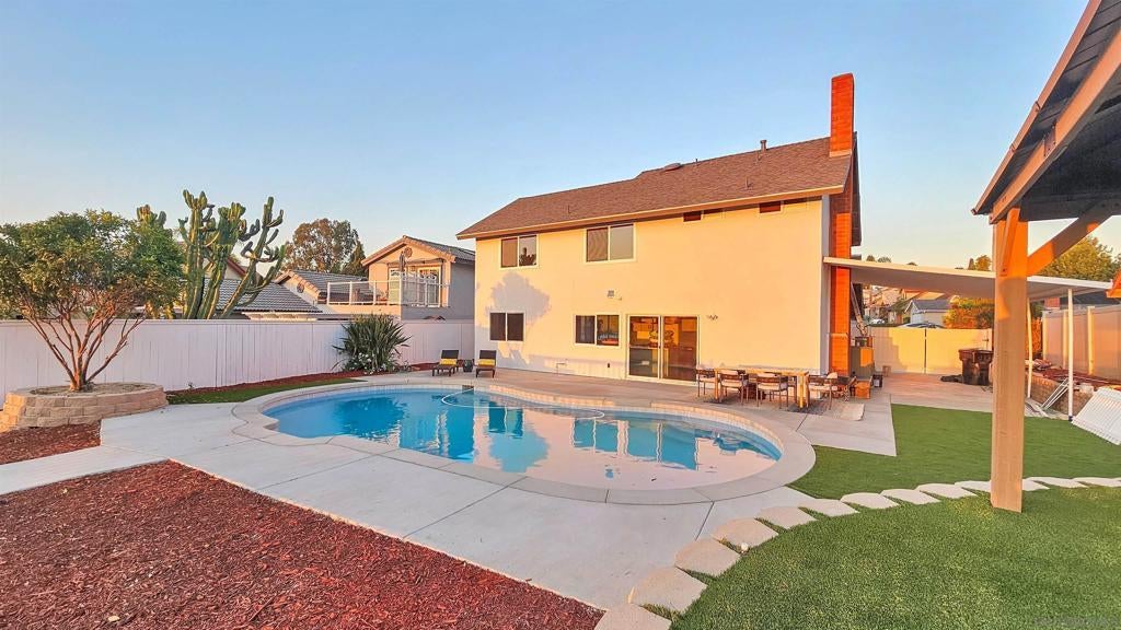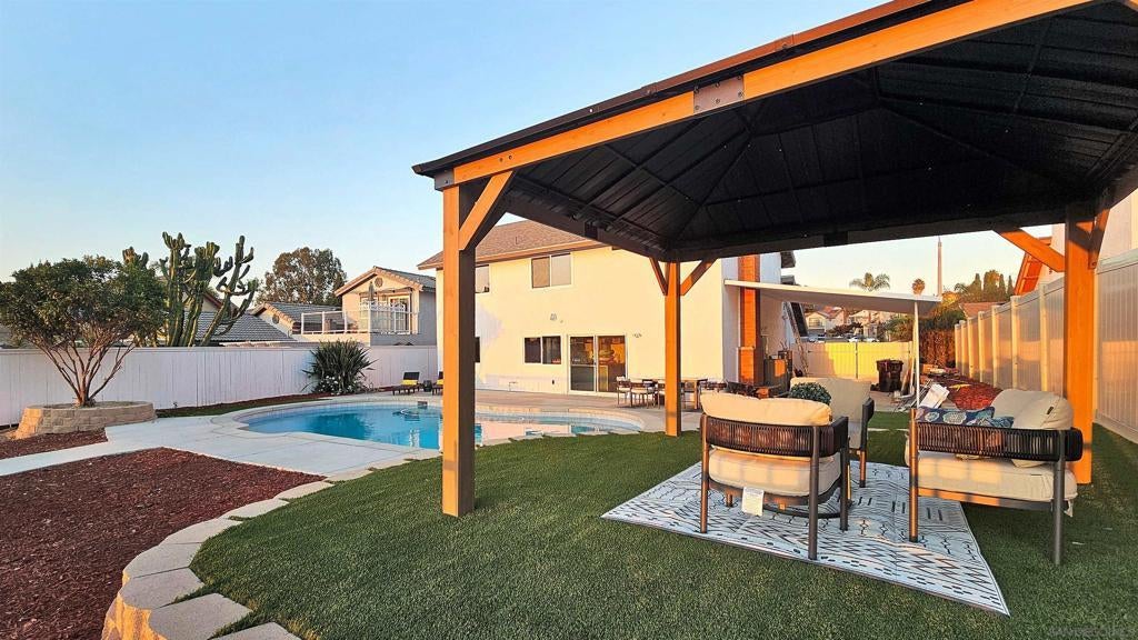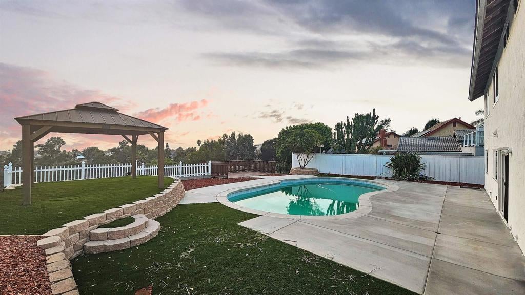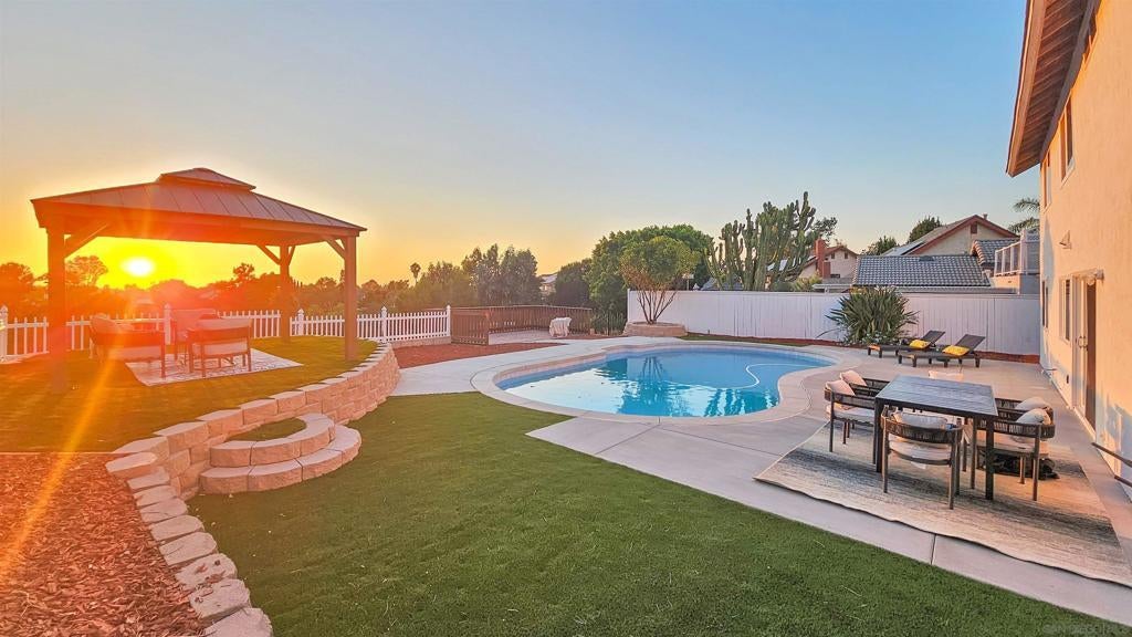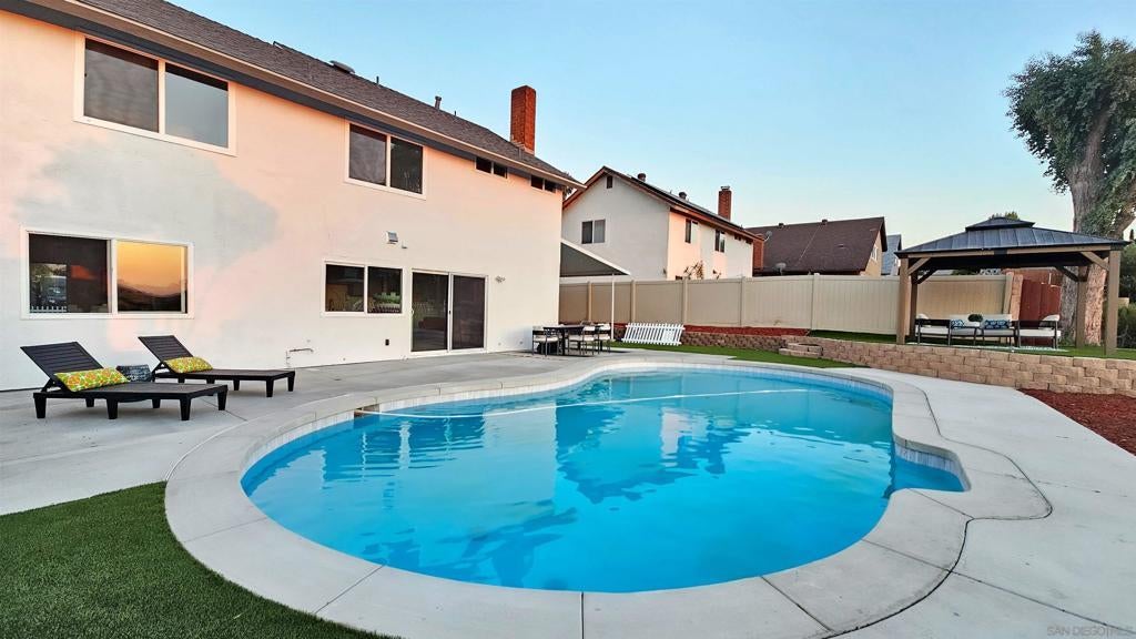 Ranch Penasquitos 4 bedroom 2.5 bathroom with stunning Canyon views! Open concept floor plan where the living/dining area & kitchen flow together under a vaulted ceiling and natural light to beam through every part of the house. Enjoy evening sunset view by the fireplace in your family room while the cool breeze comes through from the back patio. Primary bedroom includes a large balcony. The backyard is an entertainers delight that features a pool , gazebo, deck, the privacy of the canyon, and a large patio to put a BBQ and outdoor furniture. Completely upgraded home with new painting, flooring, kitchen and bathroom. Huge lot 0.26 acres with a potential for ADU or RV Parking. Spacious front yard with artificial turf for kids to play. Close by Twin Trails neighborhood park, hiking trails, restaurants, markets, and more!