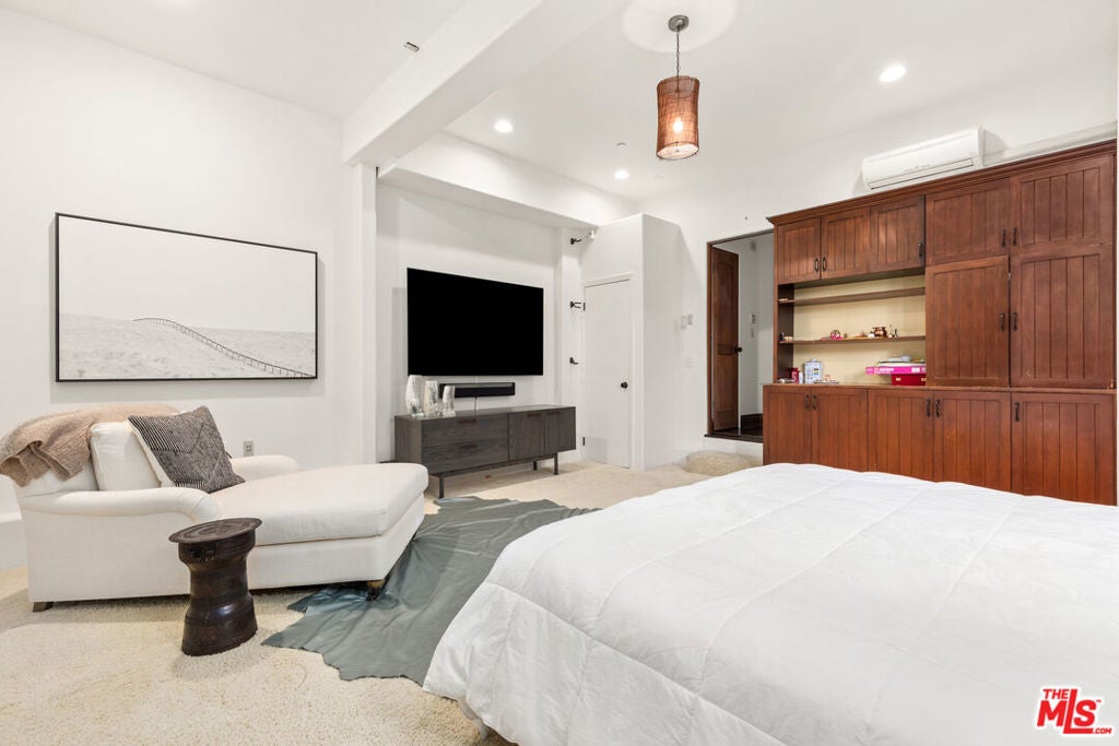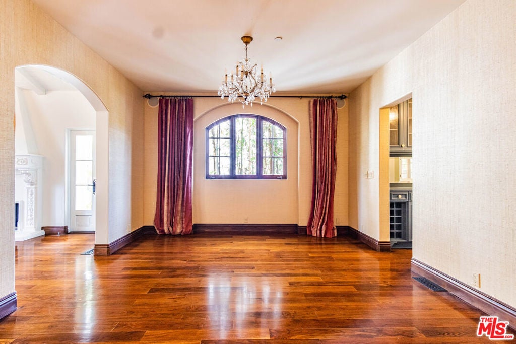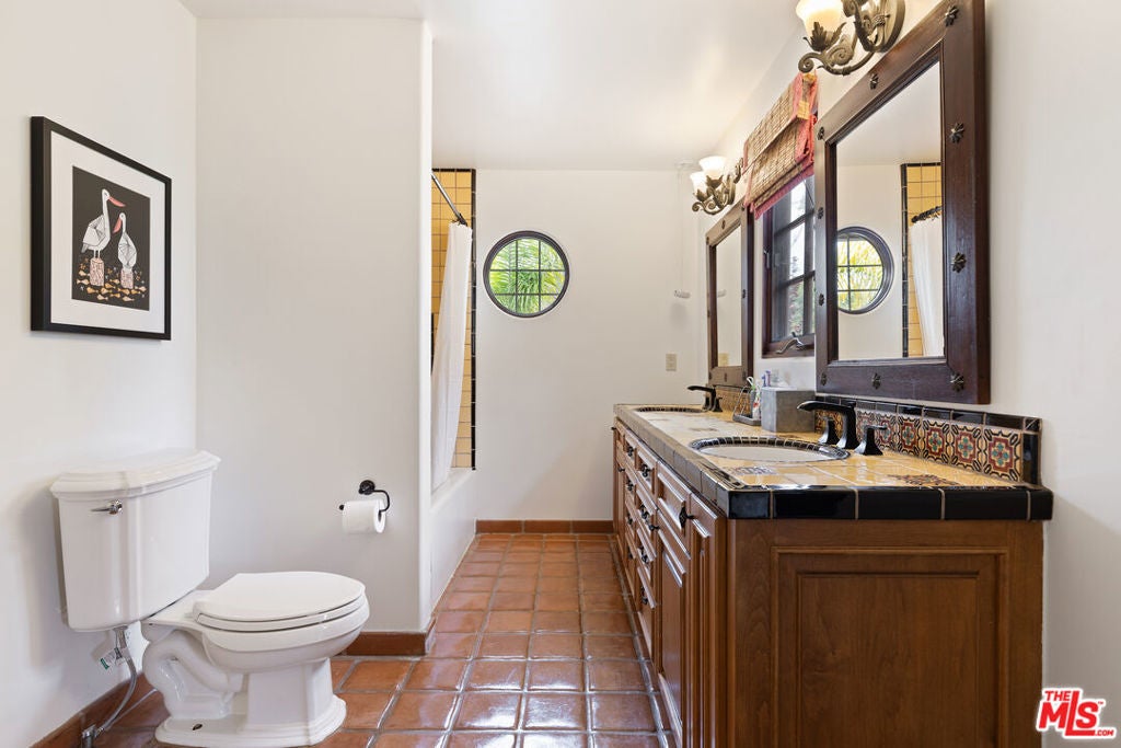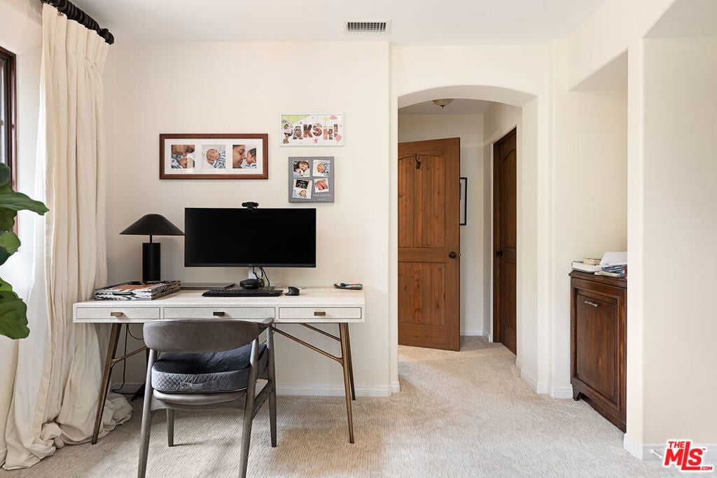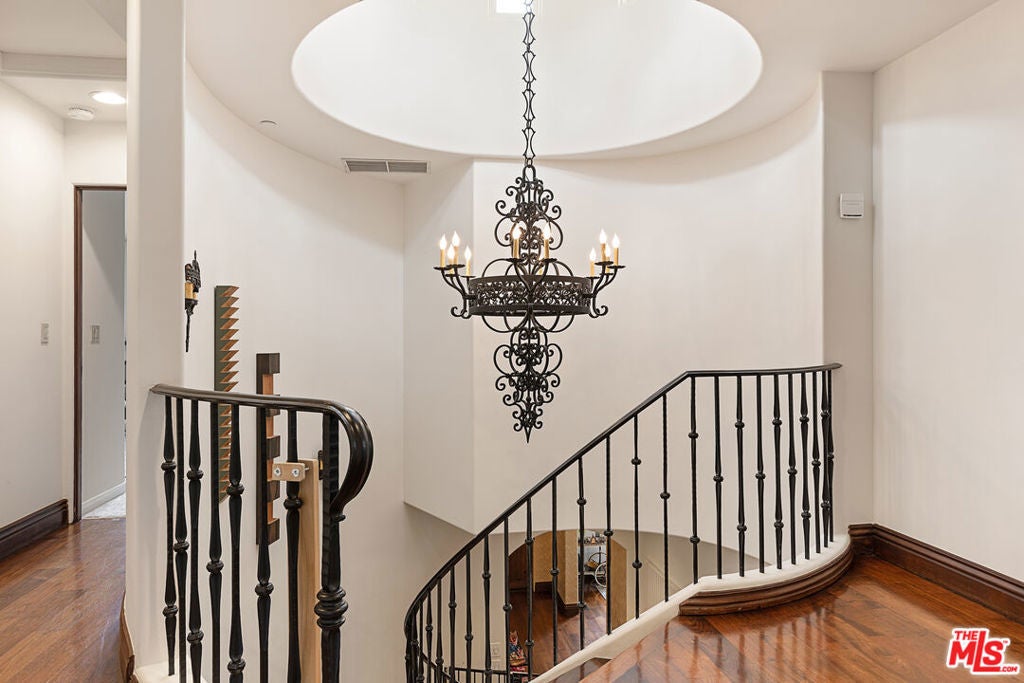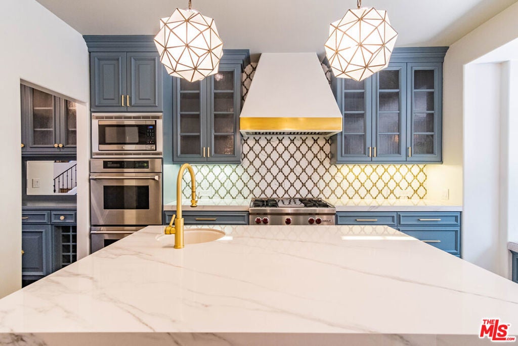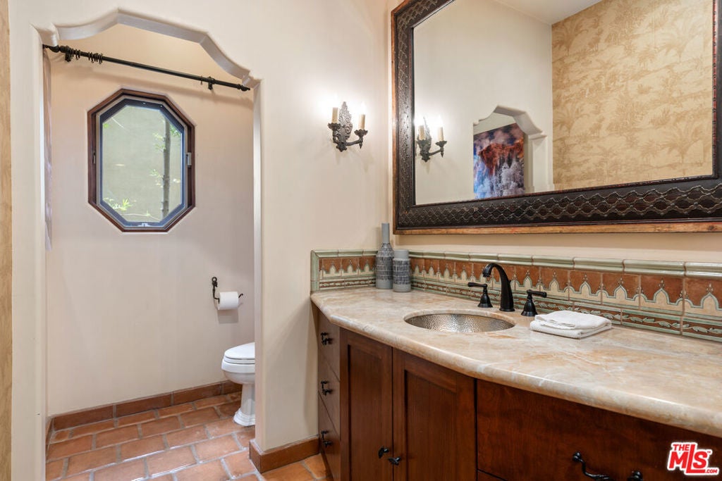 Located in the heart of Pacific Palisades, this chic custom designed Spanish-style luxury home awaits you. This spacious 4 bedroom (3 bedrooms upstairs, 1 downstairs) 3 bathroom abode offers you a spacious and remodeled open kitchen with top of the line appliances and a custom built-in breakfast nook. The Spanish modernized design includes beamed ceilings, leaded stained glass window, cast stone fireplace, forged iron work, and sophisticated lighting fixtures throughout. Off the kitchen which is adjoining to the living room, is the resort like backyard which offers an extraordinary entertaining space. The pool wraps around the outdoor casita, which is complete with a fireplace, TV and outdoor dining/lounge area. There is an outdoor kitchen with Wolf BBQ and authentic Italian pizza oven, seating area, and fire pit. The two car garage has been converted into an additional room/ den or play area. Close proximity to the Caruso Village, designer shops, high-end dining and luxurious amenities that Caruso Village has to offer.