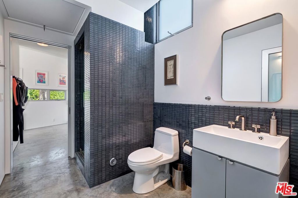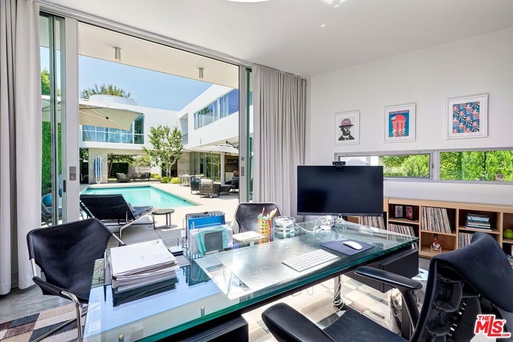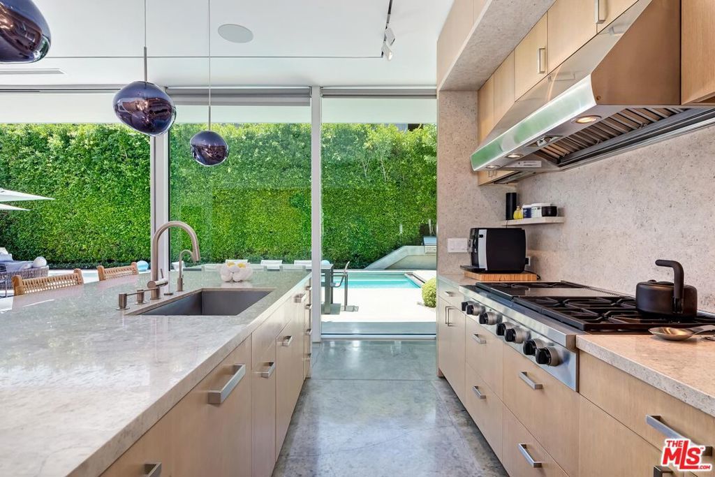 Designed meticulously by Dennis Gibbens Architects, this stunning masterpiece epitomizes California indoor/outdoor living while sparing no detail in luxury and modern amenities. Through the secure front gate is a beautiful and spacious grassy yard, a covered patio with built-in heaters and a sparkling pool & spa.The main level has floor to ceiling glass windows, radiant heated floors and stacking sliding doors seamlessly connecting the indoor area with the outdoor living and dining patios. Designed for ultimate entertaining, the formal living and dining rooms boast double height ceilings and a beautiful curved staircase. An open functional kitchen with premium appliances, a convenient butlers pantry and a striking limestone island flows into the breakfast and family room complete with custom built-ins for high-designed thoughtful storage. A second staircase leads up to three large bedroom suites and a laundry room. The stunning primary suite with a private hallway lined with custom cabinets and skylights opens to the tranquil bedroom with walls of glass and a striking ceiling feature. A beautiful marble bathroom and a large walk in closet completes this luxurious retreat. An upstairs gallery with a glass enclosed office leads to a chic media room complete with beverage center and powder room. The detached pool house is fully equipped with a kitchenette and beautiful bathroom with walk-in shower giving your guests full seclusion. Notable extras include a two car large garage with an electric car charger, solar panels and electrical and AV closets. Live the best Venice lifestyle with easy access to Abbot Kinney, shopping, dining and the beach.