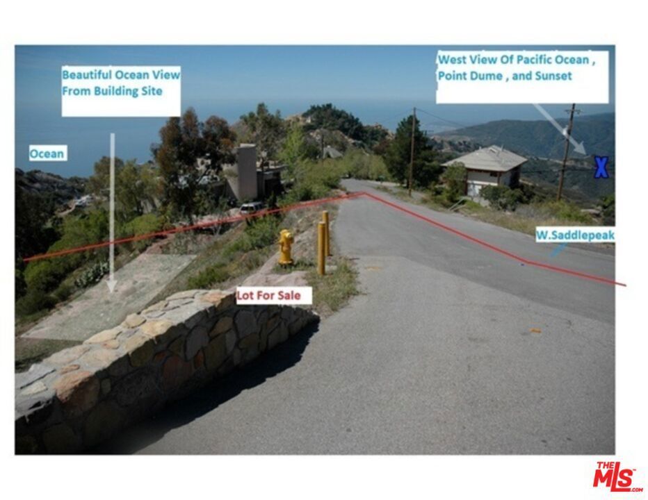 Best Ocean View Lot priced under $500,000 In Malibu! Over 1 Acre Ocean View in the desirable Gated Community Of West Saddlepeak. All the homes in this area sell in the $2m to $4m plus range. Coastal Approved 4000 sq.ft. two story Home design (see renderings in photos section) with positive soils and percolation tests, City Water and all utilities fronting property. Amazing lot with unobstructed Ocean and mountain views! One of the very few lots on the market with City Water and Fire Hydrant on property that meets Fire Department requirements to build. Tremendous Opportunity!