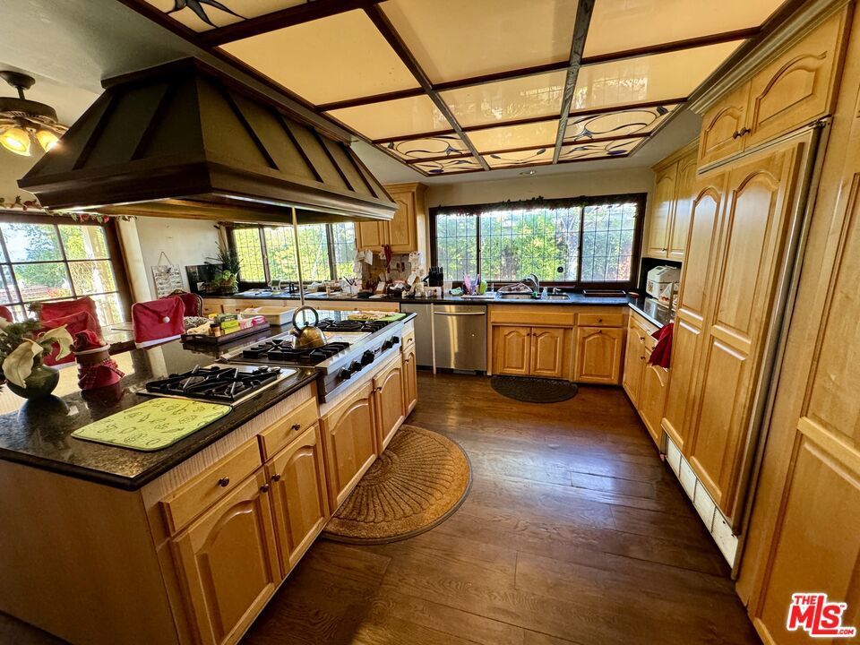 HUGE Price Adjustment on an Incredible cosmetic fixer opportunity on HUGE lot. Nestled within the vibrant neighborhood of Encino, stands a remarkable 6-bedroom 5 1/2 bath house, with so much potential to make the perfect family home. This spacious abode seamlessly blends modern elegance with the warmth of home, offering a haven for those who seek comfort and style and some of the best views in the Valley.Stepping inside, you're welcomed into a vast foyer adorned with a landscaped sitting area. The open floor plan seamlessly connects the living spaces, creating an ideal environment for both intimate gatherings and grand entertaining.The heart of the home is undoubtedly what could be a gourmet kitchen, with a spacious island, stone countertops and a breakfast area. Whether you're a culinary enthusiast or simply enjoy the art of cooking, this kitchen has the layout to offer everything you need to create culinary delights for you and your family.Adjacent to the kitchen lies the inviting family room, with wood flooring, featuring a cozy wood burning fireplace creating a warm and inviting ambiance. Opposite the living room is the spacious family room, also with a wood burning fireplacea perfect spot to unwind after a long day, whether you're curling up with a book or enjoying quality time with loved ones.For more formal occasions, the elegant dining room provides a sophisticated setting for hosting dinner parties or holiday gatherings. With its stylish decor and ample seating, it's sure to impress even the most discerning guests.The bedrooms in this house are spacious retreats, each offering plush carpeting, ample closet space, and large windows and on suite baths. The master suite is a true sanctuary, boasting a luxurious en-suite bathroom complete with a soaking tub, walk-in shower, and dual vanity all just waiting to get updated. Outside, the expansive backyard is a private oasis, featuring a swimming pool and multiple seating areas surrounded by lush greenery and the most amazing views. Whether you're lounging poolside on a sunny day or hosting a barbecue with friends, this outdoor space provides endless opportunities for relaxation and recreation.Maids quarters off the 3 car garage and a large circular driveway that can accommodate a limo or 5 more cars.Located in the San Fernando Valley, Encino boasts a plethora of upscale shopping destinations, gourmet restaurants, and cultural attractions, ensuring there's always something new to explore.This 6-bedroom house offers and incredible opportunity for an end user to put the finishing touches on their own dream home or an investor.