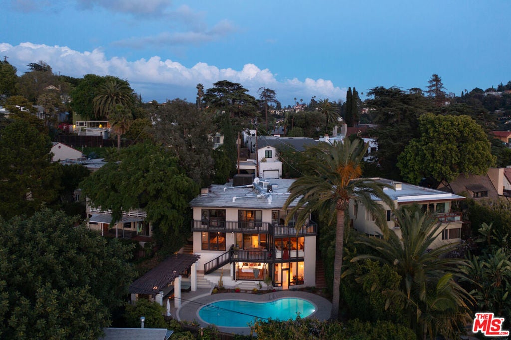 Ascend to the heights of Franklin Hills and discover a mid-century treasure that's as cool as it is polished. In a neighborhood where the views compete with the stars for your attention, this Los Feliz delight delivers daily sunset spectacles and nightly twinkle-light waltzes from every room. The heart of this home pulses with sunlight in a great room designed for laughter-filled soirees or cozy nights in. Complete with a wet bar, built-in's and floor to ceiling windows, a kids' playroom or private escape, it's a canvas for life's most memorable moments. Yoga on the balcony with the sunrise to start your day and unwind watching the exuberant sunsets at dusk. In the backyard, find your personal slice of paradise with a pool that's got curves in all the right places, hugged by greenery that asks little but gives a lot. The pergola's shade is your stage for daytime lounging or night-time hangs. A versatile poolside bonus space offers endless summer vibes, room for visitors and and/or an inspiring place to work. The primary suite is a love letter to self-care, complete with a romantic fireplace and views that make even the most eloquent poets silent. The bathroom is less of a room and more of an experience, designed to lavish you in luxury and let the views and firelight in, while you soak in the extra deep tub. This Los Feliz wonder offers the classic L.A. lifestyle, right where the soul of Silver Lake brushes up against bustling Los Feliz Village. It's the ultimate Eastside retreat that's more than a sight to behold, it's a lifestyle to be lived. Photos are beautiful but STILL can't do this home justice. It's a vibe and the views have to be seen to be believed.