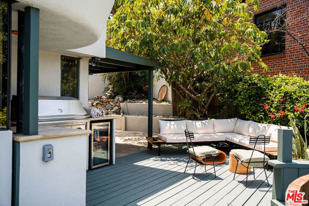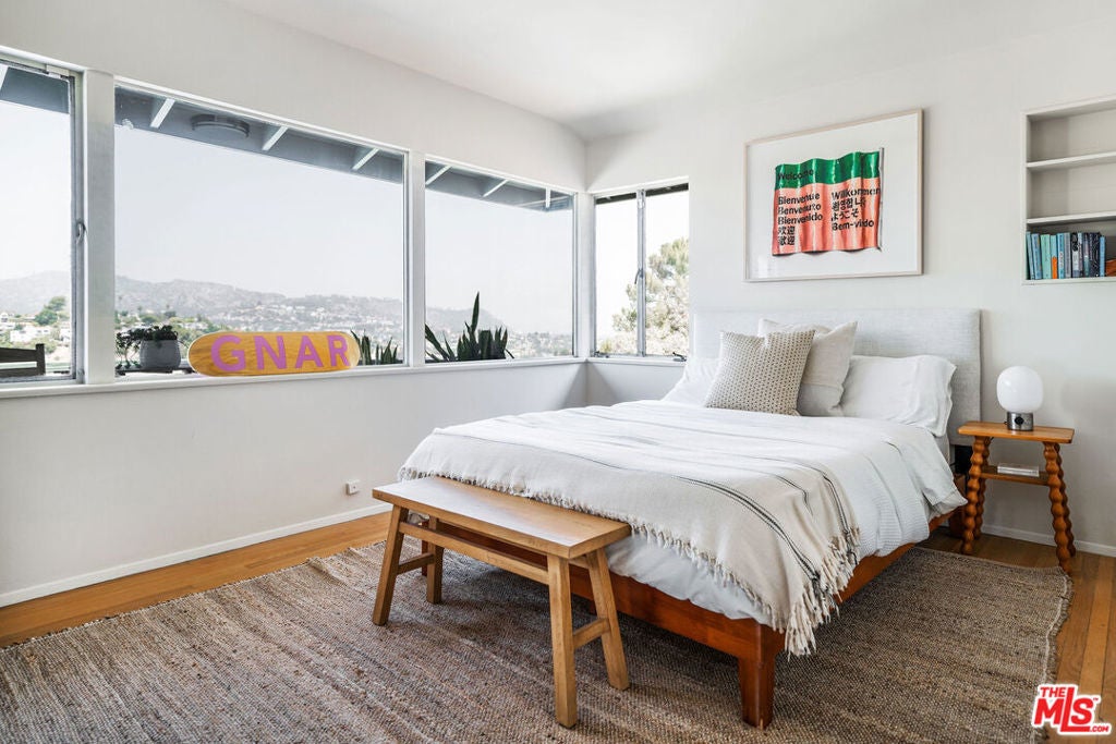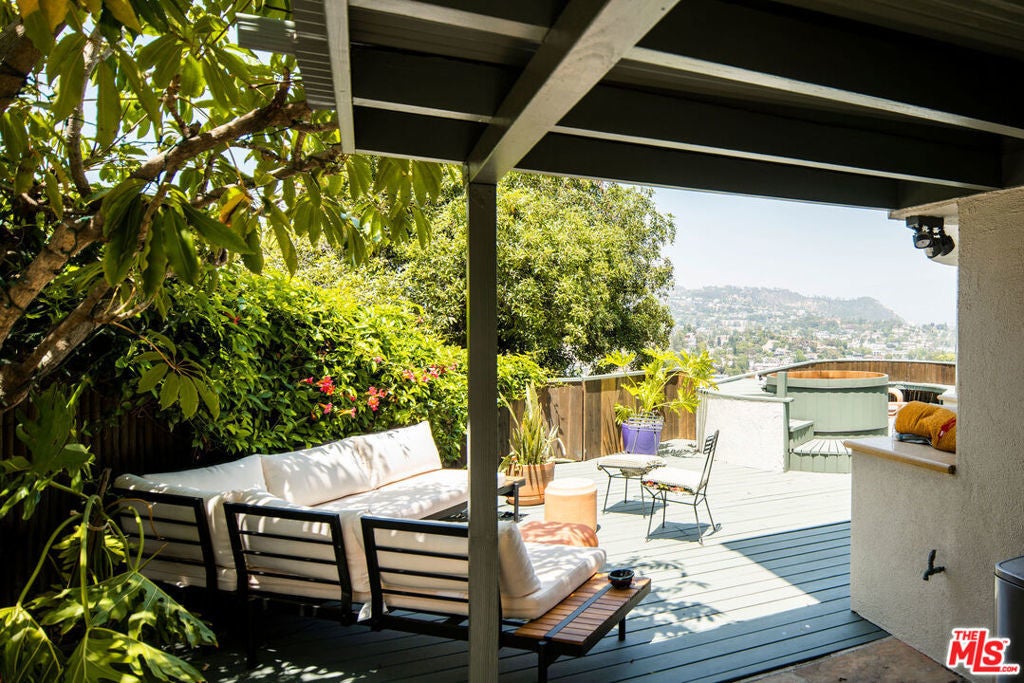 SHORT-TERM, FURNISHED, LEASE. July 1- Sept 30th. Silver Lake modern built in 1950 by Fredrick Monhoff. On a quiet stretch of Micheltorena Street behind a privacy wall is this comfortable and stylish mid-century home. This home embodies all that makes this coveted neighborhood so special. The light-filled living room connects seamlessly with a dining area and large kitchen, all with incredible west-facing views that include city lights and sunsets. A cozy den with custom cabinetry rounds out the main level. Upstairs there are two more bedrooms, including a spacious primary, both are ensuite with ample closet space. This home offers plenty of room to entertain friends and enjoy a true California indoor/outdoor lifestyle. A wrap-around deck with bench seating, built-in BBQ, and cedar spa overlooks a terraced yard with lush and mature landscaping giving a great feeling of privacy and peacefulness. Gated from the street with a large driveway for off-street parking and a two-car garage with generous storage space. Located in the heart of Silver Lake close to everything including Sunset Junction shops and restaurants as well as the Silver Lake Reservoir and meadow.