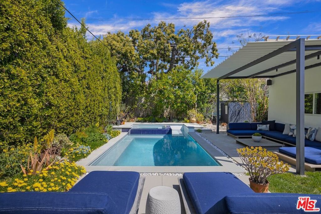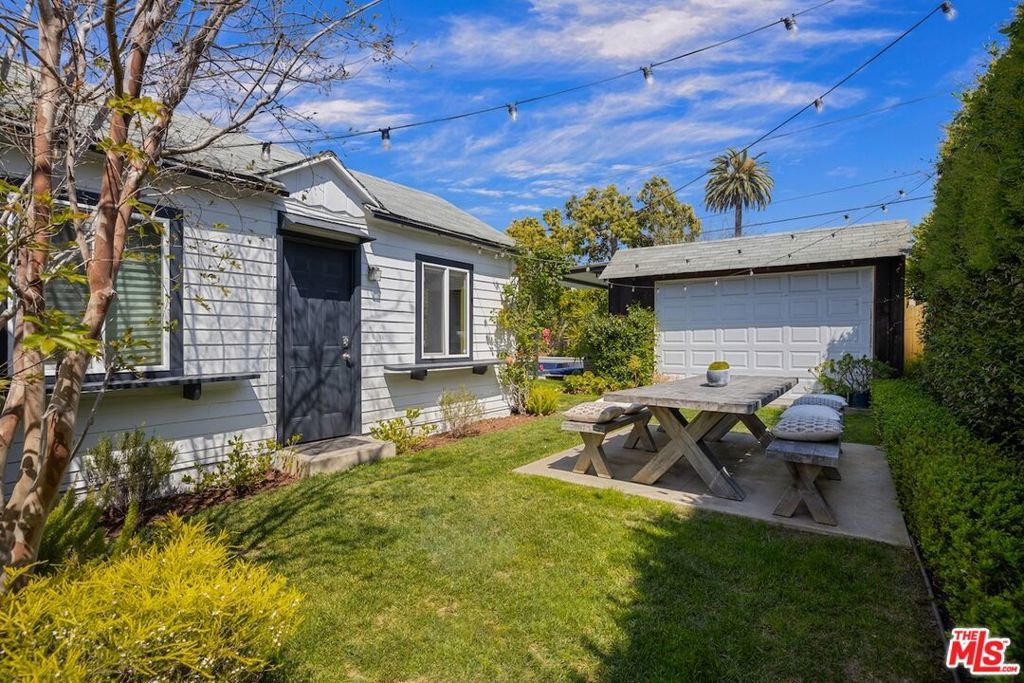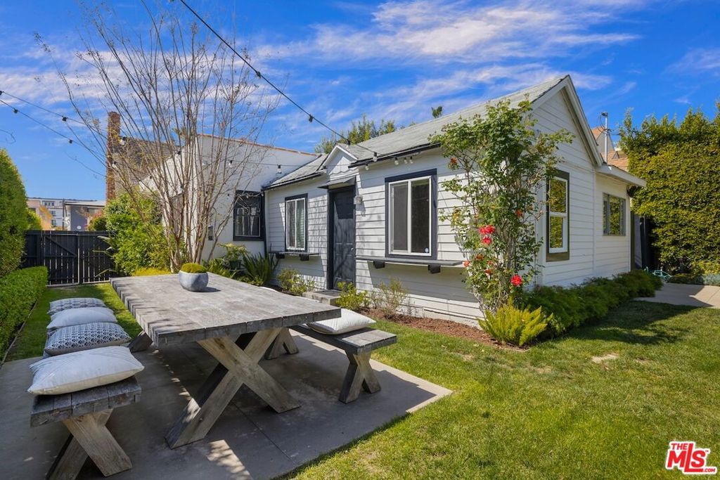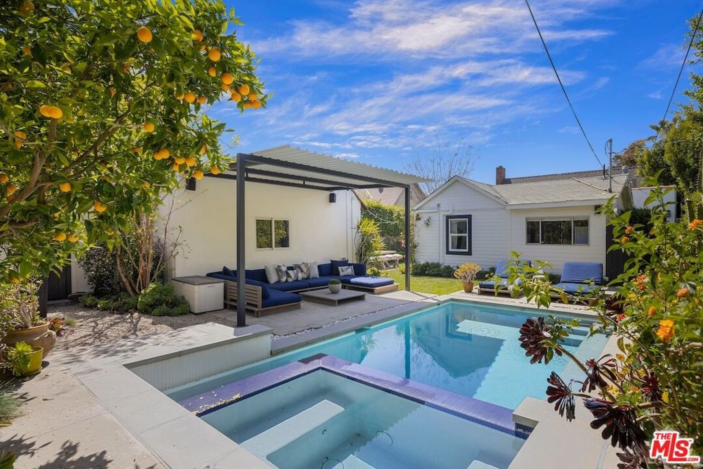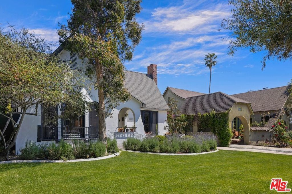 This chic and private, light-filled Country English home is situated on a quiet, tree-lined street in the sought-after Wilshire Vista. In nearly 1,900 total square feet, this thoughtfully updated three-bedroom, three-bathroom residence accommodates the modern Angeleno lifestyle without abandoning its original architectural details. The main house features generously-sized bedrooms and two remodeled bathrooms. Additionally, a formal dining room with floor-to-ceiling windows connects the living room with an 18-foot vaulted ceiling, to a remodeled kitchen with ample storage and newer stainless appliances. Accessible by separate entry, the guest house is fully equipped with three-quarter bathroom, separate kitchen, and laundry hook-ups. The two-car garage with connected storage shed, has been finished with a newer roof. Outdoor spaces include: A recently installed pool and spa, outdoor lounge and dining areas, and a flat grassy front yard. Charmingly complete with mature landscaping, lemon, tangerine, and blood orange trees.
