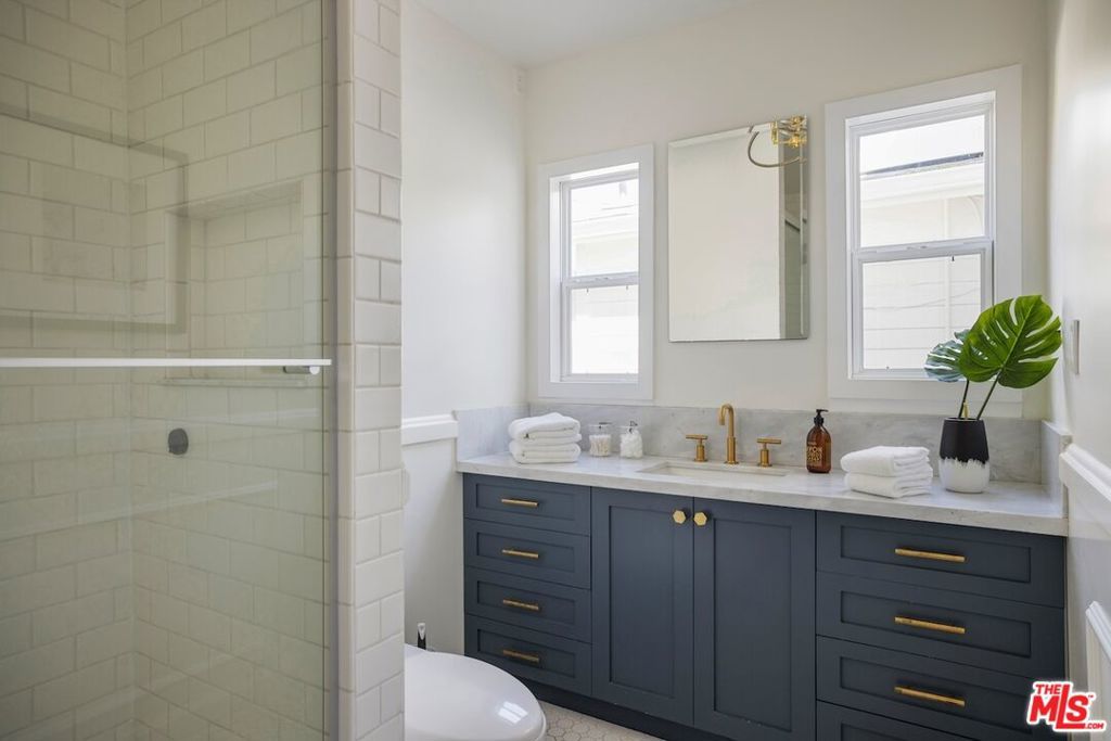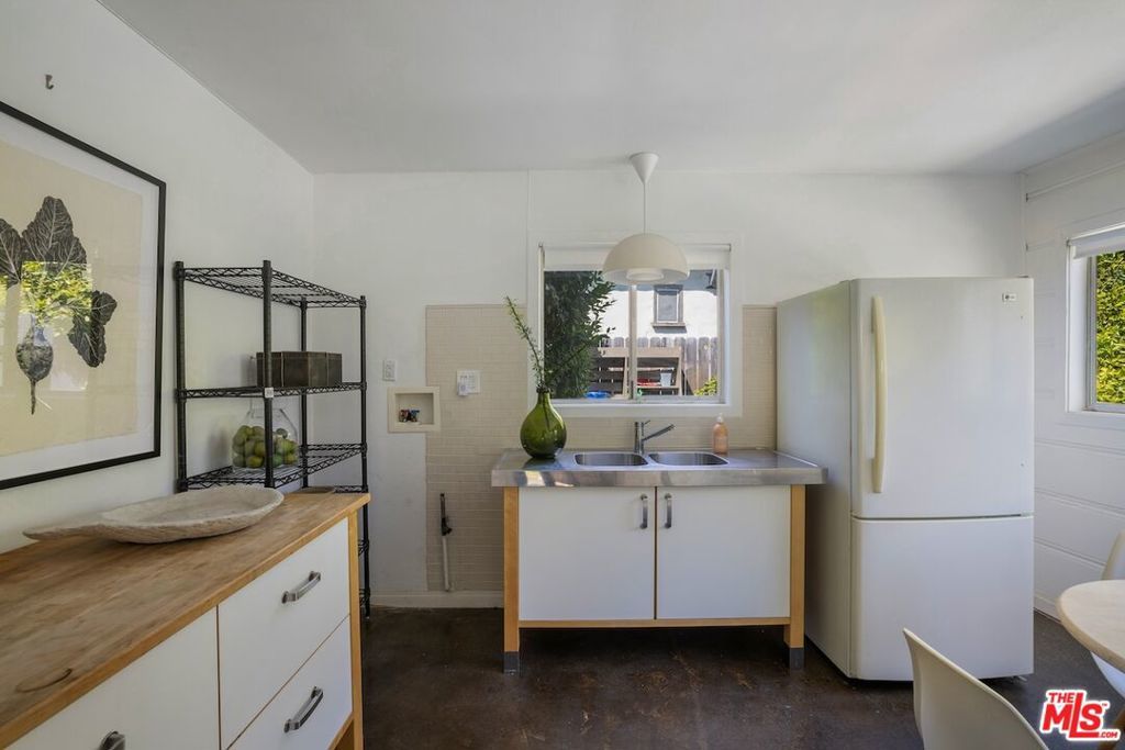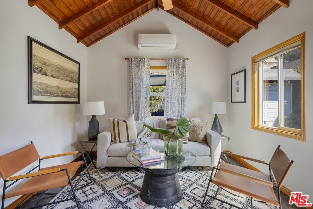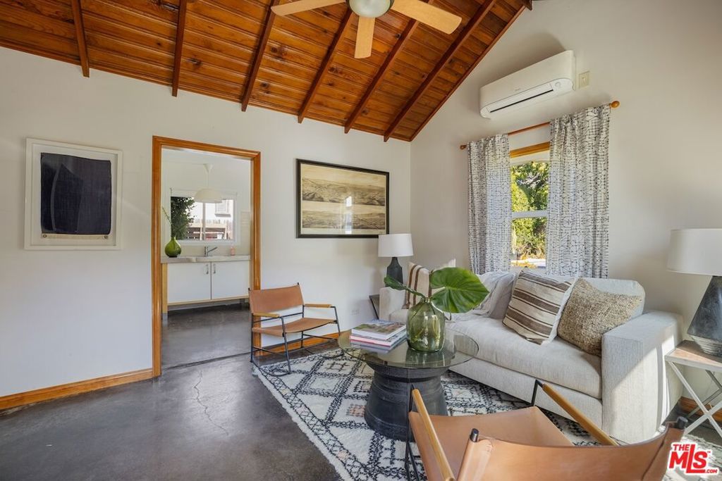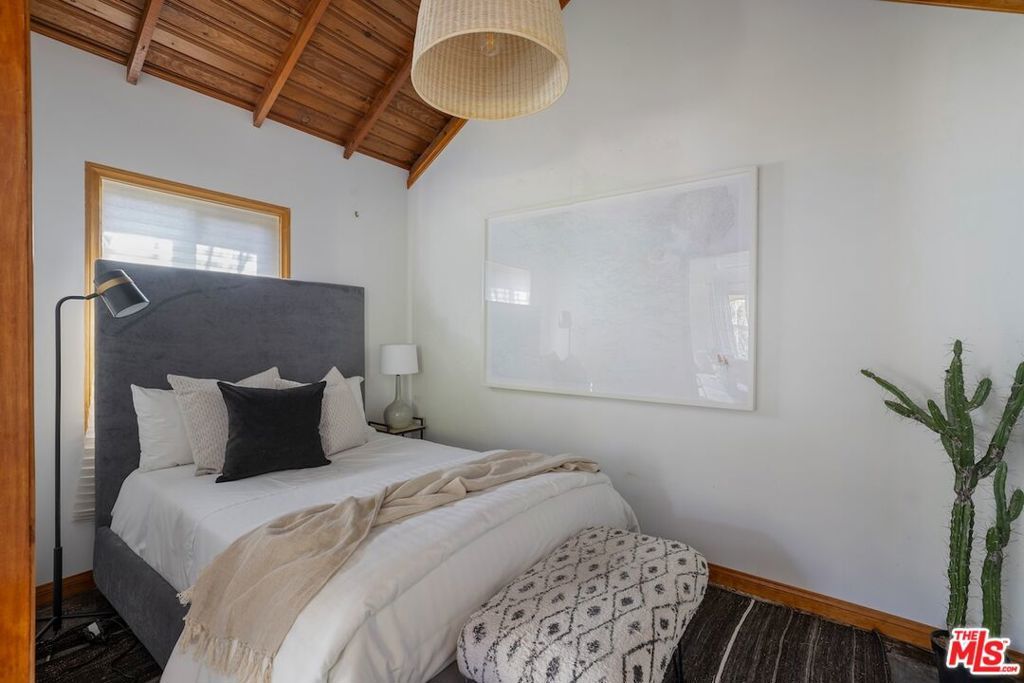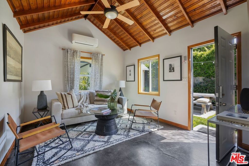This chic and private, light-filled Country English home is situated on a quiet, tree-lined street in the sought-after Wilshire Vista. In nearly 1,900 total square feet, this thoughtfully updated three-bedroom, three-bathroom residence accommodates the modern Angeleno lifestyle without abandoning its original architectural details. The main house features generously-sized bedrooms and two remodeled bathrooms. Additionally, a formal dining room with floor-to-ceiling windows connects the living room with an 18-foot vaulted ceiling, to a remodeled kitchen with ample storage and newer stainless appliances. Accessible by separate entry, the guest house is fully equipped with three-quarter bathroom, separate kitchen, and laundry hook-ups. The two-car garage with connected storage shed, has been finished with a newer roof. Outdoor spaces include: A recently installed pool and spa, outdoor lounge and dining areas, and a flat grassy front yard. Charmingly complete with mature landscaping, lemon, tangerine, and blood orange trees.