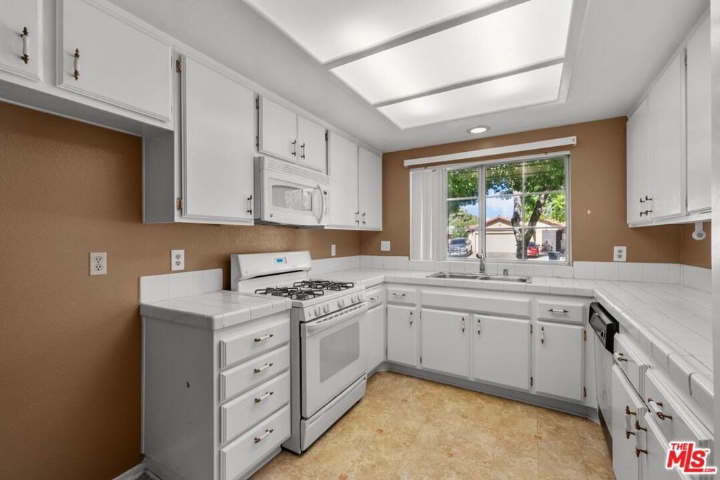 This captivating residence located in Lancaster presents an enticing opportunity, offering 3 bedrooms, 2 bathrooms, and a generous 1,338 SqFt of living space, topped by a newly installed roof as of April 2023. As you enter, you're welcomed by a spacious family room adorned with a cozy fireplace and ceiling fans for added comfort. The kitchen, designed for both style and functionality, boasts ample space with white tile counters and a suite of appliances including a gas oven and stove, dishwasher, and microwave, complemented by abundant storage options. Adjacent is a convenient laundry room equipped with hookups for a washer and gas dryer, along with cabinet space for added organization. The hall bathroom features full amenities, including a detachable showerhead in the tub. Each room exudes comfort with good lighting and ample closet space, ensuring functionality meets aesthetics. The primary bedroom stands out with its generous size, offering access to the backyard, its own bathroom, and a spacious walk-in closet. Outside, the backyard is a picturesque oasis, beautifully landscaped and featuring a patio nestled under a charming pergola, perfect for enjoying outdoor gatherings or peaceful moments of relaxation.
