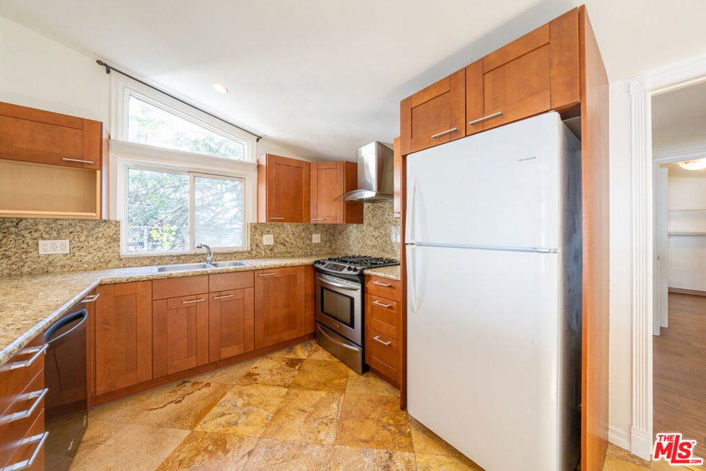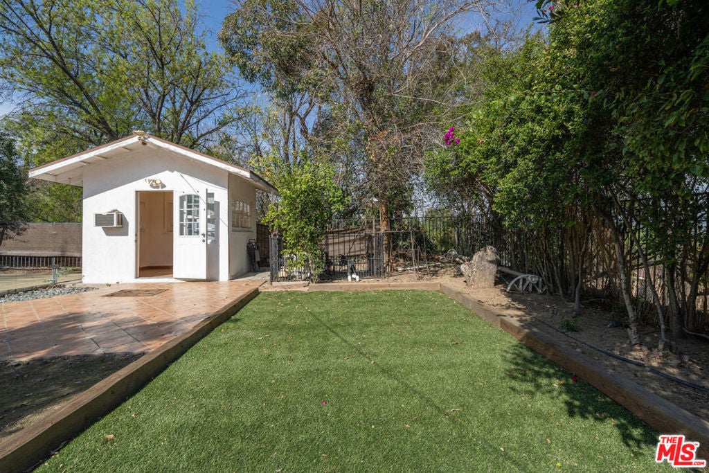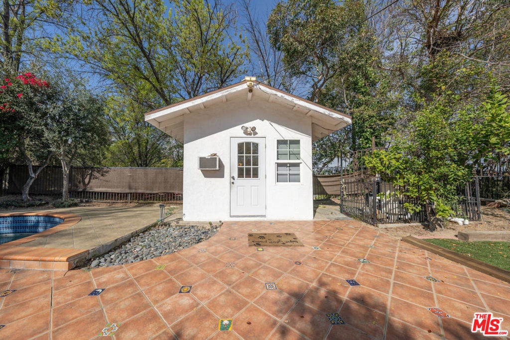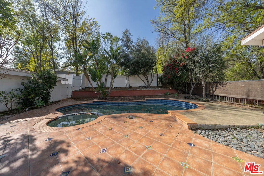 Short/Mid term (3-6 mon.) lease available! This beautiful single story pool home is nestled in one of the desired areas of Woodland Hills. Only a mile away from Kaiser, less than a mile away from Taft High school. It has 3 bedrooms and 3 bathrooms. The floor plan flows from the kitchen, dining area and living room to the backyard where the pool and spa, grass area, and the detached entertainment room is located. The master bedroom is separated from the other two bedrooms. The laundry area, located right by the side alley is equipped with stackable washer & dryer, sink, shelvings and storage space. The house is on central AC & heat. From the front yard, you can enjoy a peek-a-boo view of the valley. The driveway provide ample parking space. Pool maintenance and gardening is included. Refrigerator in the photo is excluded from the lease.