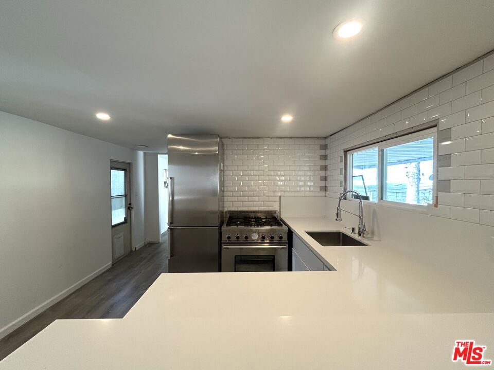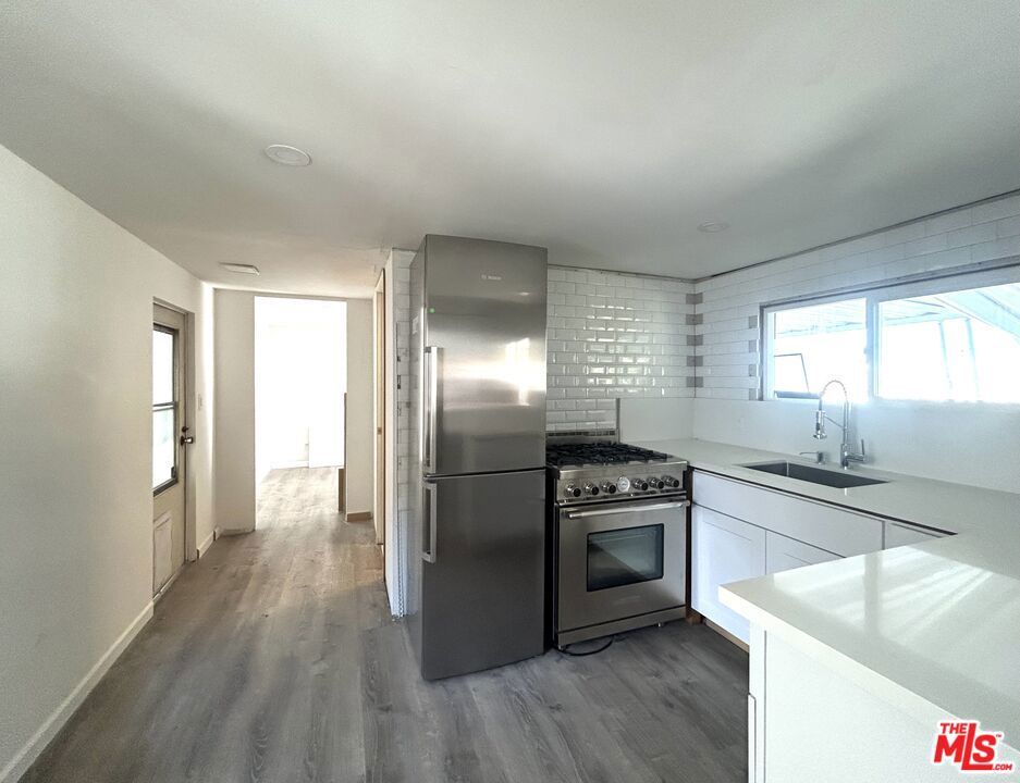 An affordable location across from the beach in the highly sought-after Pacific Palisades ! This charming one-bedroom, one-bathroom home is in a peaceful manufactured beachside community. With a 1,400 square foot lot, this property offers endless potential. The home's exterior is a blank canvas awaiting your personal touch, allowing you to choose siding, trim, and paint colors that will truly enhance its curb appeal. Inside, the open floor plan is flooded with natural light, creating a bright and airy space that's perfect for relaxing or entertaining. Partial drywall has already been installed, and electrical upgrades have been made, giving you a head start on transforming this space into your dream home. The living area boasts elegant custom ceiling tiles that reflect the recessed lighting, complemented by a striking wood panel accent wall. Newly installed hardwood laminate flooring adds warmth and style throughout the home. The renovated kitchen is a chef's delight, featuring custom cabinetry, a quartz countertop breakfast bar, ceramic glazed tile backsplash, and brand new high-end stainless steel appliances, including a Bosch Benchmark refrigerator, Tecnogas Superiore oven range, and a Kraus professional-grade faucet. The remodeled bathroom offers a spa-like experience with a Vigo Ellington Thermostatic Shower Panel and Kraus faucet, set against beautiful Okoboji tile flooring. Additional modern features include a new tankless water heater for energy efficiency and partial ocean views from the bedroom. One of the standout features of this property is the option to install a two-story home or custom build a sundeck, allowing you to enjoy stunning unobstructed beach views and mesmerizing sunsets. The covered carport provides space for two vehicles, and the community offers direct access to the beach via a safe crosswalk, making it perfect for swimming and surfing. This rent-controlled community includes fantastic amenities, such as a heated swimming pool and hot tub. It's also conveniently located near top-rated schools, scenic hiking trails, a bike path, and a variety of local shops and restaurants. Don't miss your chance to own a unique property in this prime location!