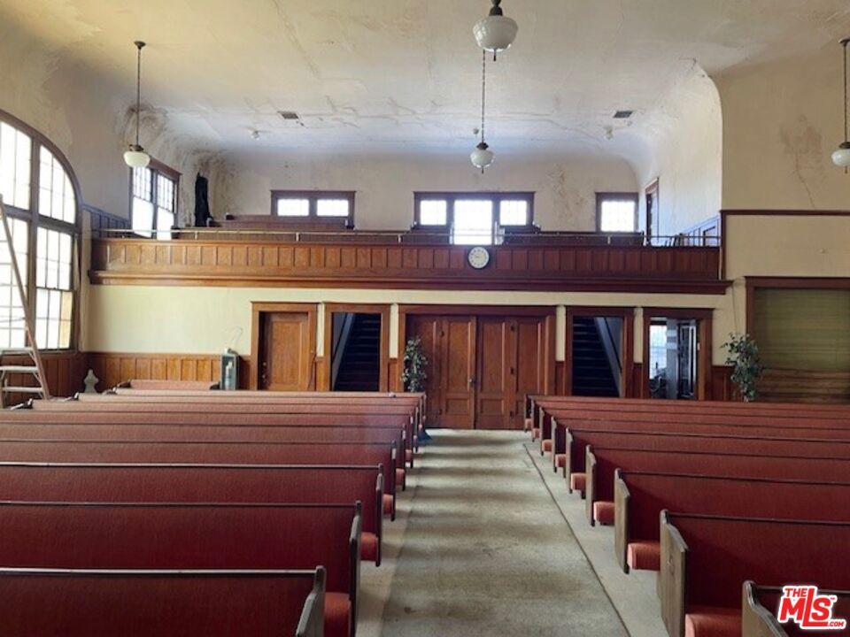 This stunning Neoclassical church, built in 1937 and designed by architect I. Gilford for the Progressive Society for Spiritual Truth Seekers, showcases exceptional design quality with a flat facade typical of its era. The sanctuary features pews, a choir loft, and an altar platform, complemented by a choir room and office. Behind the sanctuary, a private parsonage provides additional living space. The expansive basement includes a kitchen, two bathrooms, and a large fellowship hall, making it ideal for gatherings. Although listed on the City of Los Angeles Survey LA inventory of historic buildings, it is not designated as a historical monument, offering potential for future development. The property requires repairs and sold as-is, inviting offers.