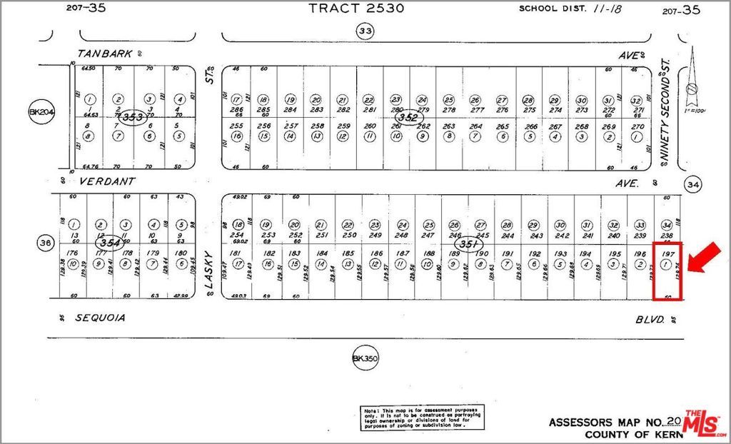 This is Lot Number 197, Tract 2530, Sequoia Estates, in California City with 12-INCH City Main Water. Total of 11 Single Family LOTS Available. Can Buy or Lease with Option to Purchase From 1 to All 11 Lots. Build Your Dream Home. Ideal for Builders, Developers, and First-Time Homeowners. Near Schools, Houses of Worship, Stores, Freeway. Zone: R-1, Size: 7,784 Square Feet, 60 x 130, Flat, APN: 207-351-01, Coordinates: 35.097009, -117.963324.