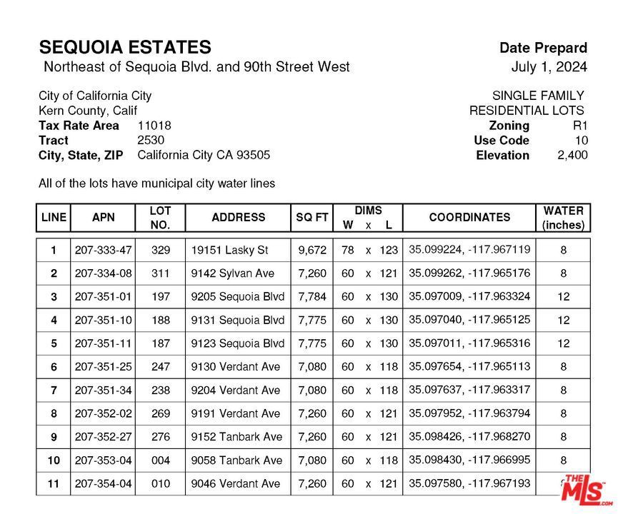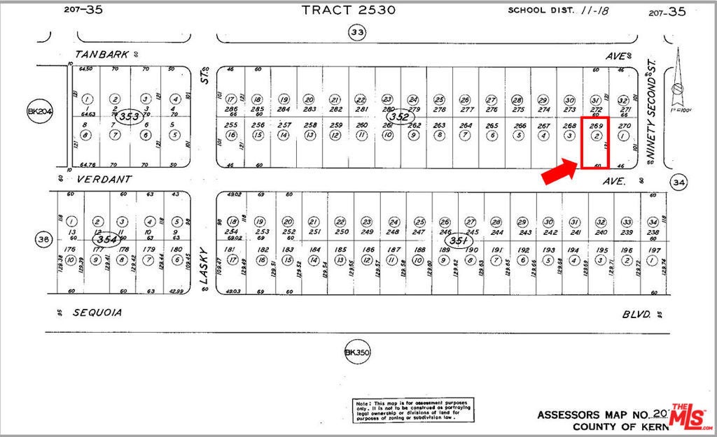 This is Lot Number 269, Tract 2530, Sequoia Estates, in California City with 8-INCH City Main Water. Total of 11 Single Family LOTS Available. Can Buy or Lease with Option to Purchase From 1 to All 11 Lots. Build Your Dream Home. Ideal for Builders, Developers, and First-Time Homeowners. Near Schools, Houses of Worship, Stores, Freeway. Zone: R-1, Size: 7,260 Square Feet, 60 x 121, Flat, APN: 207-352-02, Coordinates: 35.097952, -117.963794.