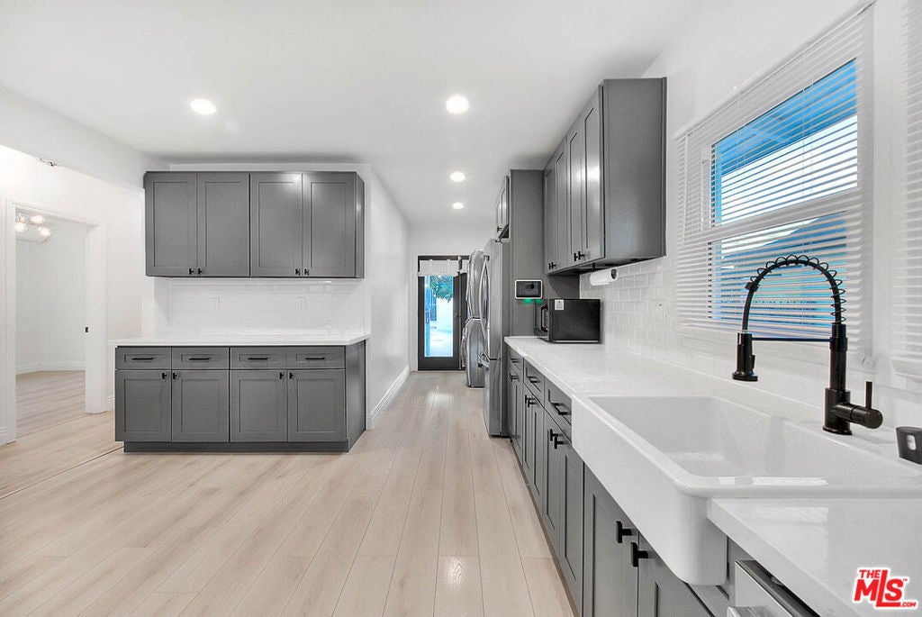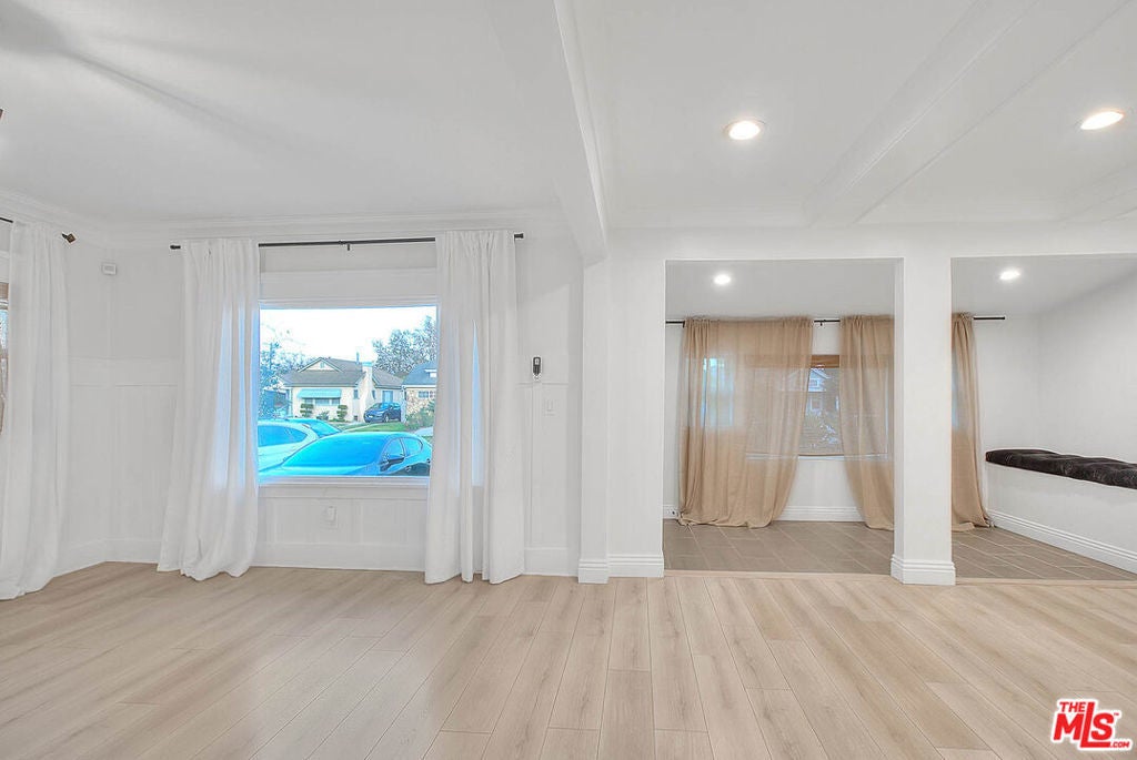 Welcome to your piece of paradise in this Angeles Mesa charmer! Step into the expansive foyer and be met by a lovely book nook for all your bibliophiles' needs. From here bask in the natural light from the large windows and decorative fireplace. The dining room seamlessly connects to the bright, open kitchen with its ample cabinet and counter space providing a great opportunity for the chef in you as you entertain your guests in your culinary haven. Three bedrooms with large closets include a huge primary bedroom with its own bathroom and private entry from the backyard. The vast backyard waiting to be turned into your private oasis is set with a large fruiting avocado tree to provide shade is primed for your imagination. The home is outfitted with split units along with solar panels on the roof. This highly sought rapidly appreciating neighborhood is minutes from Inglewood along with the nearby Crenshaw rail line you're able to get to all destinations in a matter of minutes. With its tasteful blend of updates while preserving some original charm, this home will exceed all your expectations in this low inventory market.