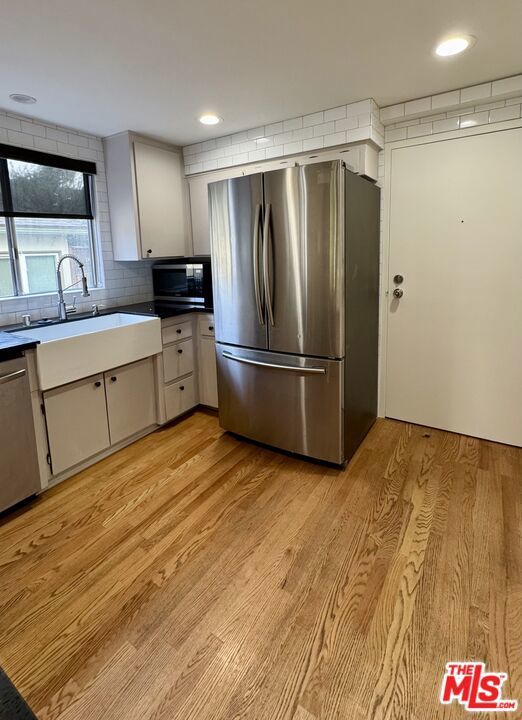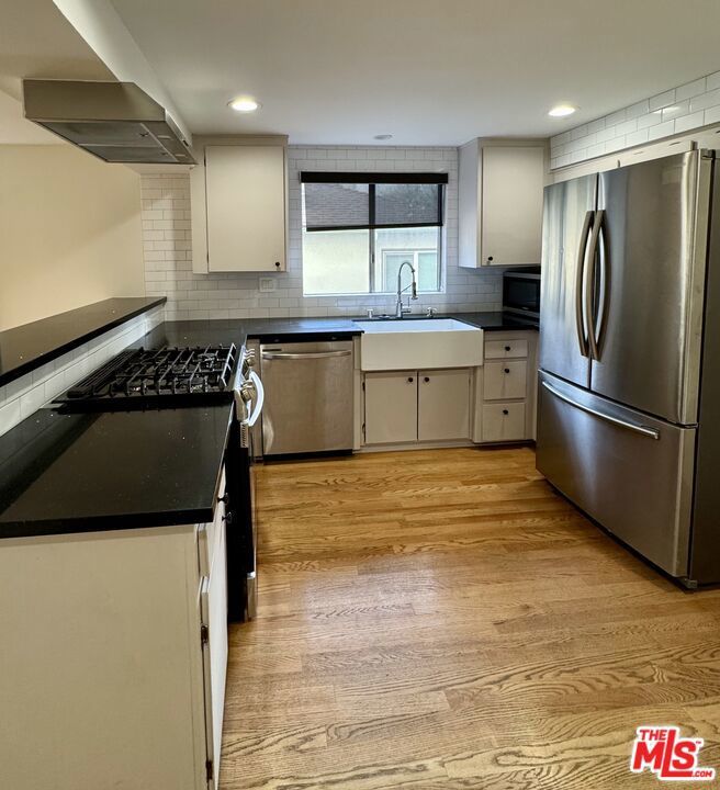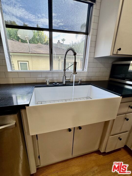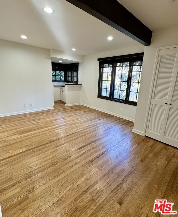 More than a 2 bedroom, has a dedicated office/den space with Juice Bar...this is the only Unit on the first floor (no common sidewalls) and has a private courtyard area for its exclusive use, Front door entry thru charming stone walkway, and convenient second entry thru back adjacent to parking. Hardwood floors, recessed lighting, casement windows, french door, custom window coverings, all tastefully remodeled while keeping with buildings European charm. Kitchen has Samsung appliances, stone countertops, breakfast bar, panty, and opens to dining & living area. Unique step up dining area adds design separation from living, washer/dryer in unit, spacious primary bedroom with newer remodeled bath. Second bedroom has 2 closets and adjacent to 2nd bathroom. also remodeled. 2 car tandem covered parking...Unit is single story approximate 1575 square feet part of a 5 unit building in a quaint residential neighborhood close to Tujunga Village & Ventura Blvd.