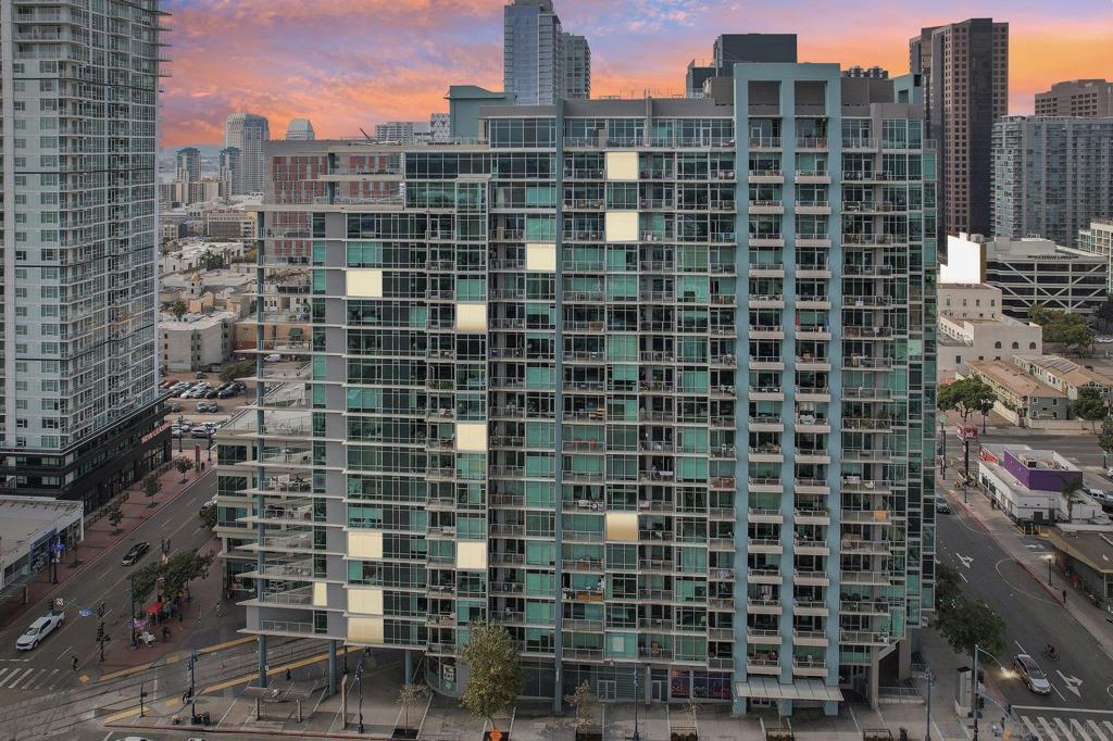 BOM at No Fault to Seller. VA APPROVED!!! Experience the vibrant heart of San Diego in this beautiful 1 bed & 1 bath East-Facing condo located on the 16th floor at Smart Corner. With its industrial-chic design featuring cement accents, exposed ductwork, sleek upgraded bamboo flooring, and upgraded built closet this sparkling residence radiates an upscale loft vibe. Enjoy sweeping city views and views of Coronado Bridge from your private balcony and take advantage of the open kitchen with ample cabinetry and granite countertops. This high-rise building features a rooftop deck with views of the Bay and Downtown San Diego, you'll find a relaxing Jacuzzi and barbecue area and bike storage areas, along with a newly renovated gym and 24 hour security. Smart Corner has recently upgraded four elevators in the building. You'll also have one assigned parking space in the secure underground lot. Enjoy easy access to freeways and within walking distance to a variety of restaurants, bars, shops, and a supermarket. The airport is just 10 minutes away, and you’ll find Balboa Park nearby for endless fun. Plus, a trolley station is just steps away from your door, making this area a walker's paradise with easy access to Petco Park, the Convention Center and the Gaslamp Quarter. Visit this unit today and enjoy the best of downtown living!