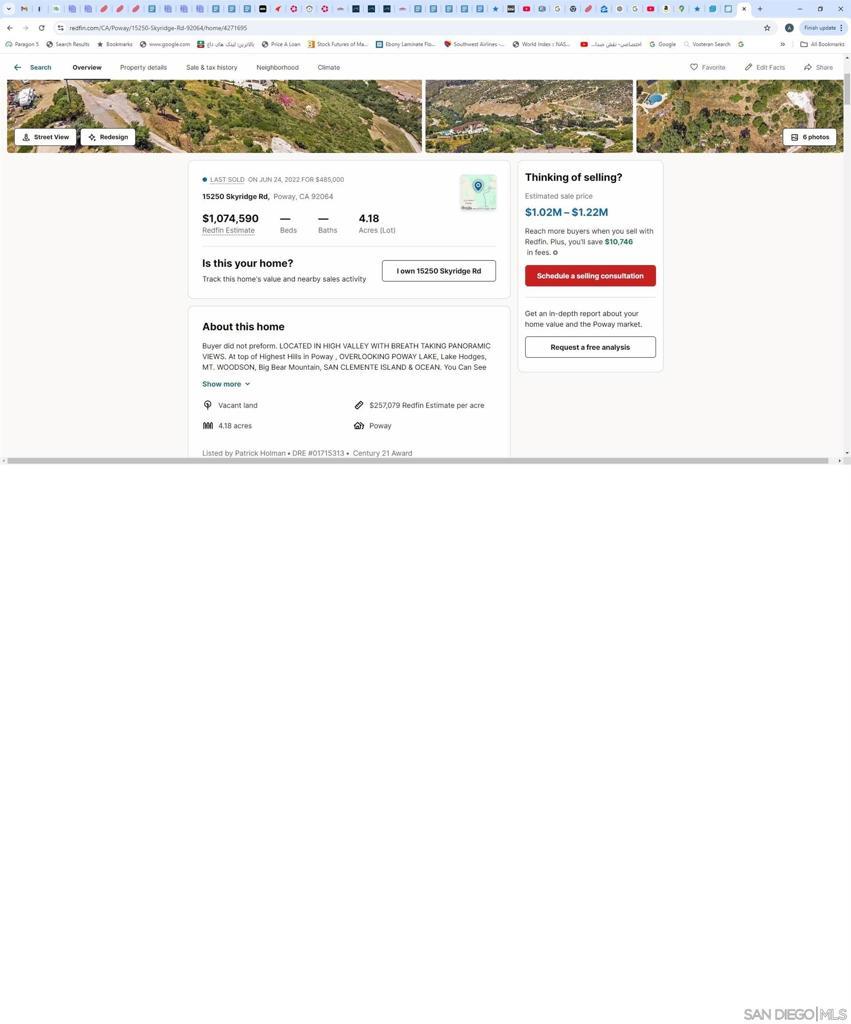 Price Change History for 15250 Skyridge Rd, Poway, (MLS® #250017804SD)