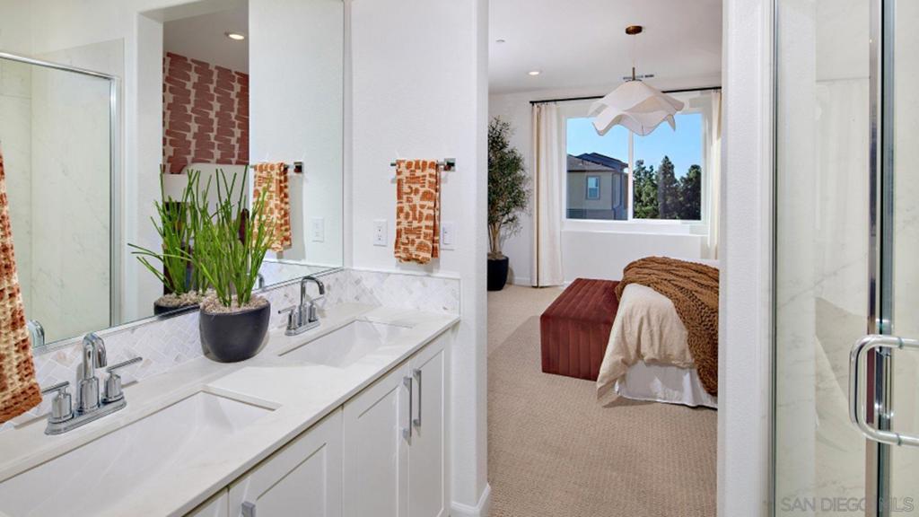 This home with an upgraded backsplash and upgraded flooring, will be ready for moving in March or April of this year. On the second-floor of this new three-story townhome, an open layout combines the kitchen and Great Room, with an outdoor deck offering convenient outdoor access. Two bedrooms can be found upstairs, including the luxe owner’s suite with an en-suite bathroom and walk-in closet. A two-bay tandem garage completes the home. The Trails is a brand-new masterplan with single-family and attached homes in Carmel Mountain Ranch, San Diego, CA. Five communities of attached homes now selling! Lavender is a collection of brand-new townhomes for sale within The Trails masterplan in San Diego, CA. Residents enjoy a great central location and easy access to I-15 and 56 freeways for simplified commutes and getting around. The community is conveniently close to shopping at Carmel Mountain Ranch and UTC, 4S Ranch, Del Sur and more. Students will attend schools within the Poway School District.