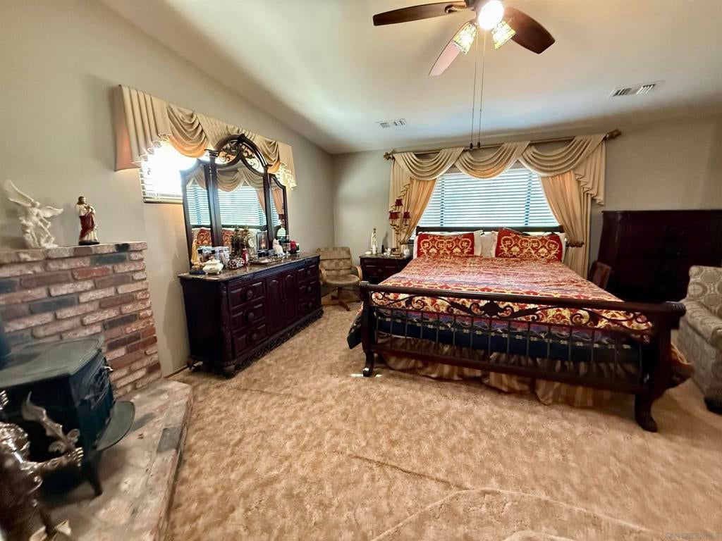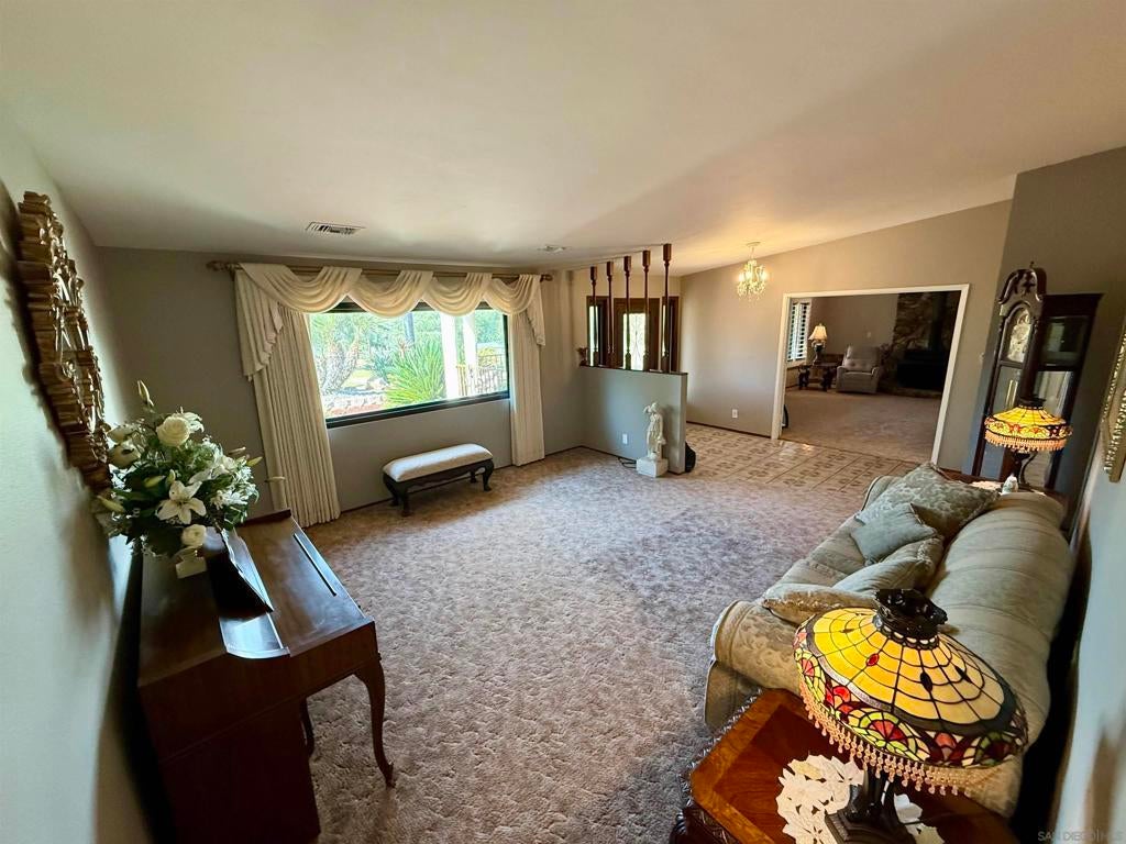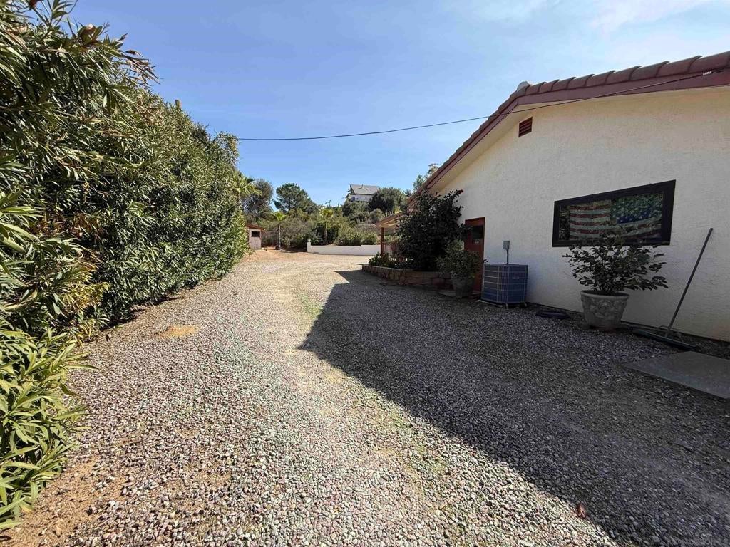 WOW! Custom GATED VIEW home in West End Ramona! 7 minutes to Poway! NO HOA! HUGE COVERED FRONT PORCH overlooking your property. Great VIEWS of Mt Woodson! Total privacy! and fully fenced! Great open floor plan! Large kitchen with NEW counter tops, flooring and lighting! LARGE living room with pot belly stove. HUGE family room perfect for holidays! Large formal dining room opening to kitchen plus a LARGE ADDITIONAL dining area! Large master bedroom with pot belly stove. Perfect home for entertaining! Great gazebo in front yard! Huge yard perfect for horses, pool, RVs, ADUs or whatever. Large covered patio in back yard as well. VERY LARGE OUTBUILDING for HORSES, storage, barn, ADU conversion or whatever! LARGE Carport. Large garage with lots of storage! Easy access to through a large side gate to the HUGE back and side yard. LOTS of trees! LOW maintenance yard! Must see!No money down refers to USDA loan.
