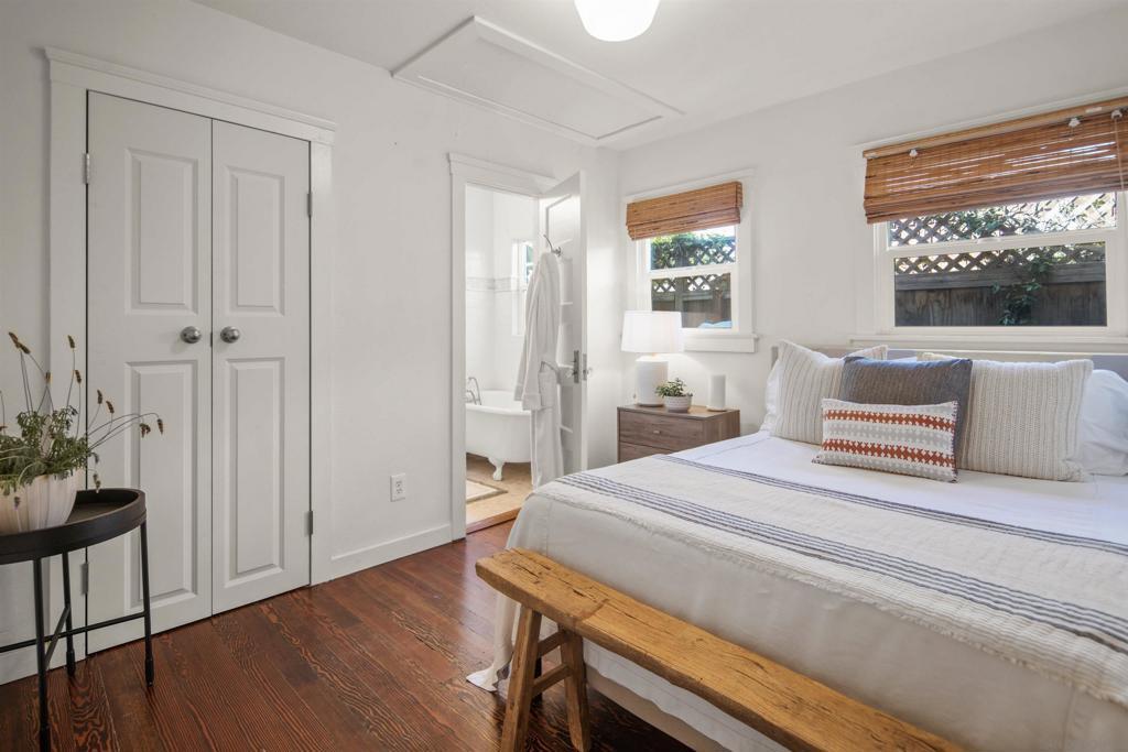 Charming remodeled Beach Cottage – Just 2 Blocks from the Ocean! Step into summer in this beautifully renovated 1929 beach cottage, perfectly located just two blocks from the sand and surf. This charming retreat blends historic character with modern comfort, featuring hardwood flooring throughout, central AC, and 3 spacious bedrooms, each with its own en suite bath, ensuring privacy and convenience for all guests. Relax in the cozy living room, complete with a pull-out sofa, or gather around the dining table with seating for six to enjoy meals together. The warm and inviting kitchen is fully stocked, making it easy to whip up beachside snacks or gourmet dinners. Start your mornings with coffee on the front patio, soak up the sun on the nearby beach, or take a sunset cruise on the provided bikes. In the evenings, fire up the BBQ and enjoy meals in the backyard patio area, creating the perfect setting for outdoor dining and relaxation. We’ve got everything you need for a stress-free vacation— bikes, beach chairs, an outdoor shower, and even space to park a golf cart! Sleeping Arrangements: Bedroom 1 – King bed Bedroom 2 – Queen bed Bedroom 3 – Queen bed (Located in a separate structure just outside the kitchen door, sharing the backyard patio area with the main home.) Whether you're looking for a relaxing getaway or an adventure-filled escape, this beachside gem is the perfect place to make summer memories!