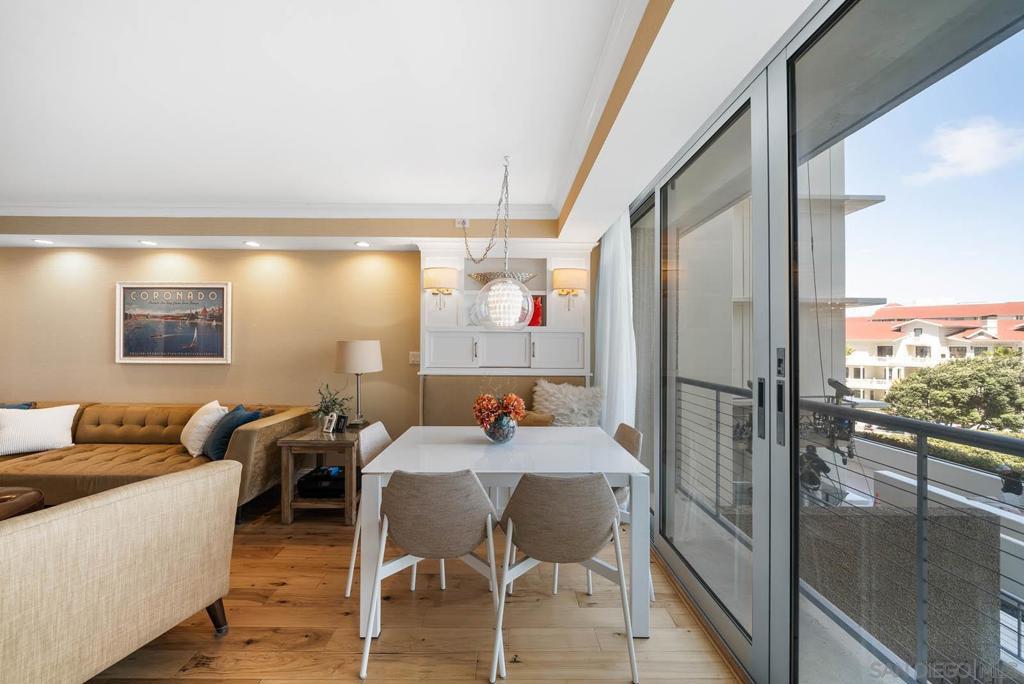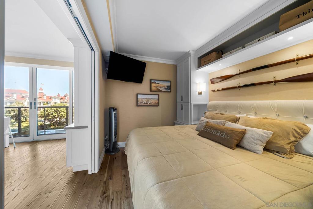 Located just minutes from the sand, this turnkey, fully furnished studio in coveted La Sierra Tower features a fresh, beach aesthetic. is beautifully Renovated by Clark Construction, enjoy breathtaking views of the Hotel Del Coronado with thoughtful upgrades that include new windows, wood floors, crown molding, and custom built-ins throughout, offering both beauty and function. The kitchen is a standout with high-end Bosch and Viking appliances, custom cabinetry, and a breakfast bar. A spacious walk-in closet, dining nook, and elegant bath with walk-in shower round out this coastal retreat. Move right in and start experiencing The Shores lifestyle!