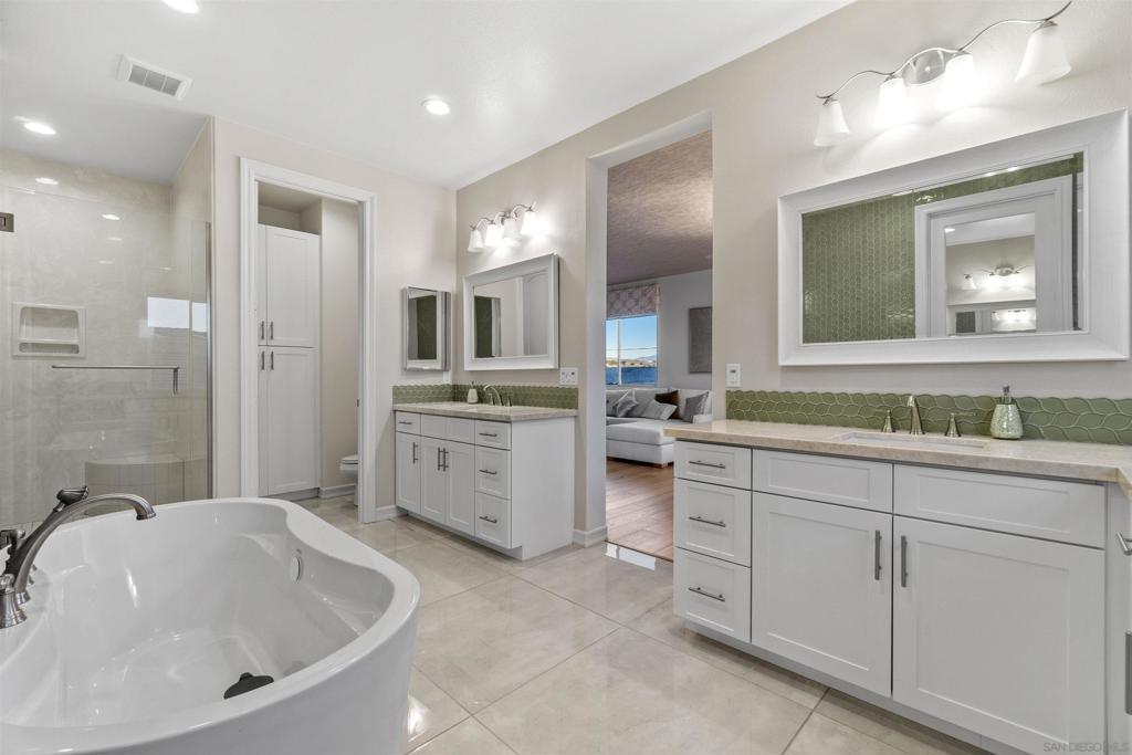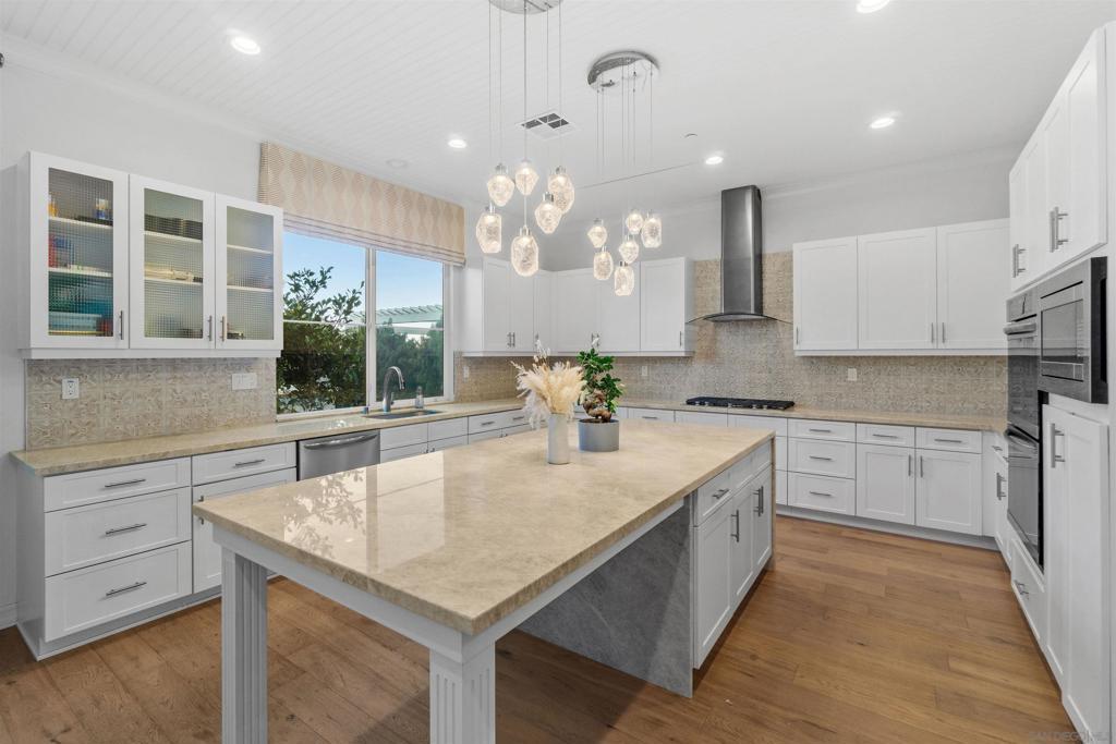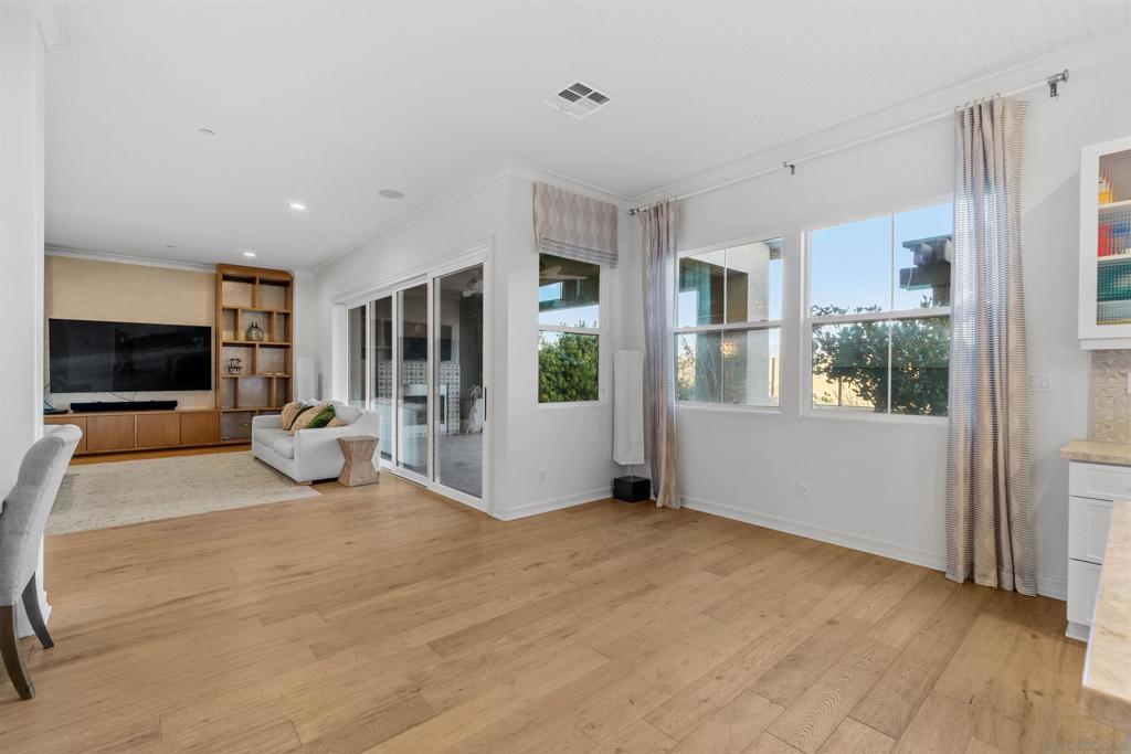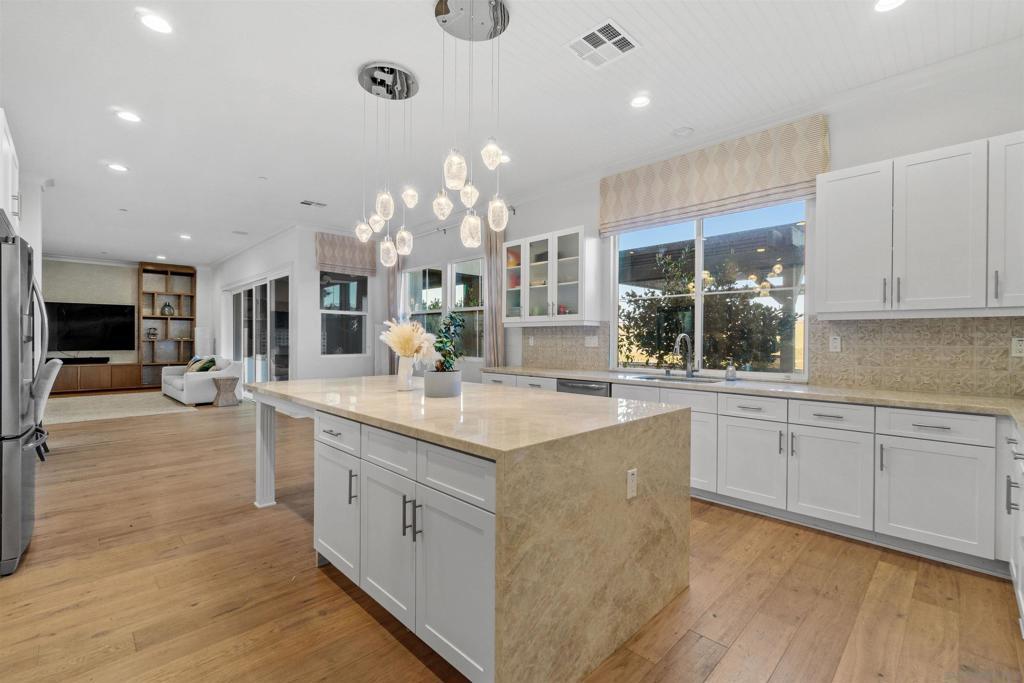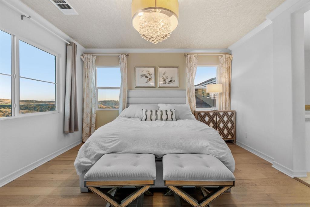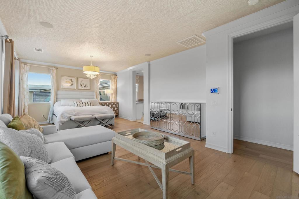 Discover luxurious living at Bella Sitia an exclusive coveted Montecito Community of Otay Ranch. This exquisite previous Model Home is move-in ready with PAID SOLAR & FULL Bed/ Bath Downstairs. This 5 bed/4.5 bath home showcases stunning architectural craftsmanship designed for those who love to entertain. Greet each day with breathtaking unobstructed canyon views experiencing serene sunrises & enchanting sunsets from your spacious California room seamlessly merging indoor elegance with outdoor charm. Inside exceptional attention to detail includes rich hardwood flooring, custom crown molding, an elegant curved staircase & beautifully crafted wood ceilings. The open-concept design features a gourmet kitchen with crisp white shaker cabinets, gleaming quartz countertops, a chic backsplash, modern pendant lights & a large center island ideal for culinary enthusiasts. Premium appliances, including double ovens, built-in microwave & cooktop, complement the abundant cabinetry & spacious walk-in pantry. Retreat upstairs to your luxurious primary suite highlighted by spectacular canyon vistas, integrated audio speakers, a cozy retreat area & a spa-inspired bathroom featuring dual sinks, marble floors, separate tub, custom-tiled shower & an expansive walk-in closet. Additional comforts large 2nd bedrooms some with private baths, a tech center, spacious laundry room with cabinetry & sink, 3 car garage. The landscaped backyard offers the perfect setting for gatherings, complete with a custom concrete patio, covered outdoor entertaining space, built-in BBQ & bar. As part of the Montecito Community residents enjoy exclusive amenities such as a resort-style clubhouse, sparkling pool and spa, recreation center, and proximity to top-rated schools & delightful restaurants. Bella Sitia isn’t just a place to live it’s your forever dream home. Call us today & experience this masterpiece firsthand!