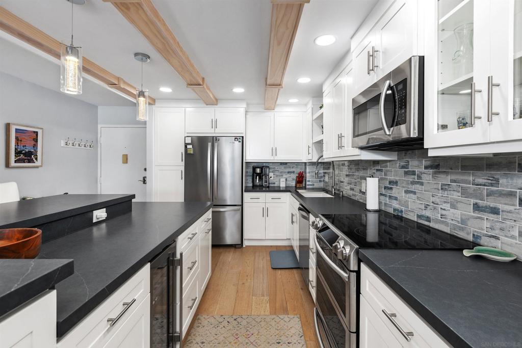 Step into this fully remodeled 1bd, 1ba Pacific Beach condo, just blocks from the shore. Enjoy stunning sunrises through floor-to-ceiling windows in your east-facing living room. The reconfigured bathroom features a spacious spa-like shower and a separate vanity area. The generous bedroom boasts balcony access through a large slider and a custom-built closet for optimal storage. This home offers modern comforts while embracing coastal charm. Experience the best of beachside living today!