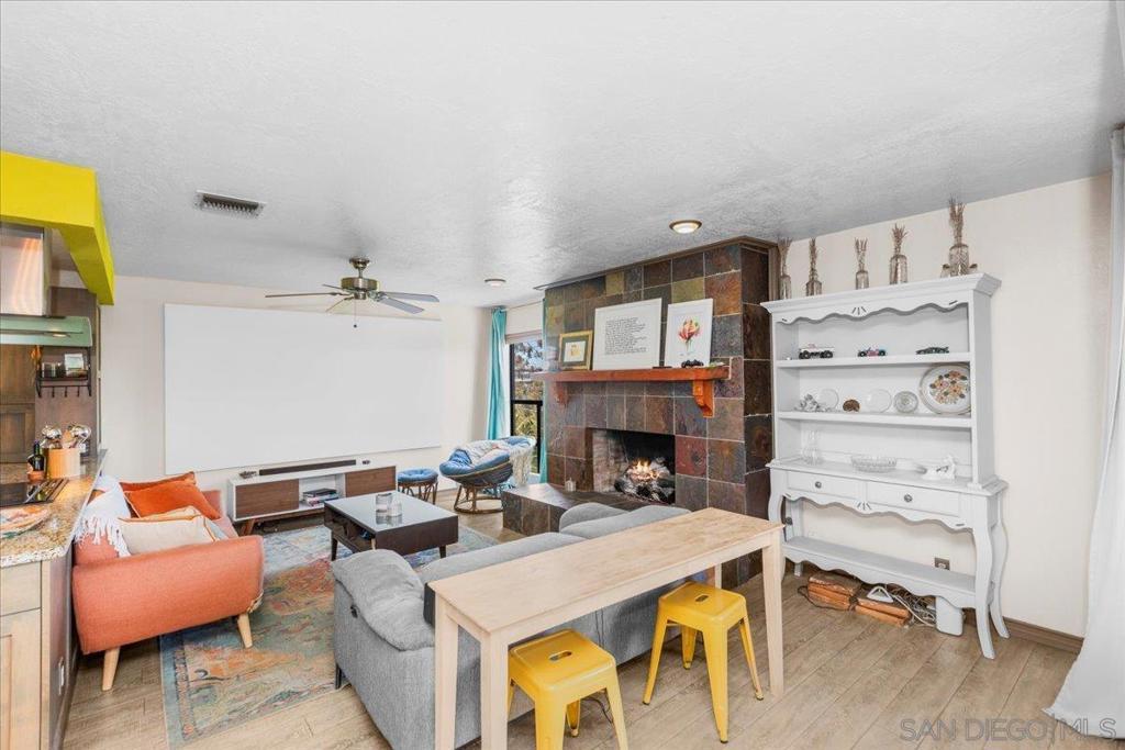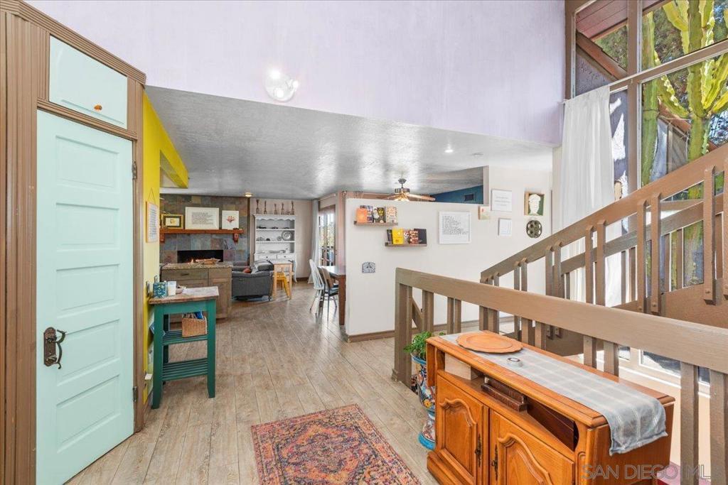 Stunning Artistic Tri-Level Home with Panoramic Views in Spring Valley Welcome to this one-of-a-kind Spring Valley residence offering spectacular views, a thoughtfully designed open floor plan, and artistic touches throughout the home and gardens. Nestled in a serene hillside neighborhood, this tri-level home blends comfort, creativity, and functionality — perfect for families, entertainers, or multigenerational living. The dramatic mosaic-tiled foyer with soaring two-story windows sets the tone for the unique artistic flair carried throughout the home. The living room boasts high ceilings, a fireplace, and access to a view-filled balcony. An adjacent flex room with balcony access can serve as an office or extra storage. 4 Bedrooms | 3 Bathrooms: Upstairs features three spacious bedrooms, including the master suite. A private downstairs bedroom with full bath opens to a secluded terrace—ideal for guests or extended family. The master suite retreat is complete with a cozy fireplace, beautifully tiled ensuite bathroom with dual sinks, a large walk-in closet, and direct garden access. Nearly every room has access to the lush gardens and patios. The wrap-around xeriscaped yard features winding pathways, peaceful nooks, and private seating areas—perfect for relaxing or entertaining. Enjoy peace of mind with a new roof, furnace, AC, and fully paid-off solar system (all installed in 2021).