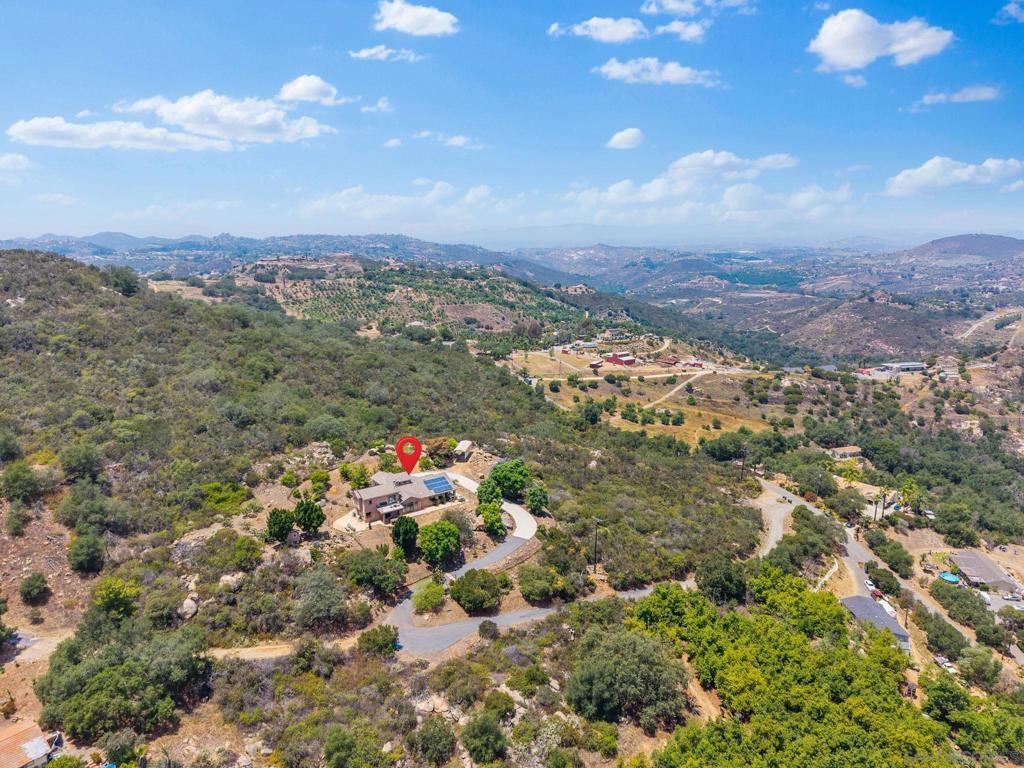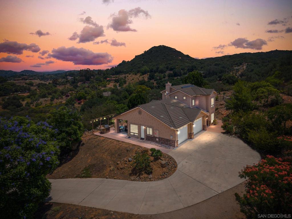 Welcome to your ultra-PRIVATE oasis on a spacious 4.32-acre lot in the heart of Valley Center. Refined country living with this exceptional estate, where timeless craftsmanship meets modern convenience. Nestled on a sprawling, private lot, this one-of-a-kind property offers serene surroundings, rolling hill views, spacious design, and elegant upgrades throughout. Inside, you'll find engineered hardwood floors, custom-crafted wooden door frames, and plantation shutters that exude charm and sophistication. The primary suite is conveniently located on the main level with a walk-in closet, offering comfort and privacy, along with a dedicated home office ideal for remote work or creative pursuits. Upstairs, you’ll find two spacious guest bedrooms, an open loft area perfect for a media room or second living space, and two scenic balconies, one that overlooks the surrounding countryside and one private area. The expansive layout seamlessly connects indoor comfort to outdoor luxury, with two entertainer’s patios, a private jacuzzi spa, and lush, manicured landscaping featuring blooming rose gardens and mature trees. Designed for both relaxation and functionality, the property boasts RV parking, solar system, newer tankless water heater, newer HVAC, soft water system, built-in BBQ, a 4-car garage, and three versatile sheds for storage, hobbies, or a future studio space. This is more than a home - it’s a lifestyle. Conveniently located near new retail and shops by Park Circle! Whether you're hosting guests under the stars, tending your garden, or enjoying quiet mornings in the countryside, this Valley Center gem offers a rare opportunity to live with both elegance and ease.